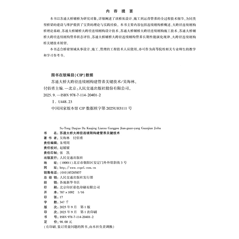 书名:苏通大桥大跨径连续刚构建管养关键技术