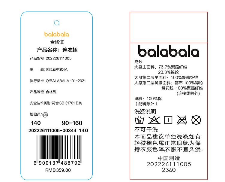 【商场同款】巴拉巴拉女童裙子儿童连衣裙2026新款夏国风裙新中式