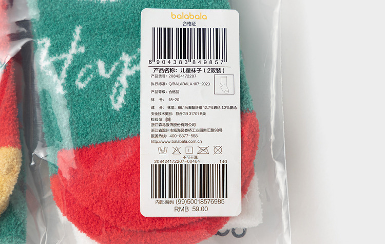 巴拉巴拉儿童保暖袜子冬季舒适加绒半边绒男童女童短袜护踝两双装
