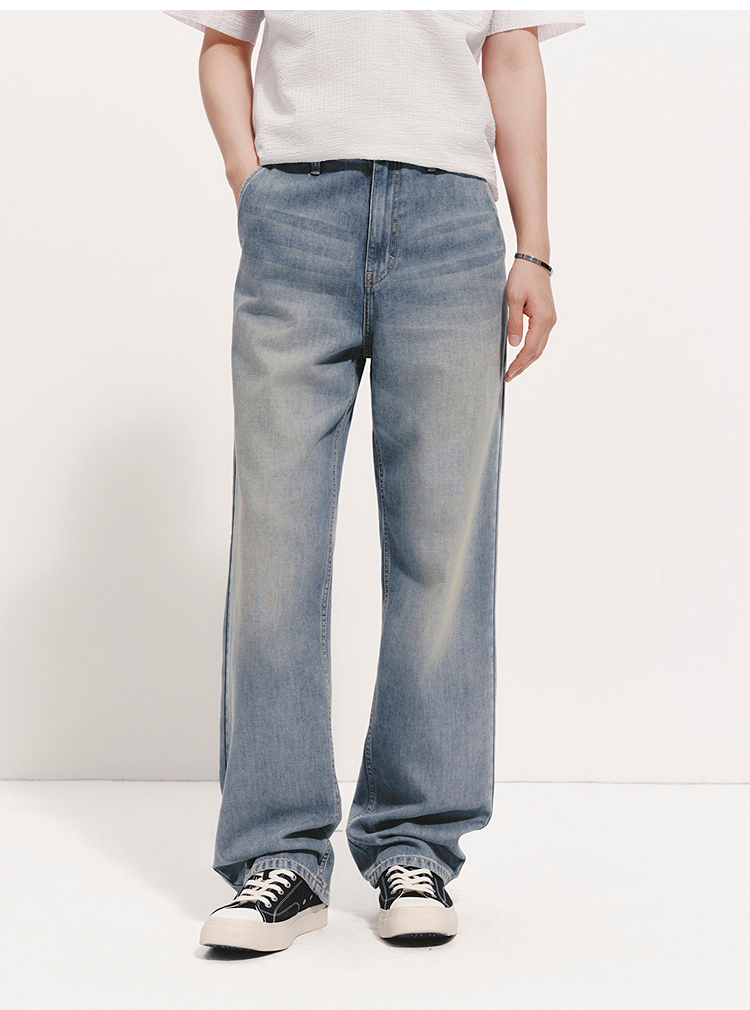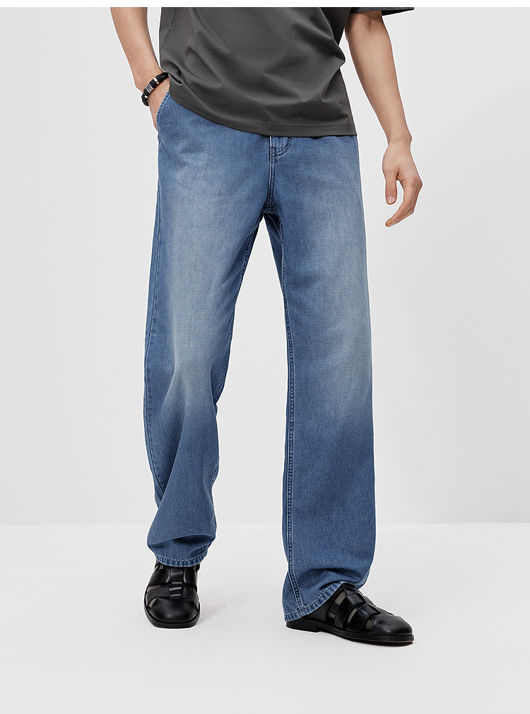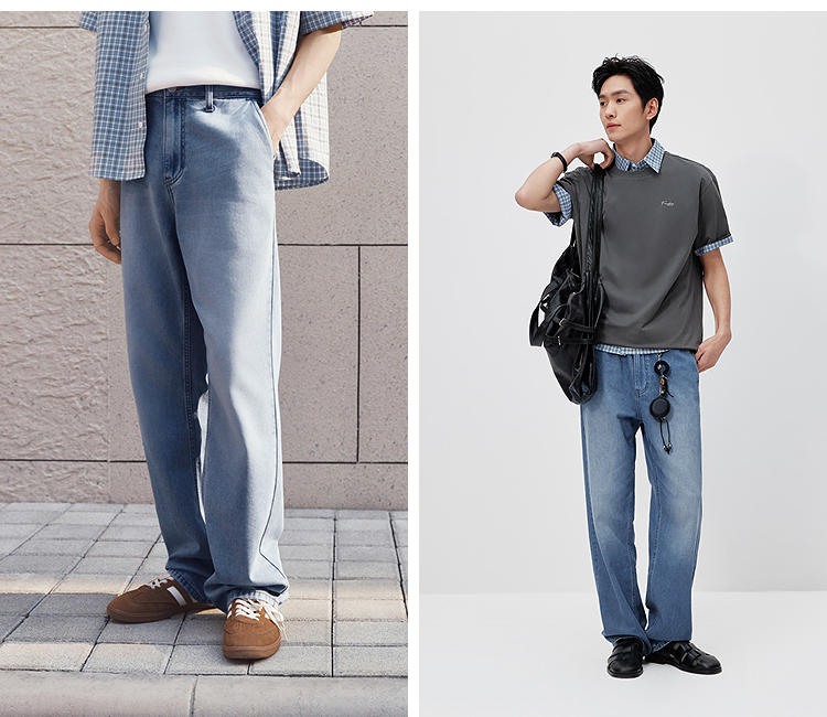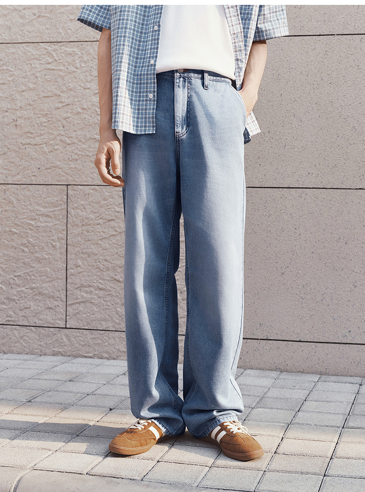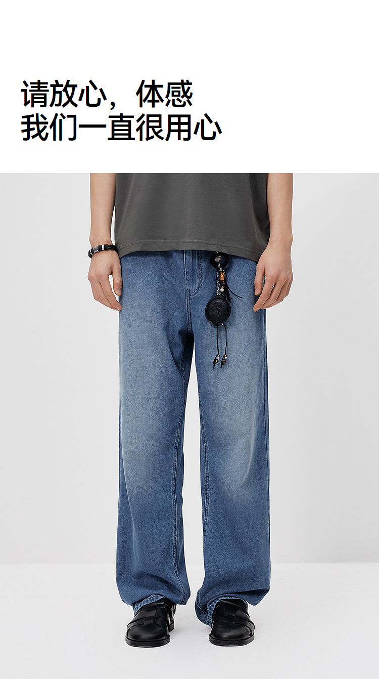 森柔|森马牛仔裤男夏季经典水洗直筒裤2026新款凉感显瘦显直长裤