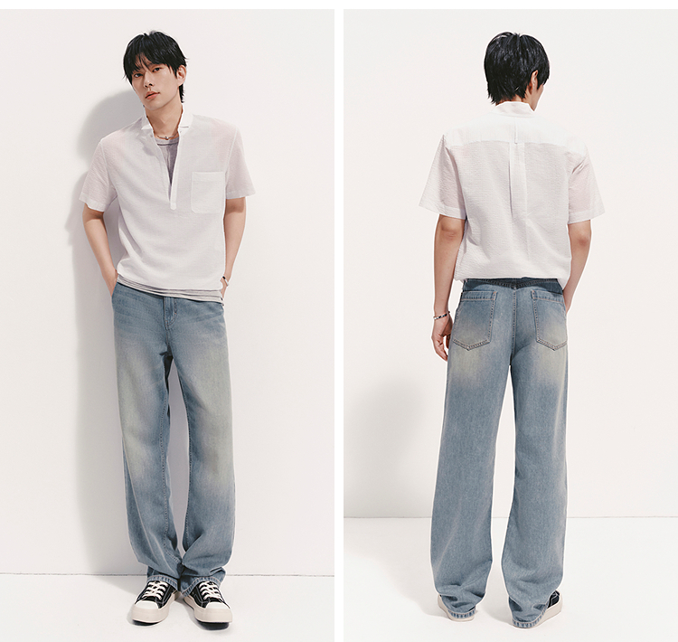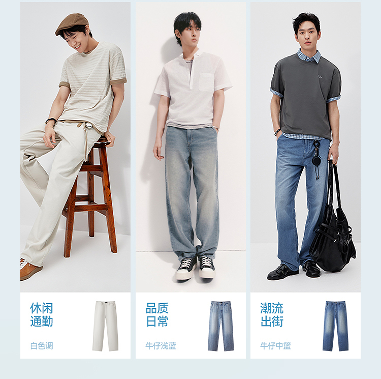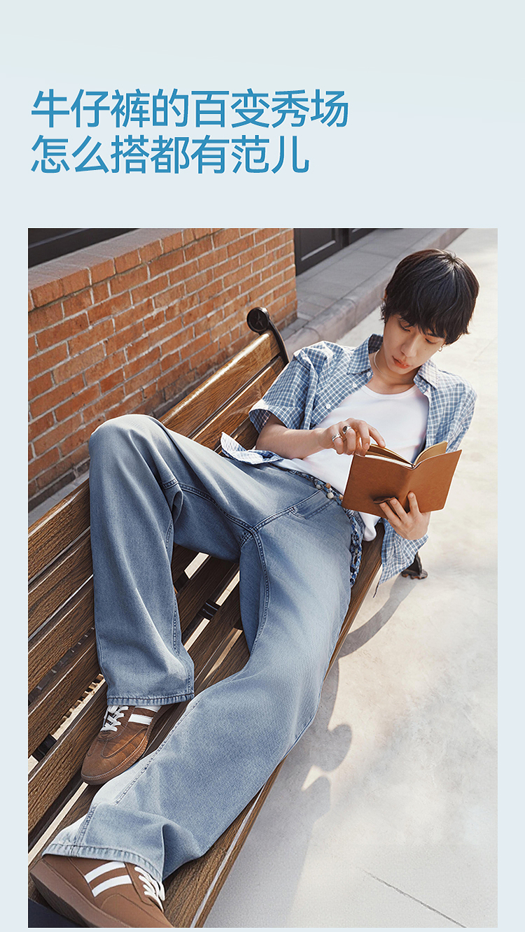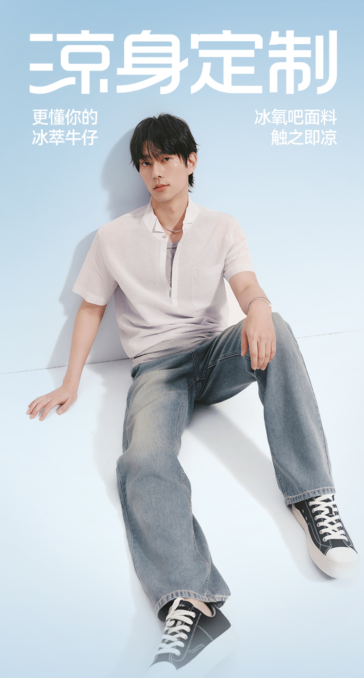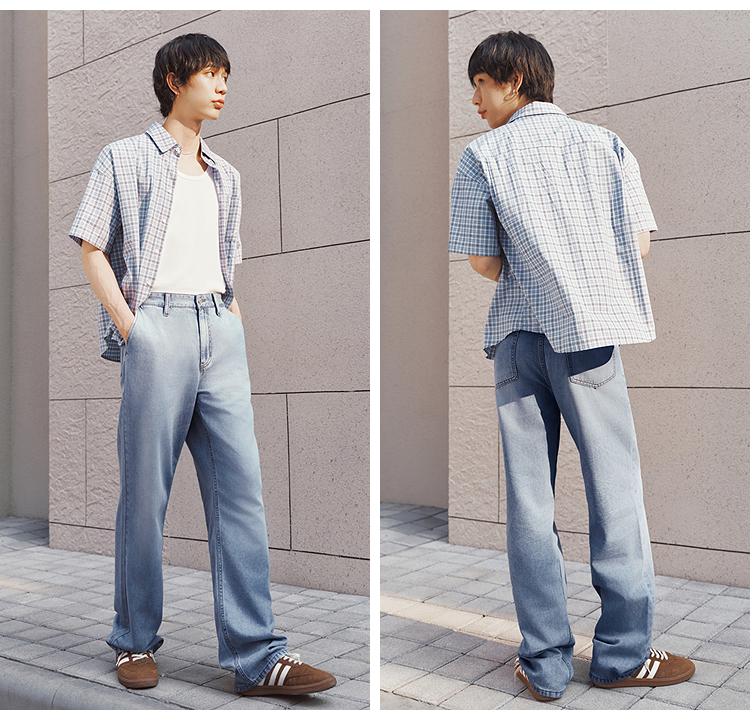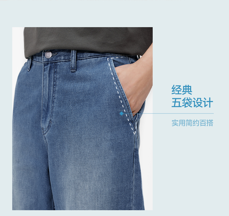 森柔|森马牛仔裤男夏季经典水洗直筒裤2026新款凉感显瘦显直长裤