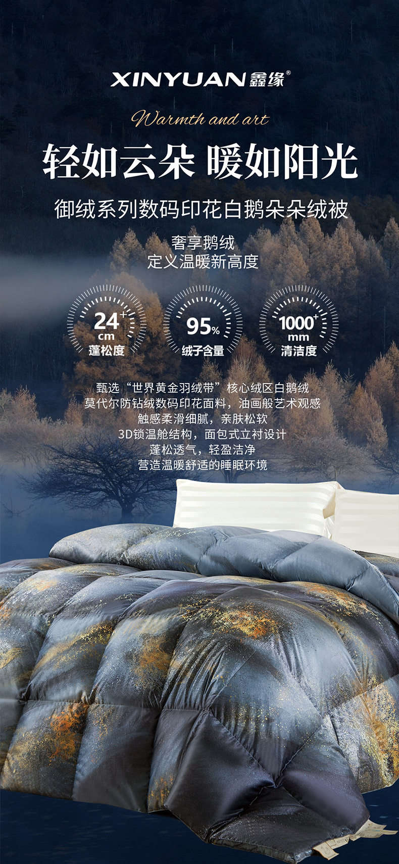 鑫缘 御绒系列数码印花白鹅朵朵绒被 EYBB