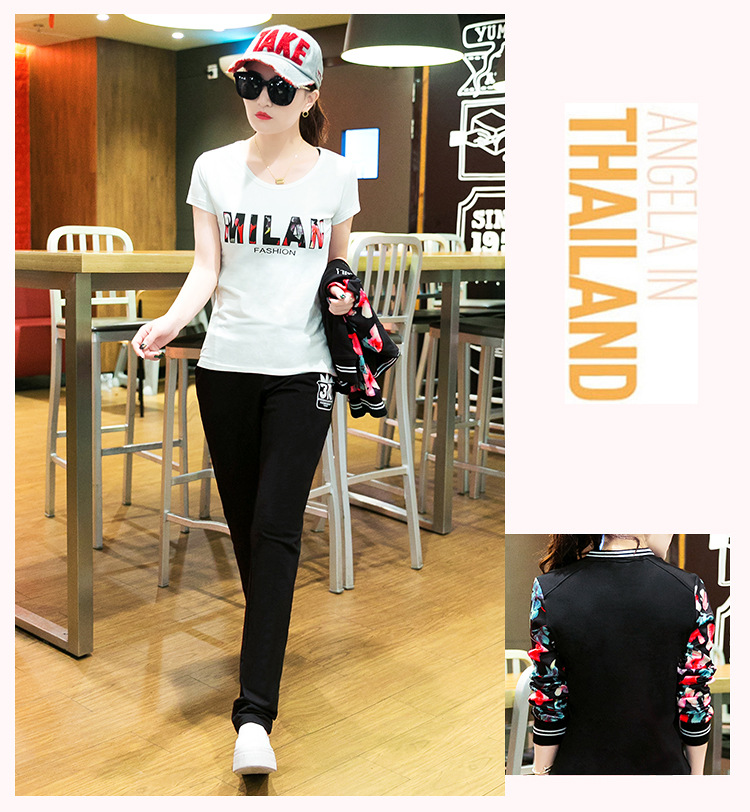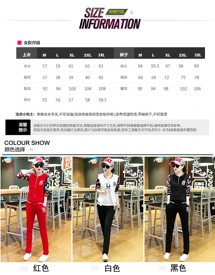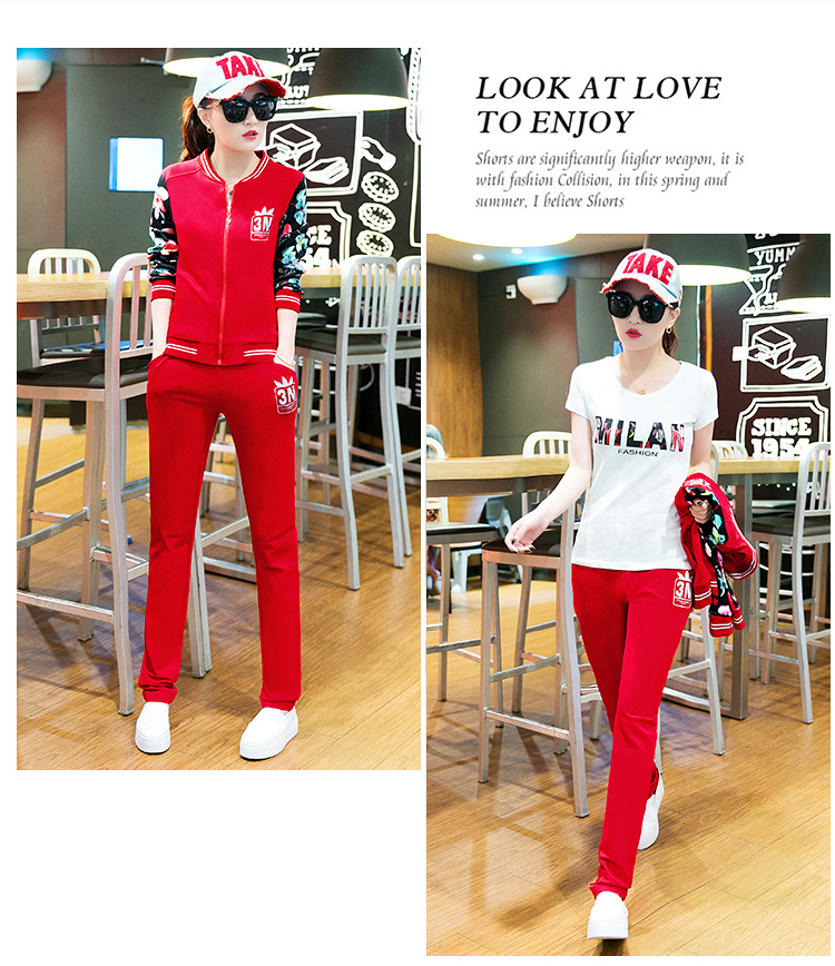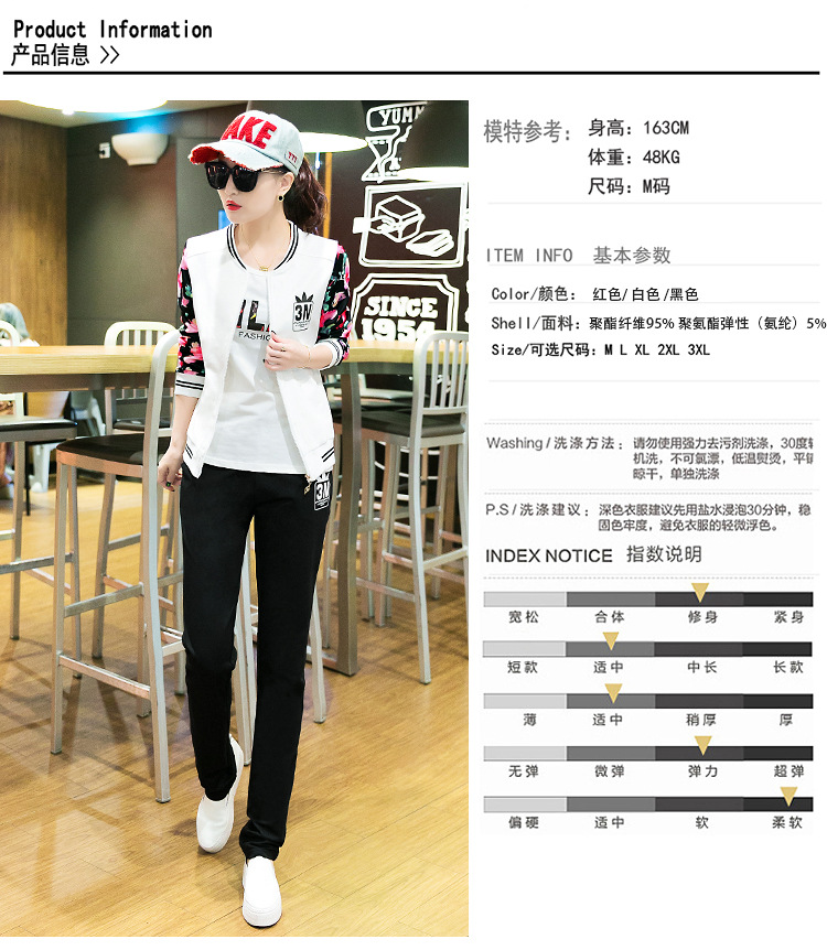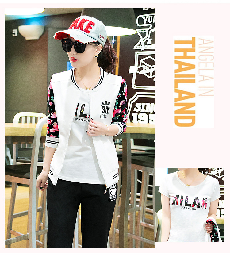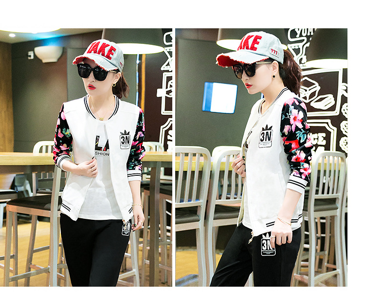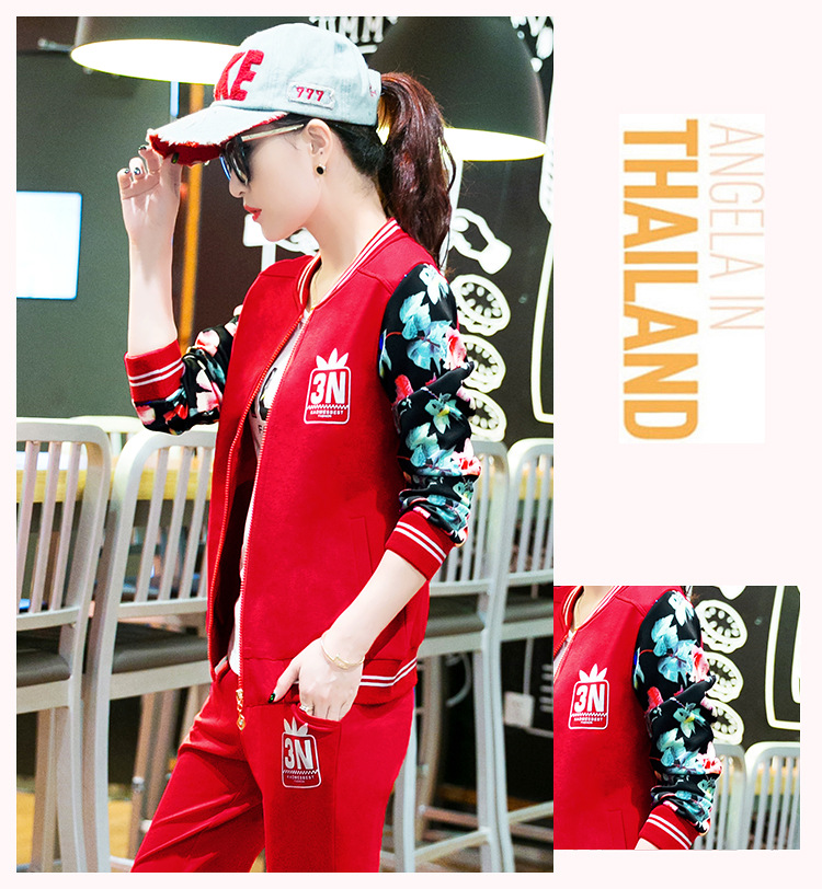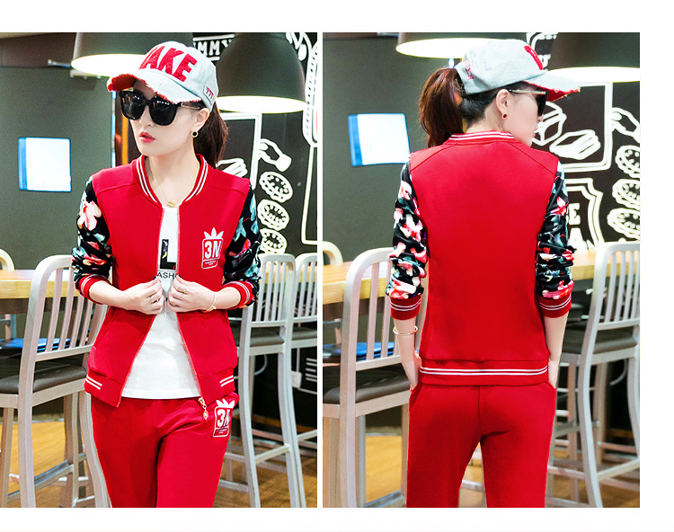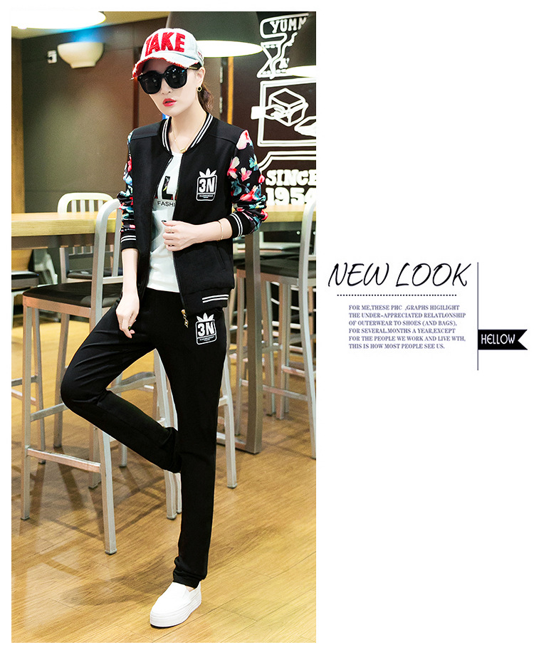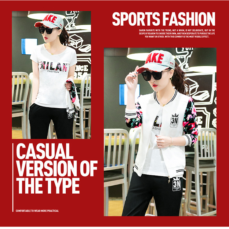 【女士休闲套装】秋季长袖开衫三件套修身韩版显瘦女式休闲卫衣运动服套装
