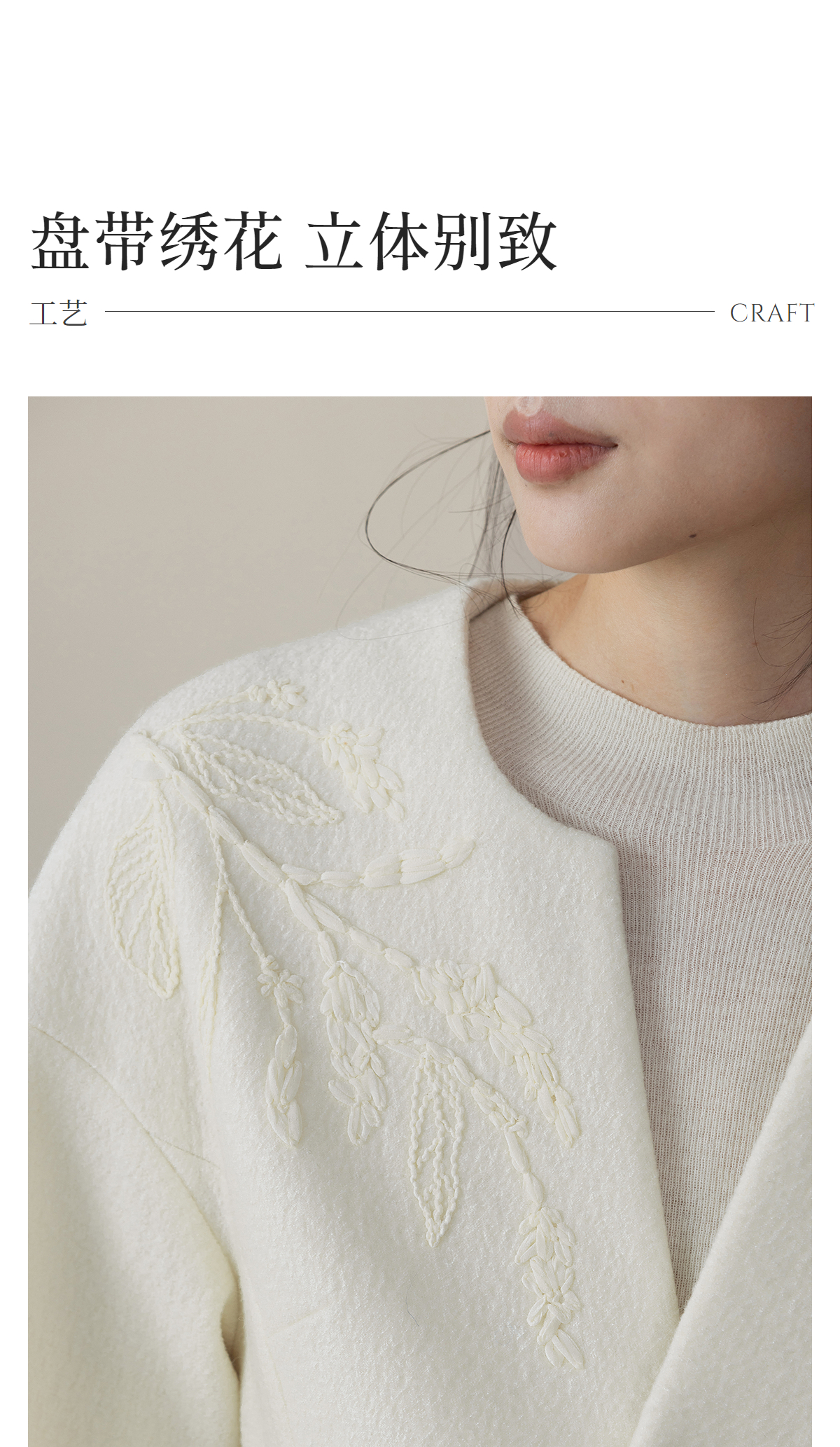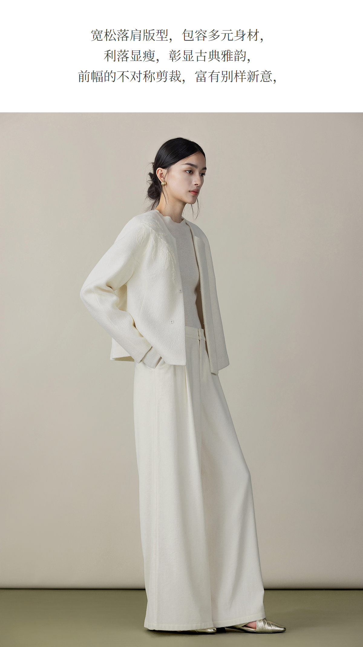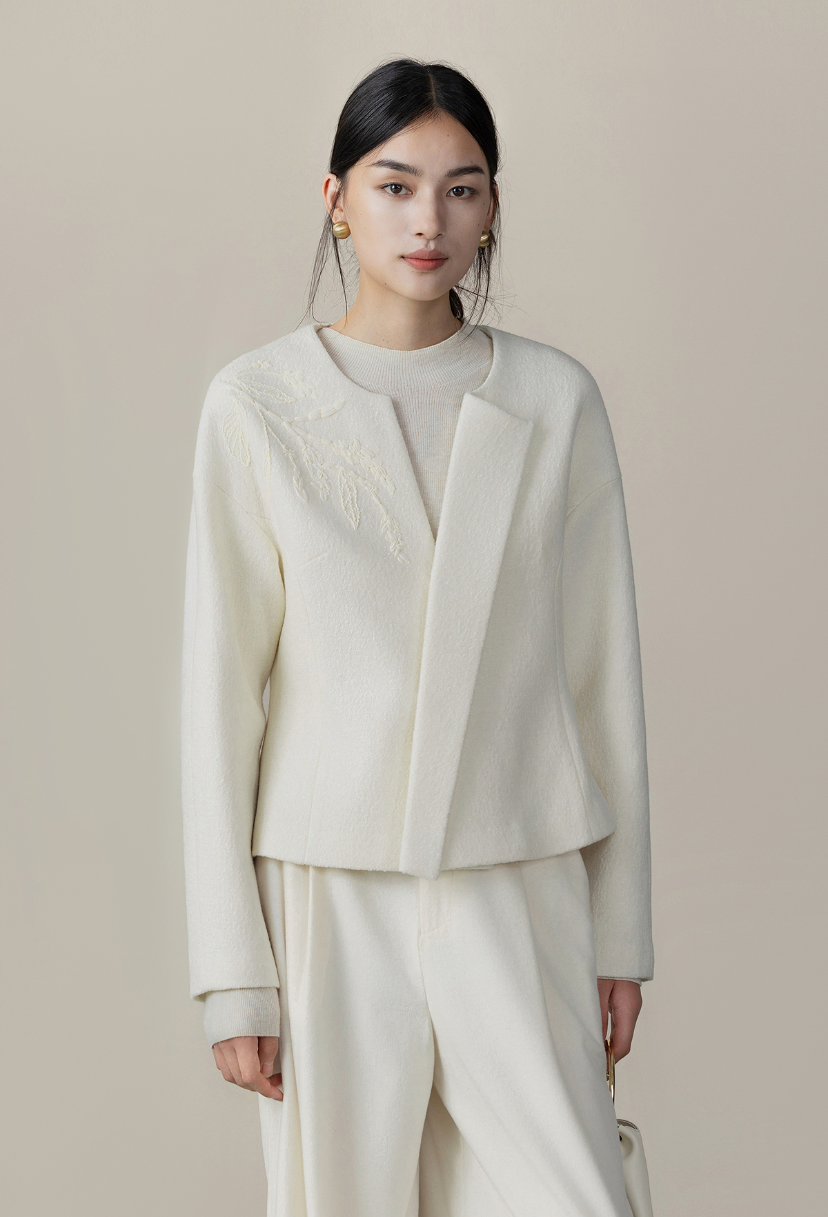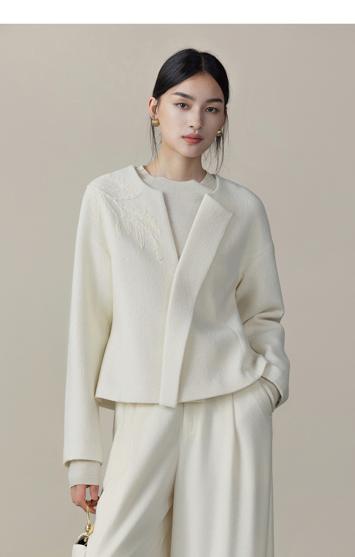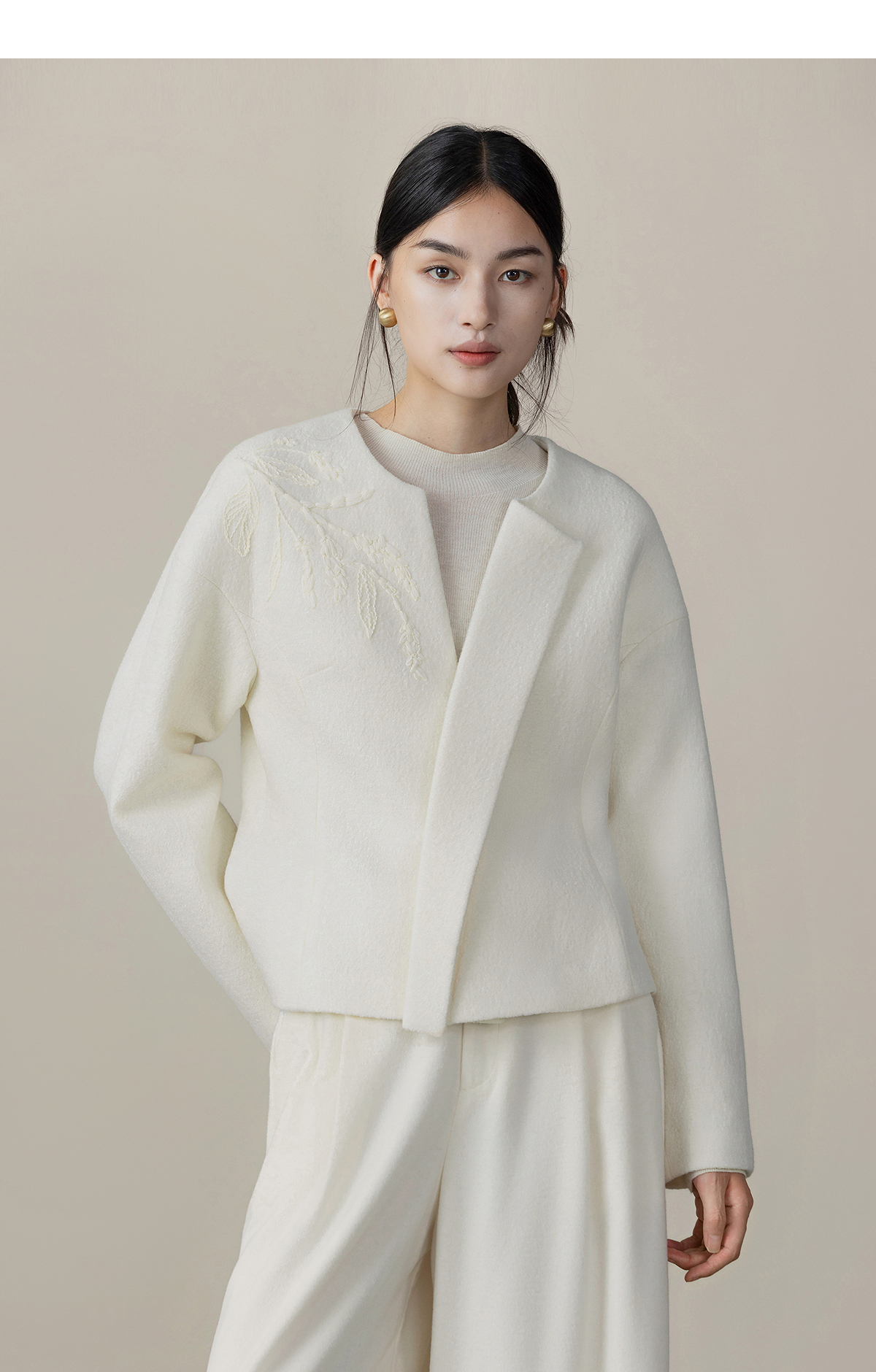 【林栖设计小店】山茶知雾系列绵羊毛外套盘带绣钩花优雅百搭宽松2025秋冬新款短款上衣女1953059