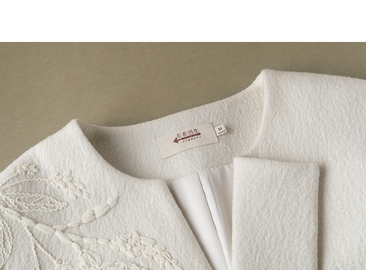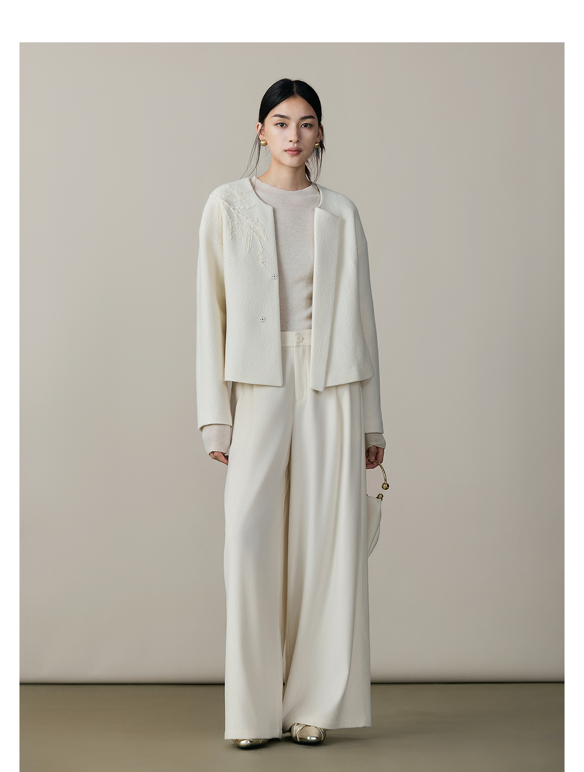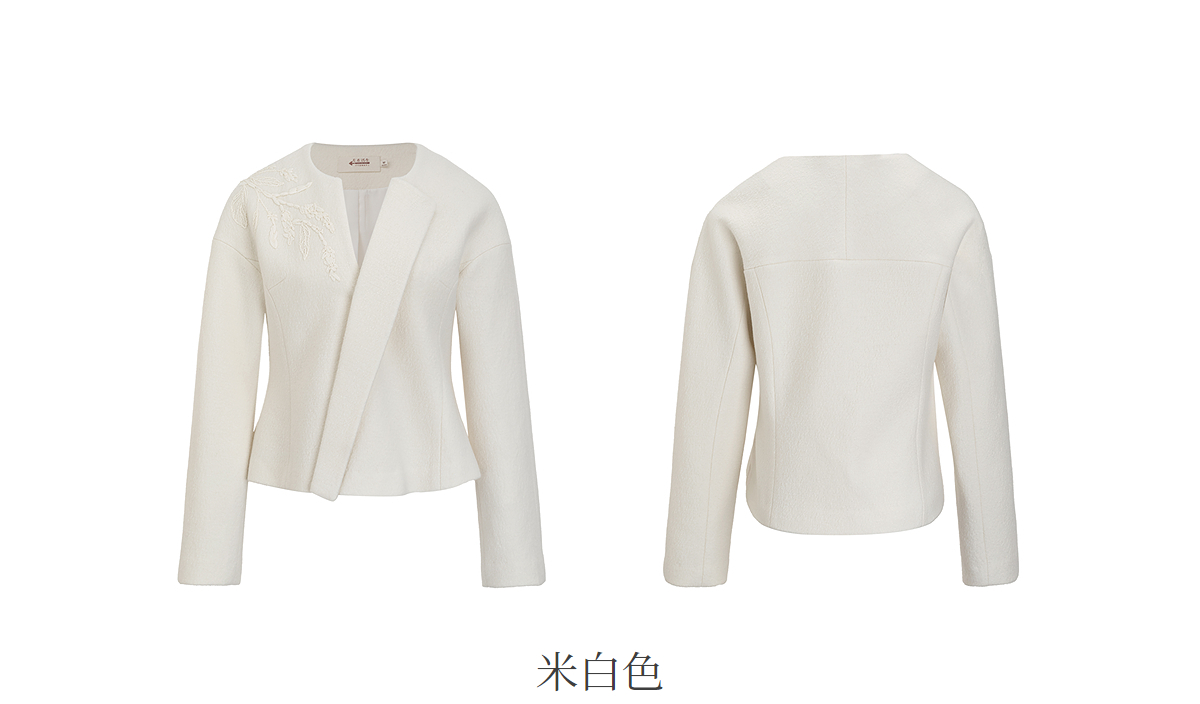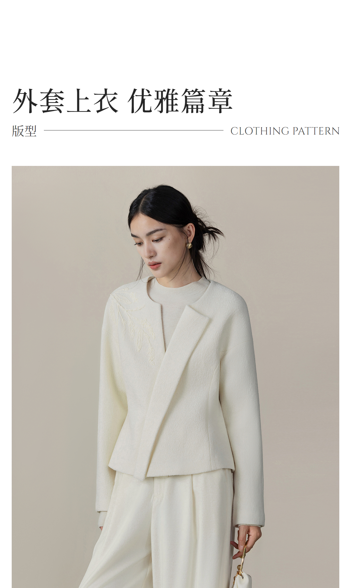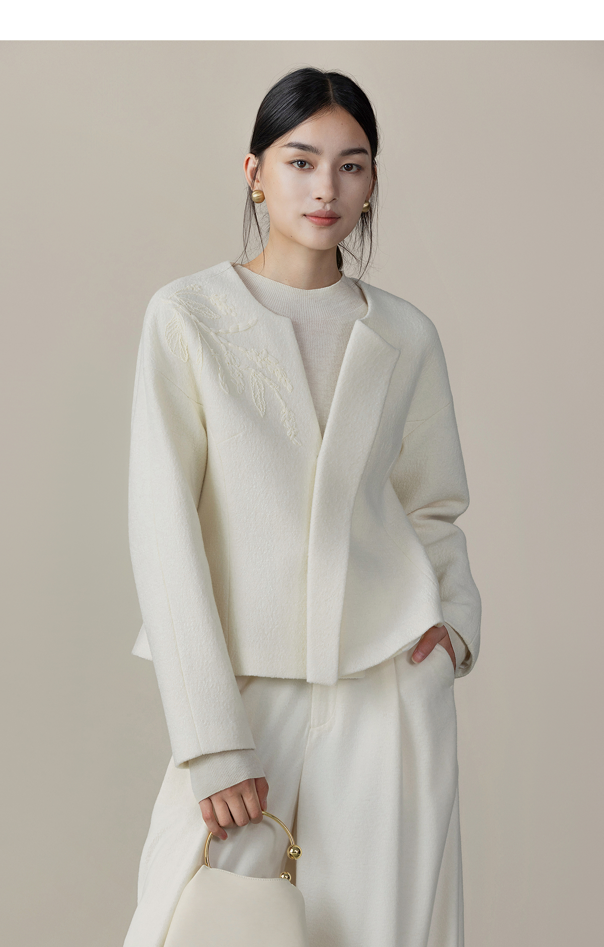 【林栖设计小店】山茶知雾系列绵羊毛外套盘带绣钩花优雅百搭宽松2025秋冬新款短款上衣女1953059
