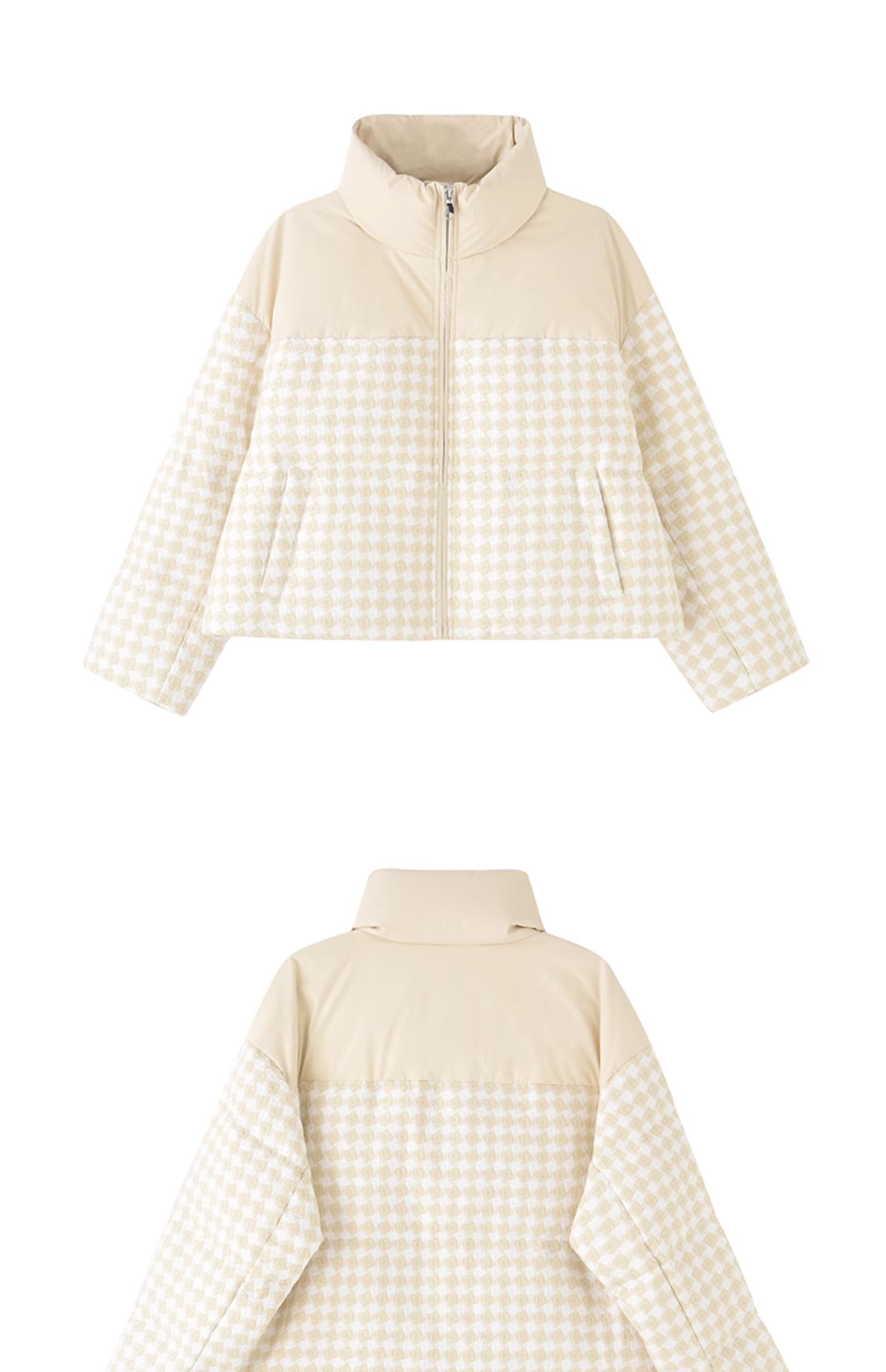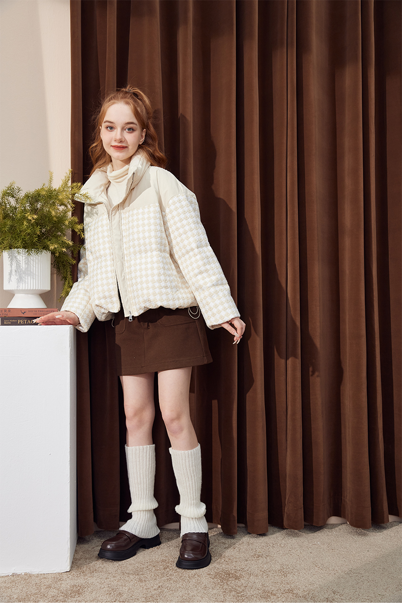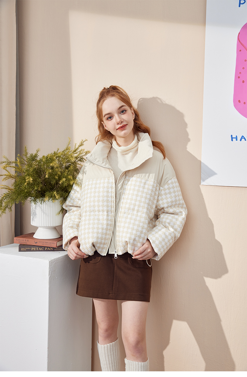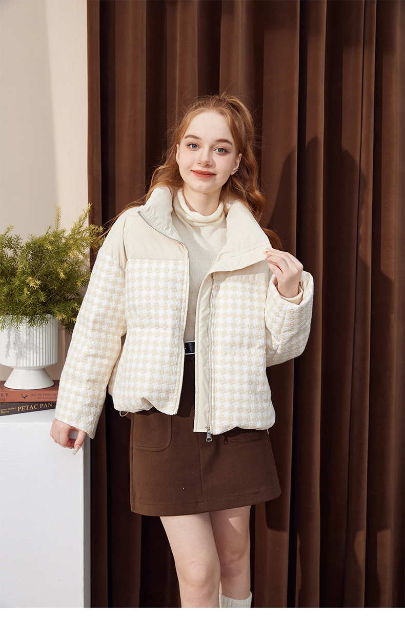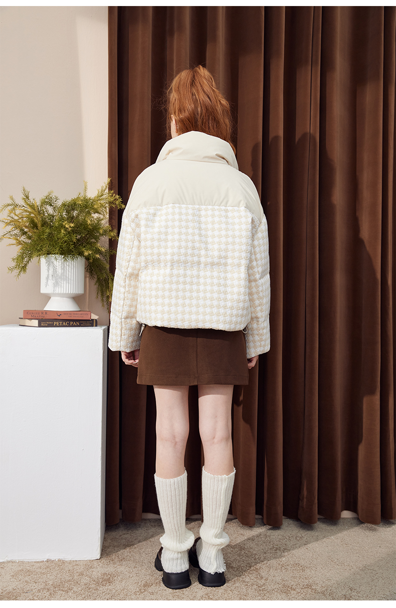 立领小香风千鸟格粗花呢拼接面包服Y3241629