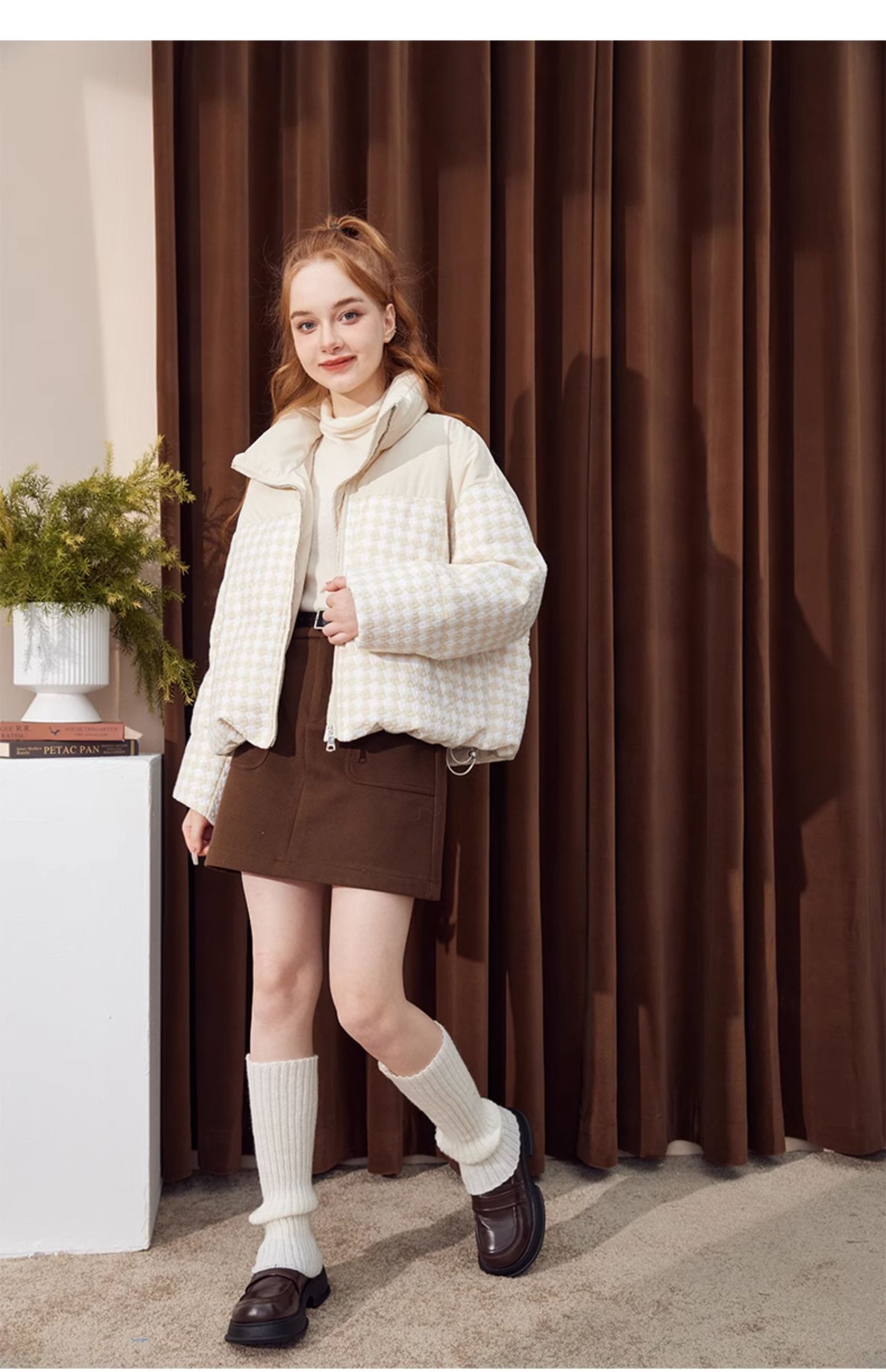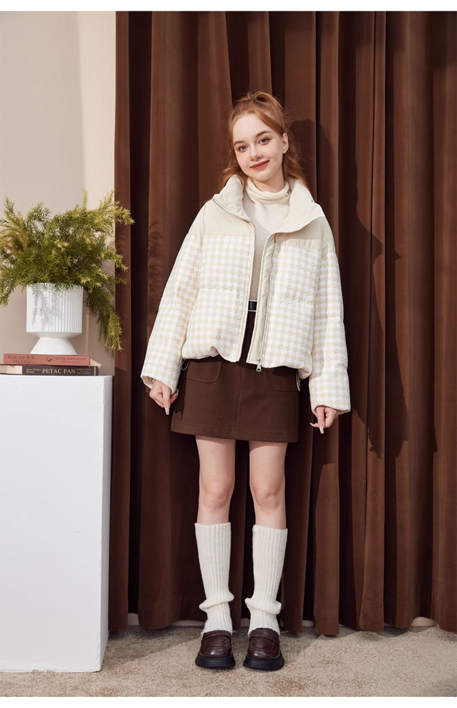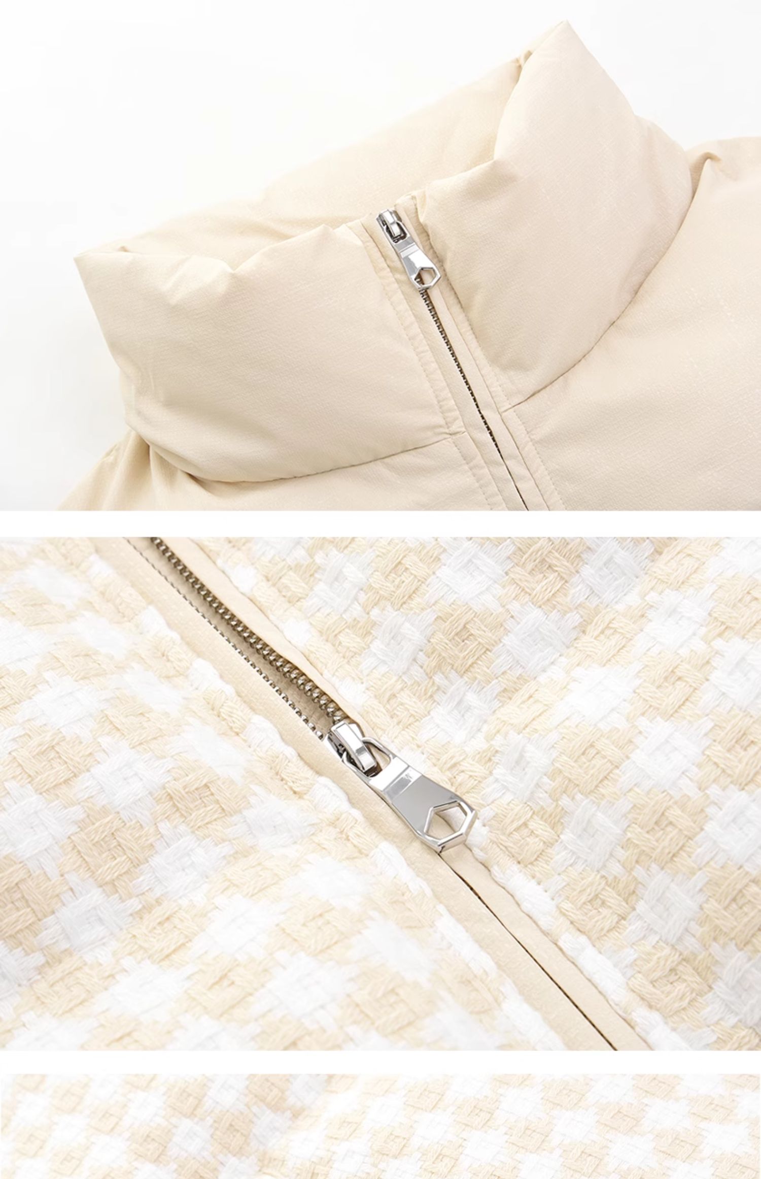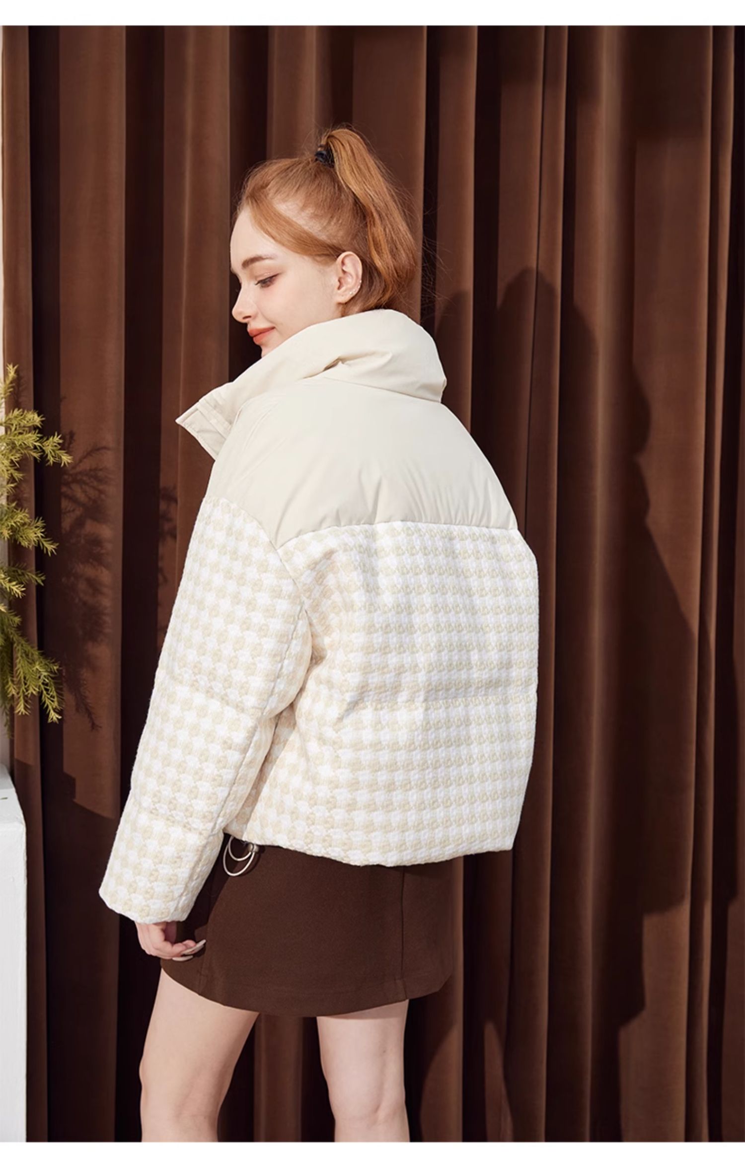 立领小香风千鸟格粗花呢拼接面包服Y3241629
