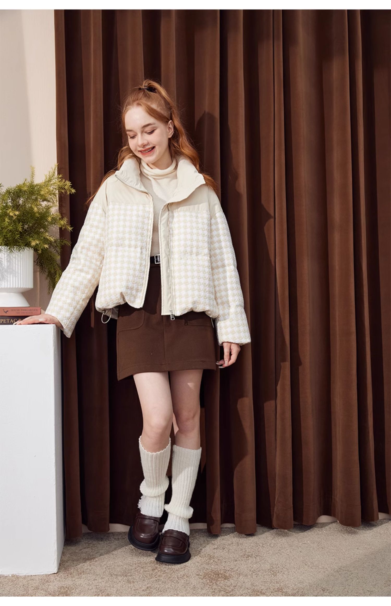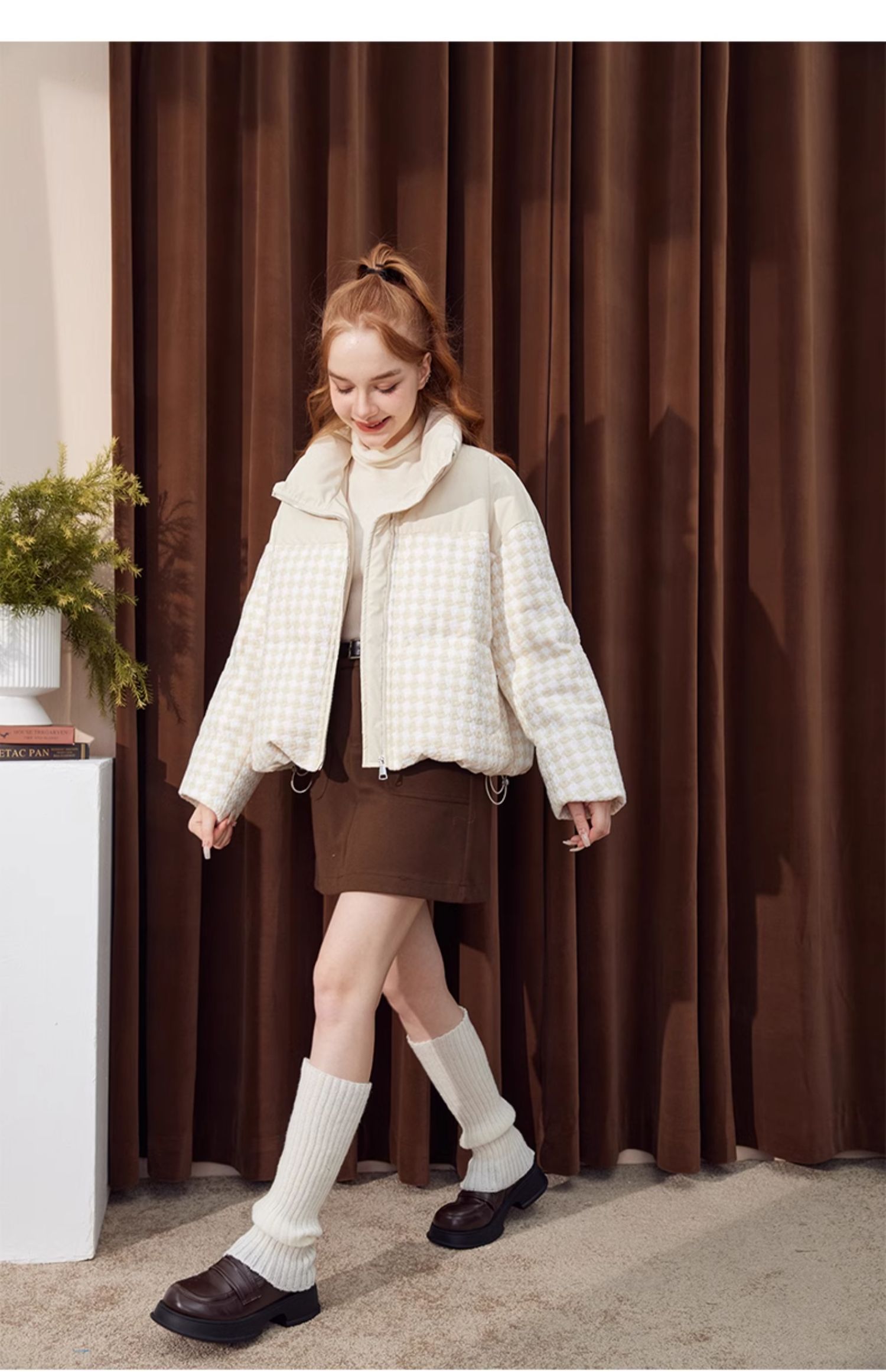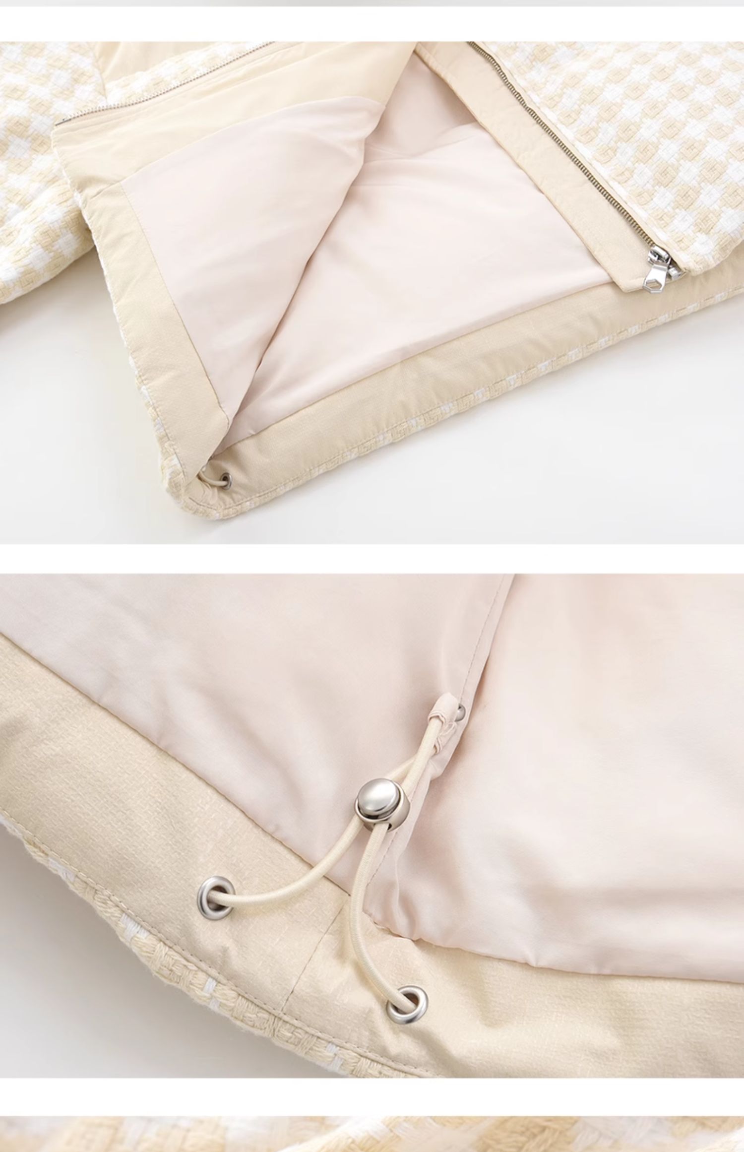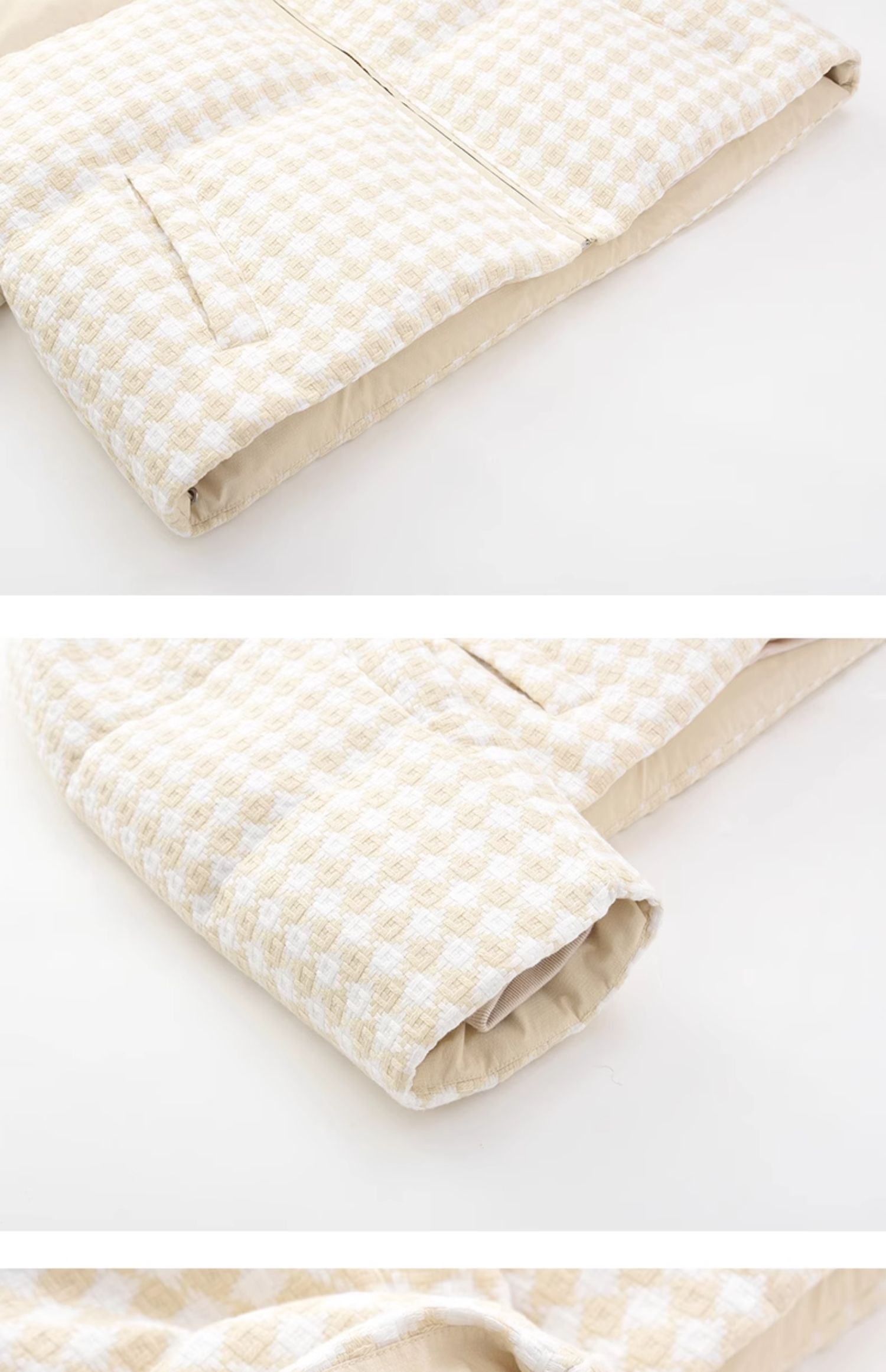 立领小香风千鸟格粗花呢拼接面包服Y3241629