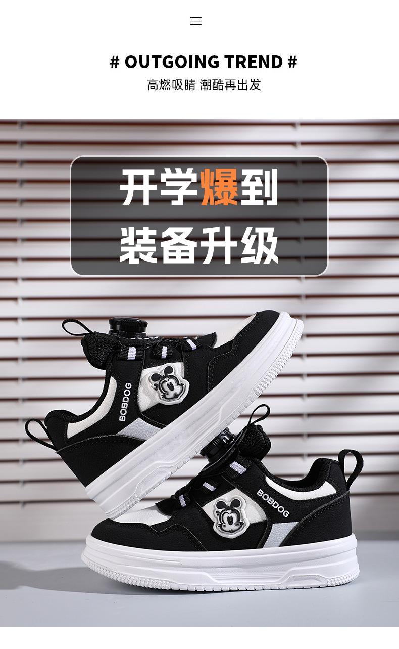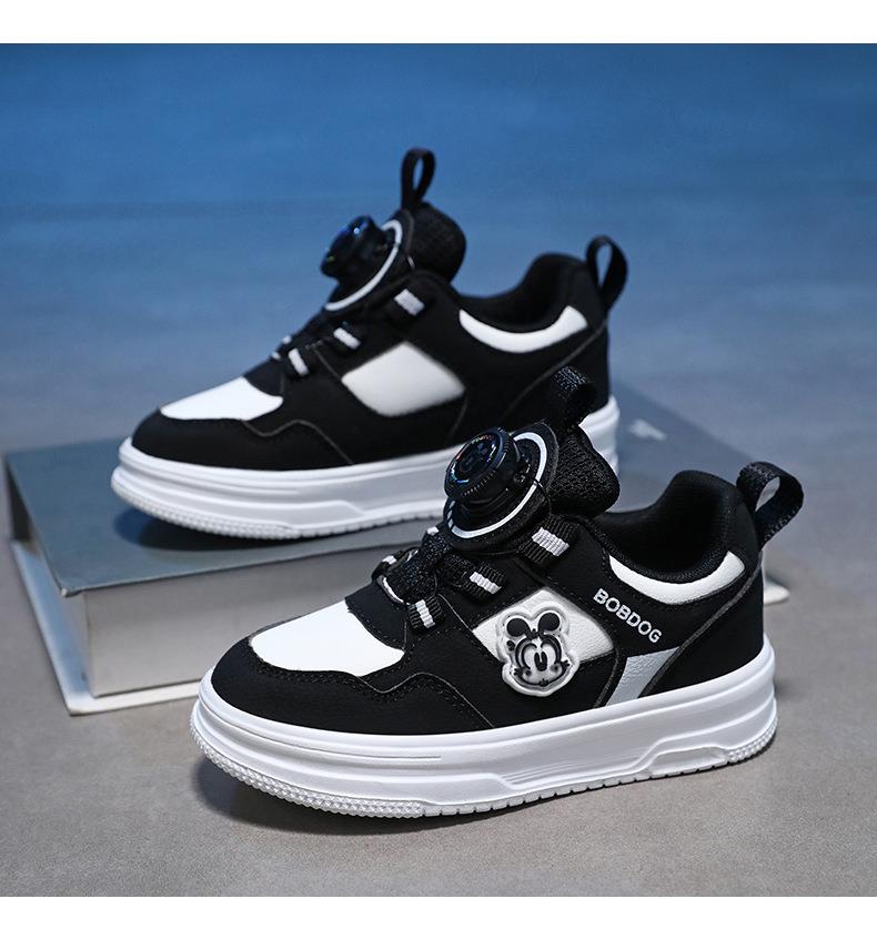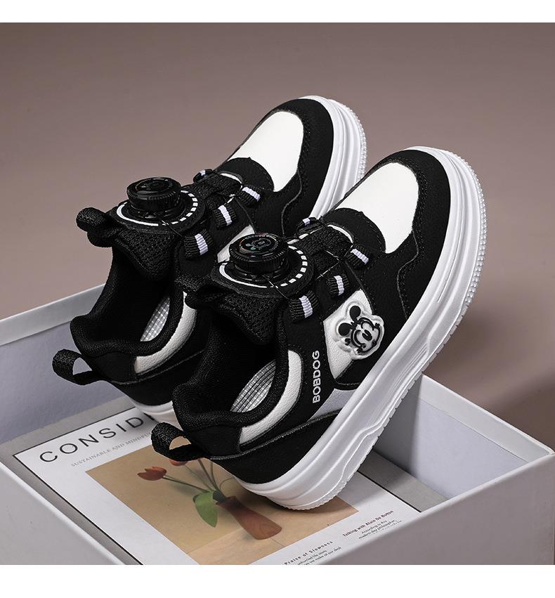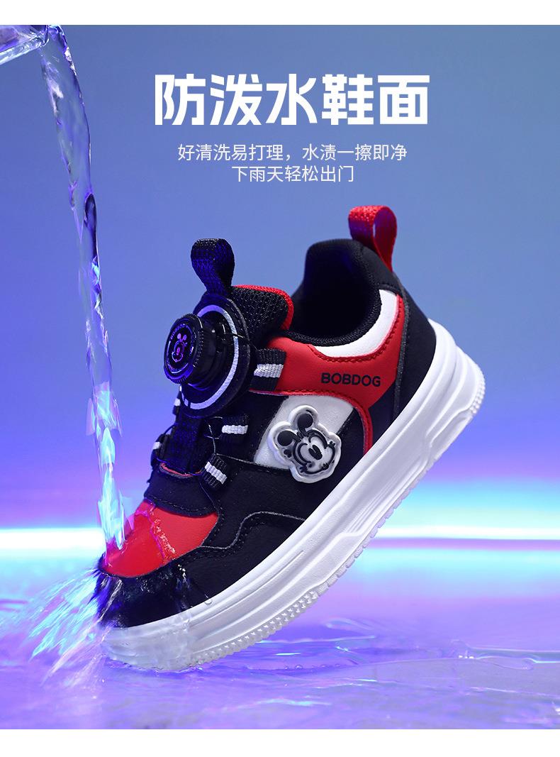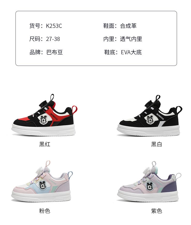 巴布豆童鞋女童低帮板鞋冬季新款儿童女孩皮面防水休闲运动鞋