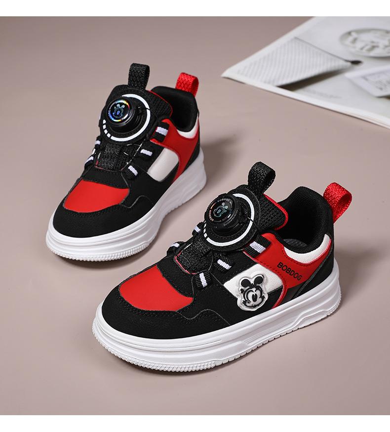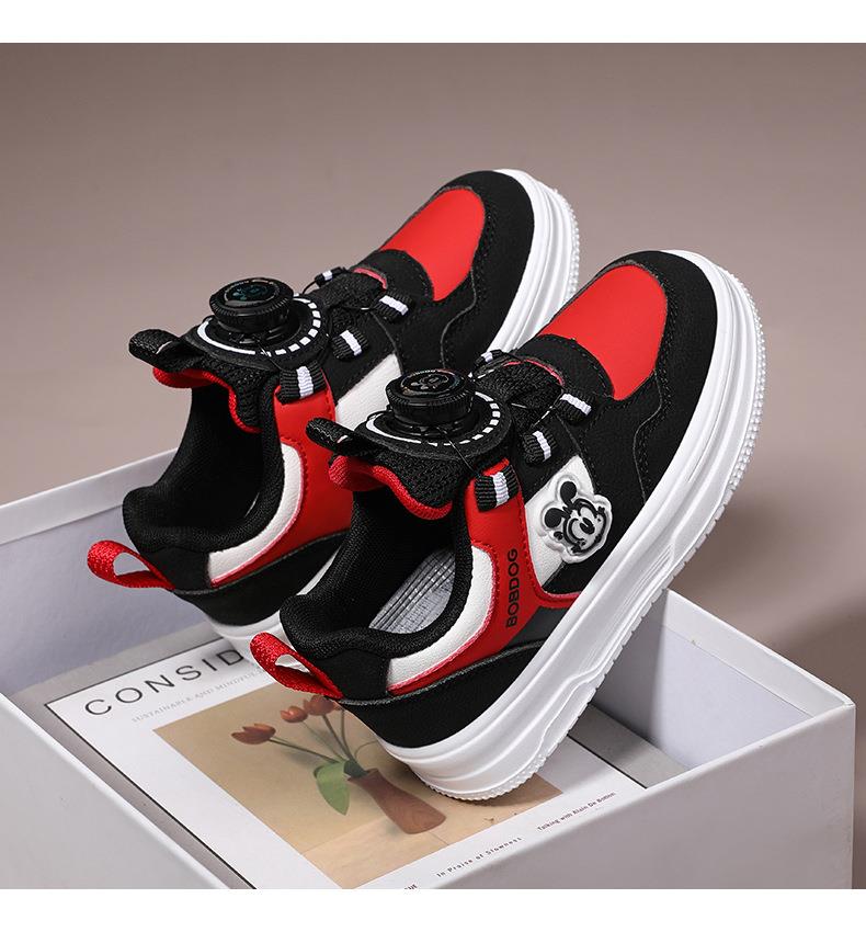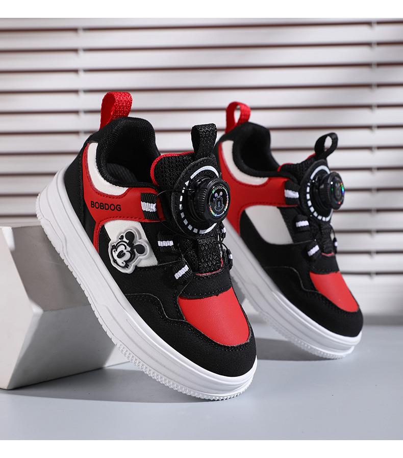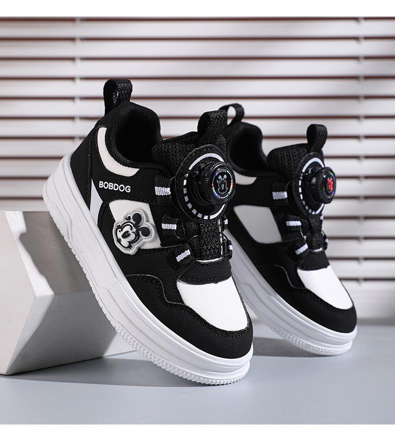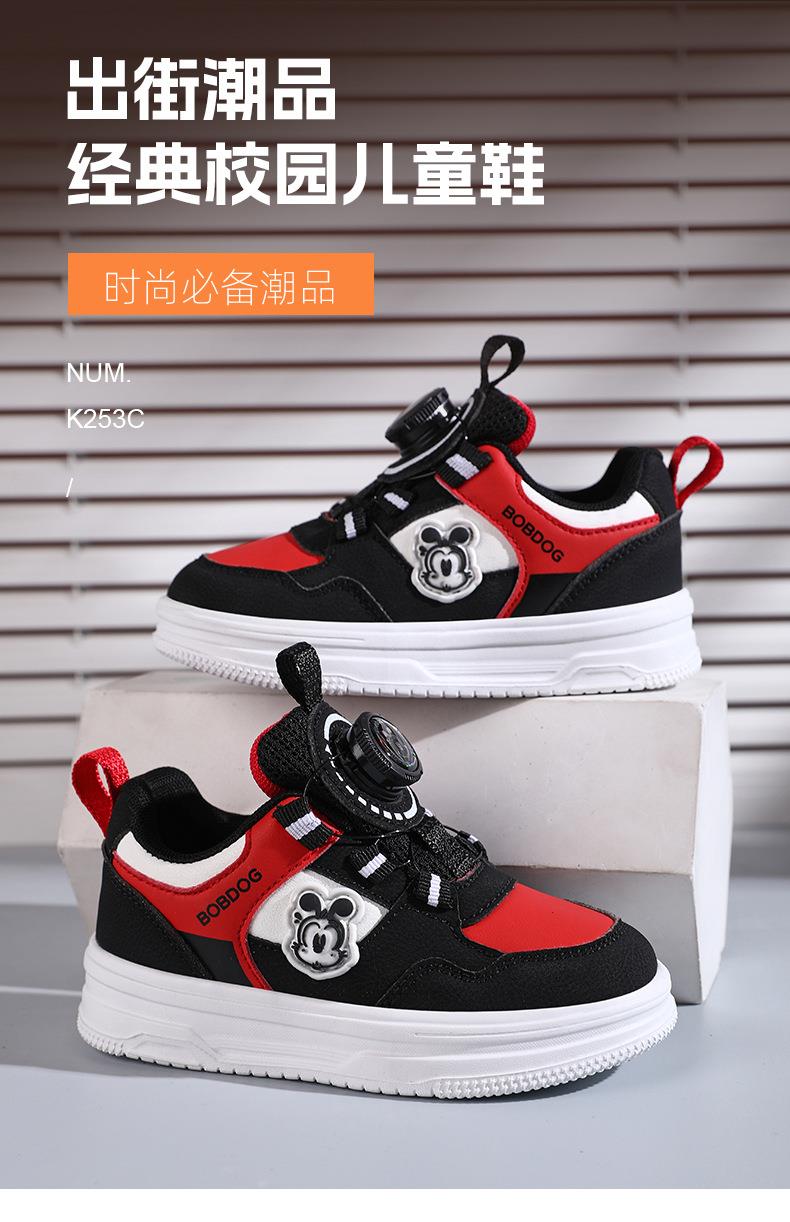 巴布豆童鞋女童低帮板鞋冬季新款儿童女孩皮面防水休闲运动鞋