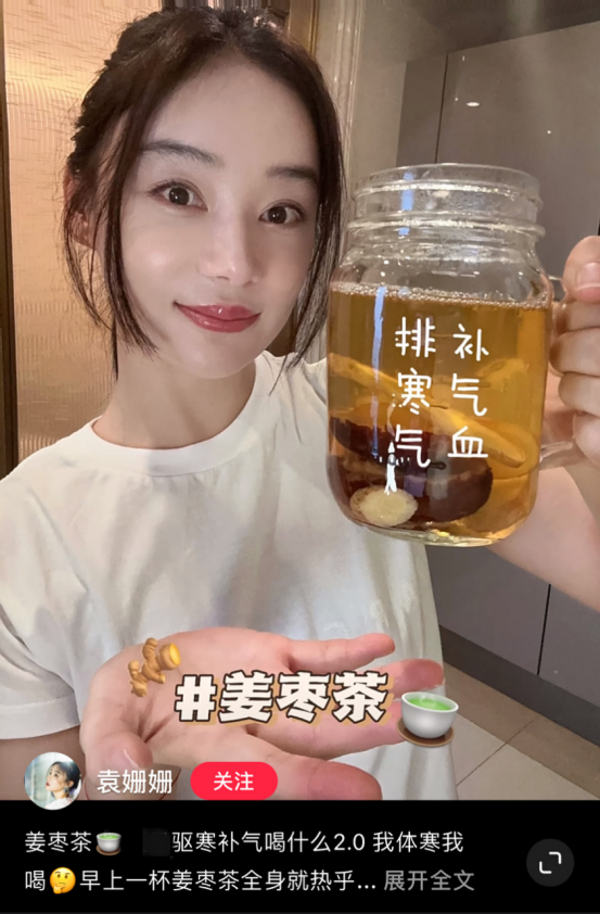 马甲线女星袁姗姗的「排寒气,补气血」姜枣茶 小红书上更是无数姐妹分享 不管是泡水、煮茶还是做甜品 它都是四季皆宜的女性祛寒暖宫补气血的法宝 寒气散了,气血足了,皮肤透亮,气色好! 整个人大变样‼