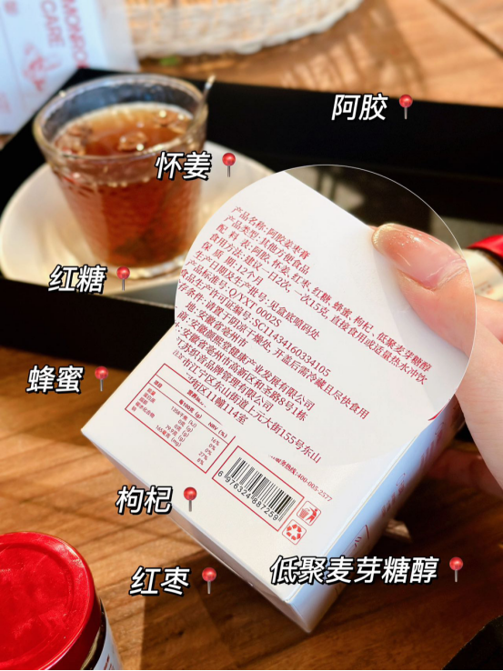🔺阿胶:祛寒暖身补气血虚提升气色 🔺红糖:活血化淤 🔺怀姜,祛除湿寒(效果比生姜更强) 🔺红枣,补血生津 🔺蜂蜜,润肺滋补 🔺枸杞,安神助眠 热水冲泡即可,清香扑鼻,比奶茶还好喝! 喝完一杯就像披了件毛毯,全身暖呼呼的~