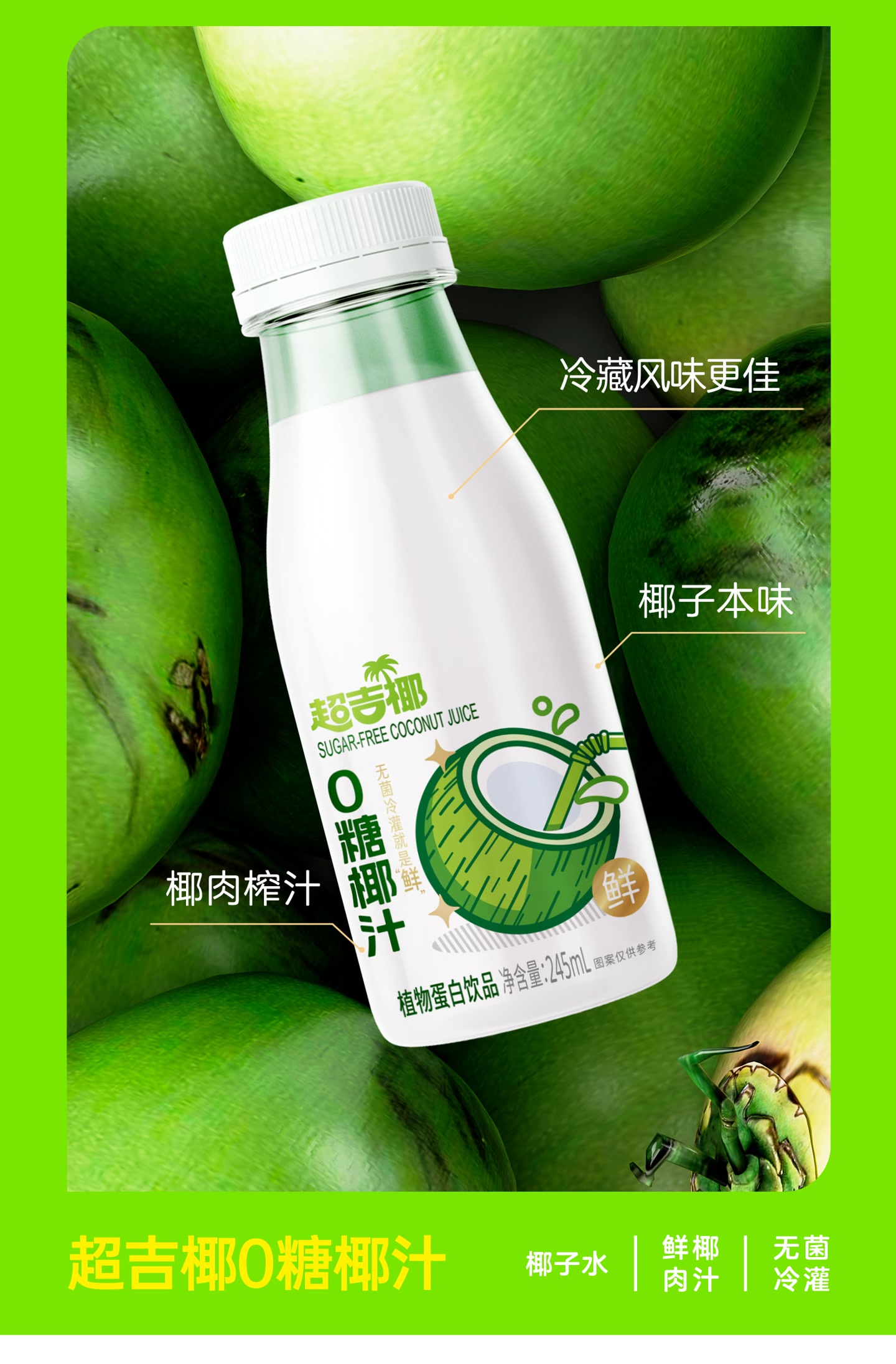 【醒粉福利28.8元/箱】超吉椰0糖椰汁245ml*10瓶 0蔗糖0色素0防腐剂