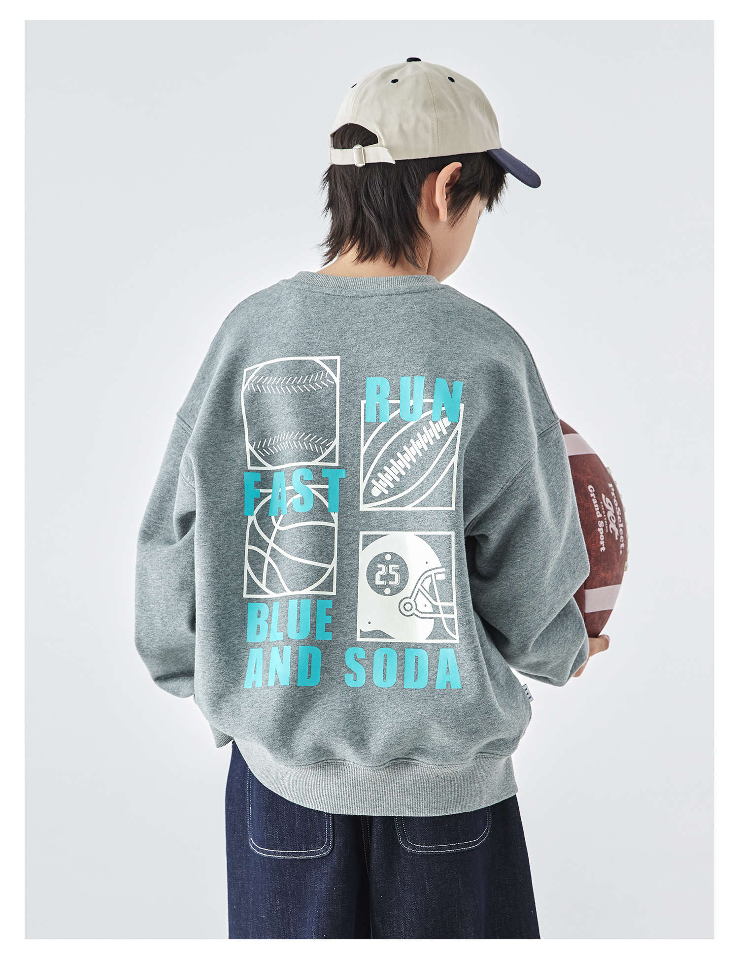蓝汽水25年冬季新款亲子中大男童加绒针织卫衣恒温抗静电宽松上衣