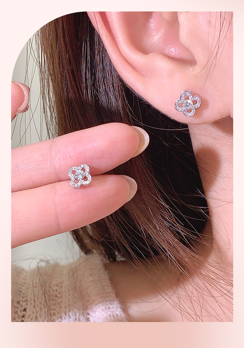 卡蒂罗KADER 幸运四叶草耳钉 满镶闪锆小众清新设计睡觉免摘耳饰 璀璨闪耀吸睛简约日常通勤百搭