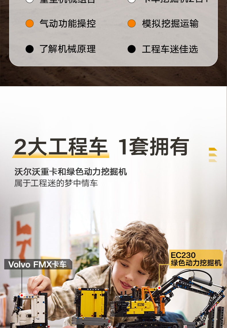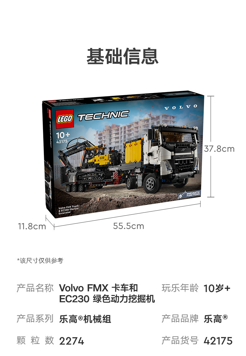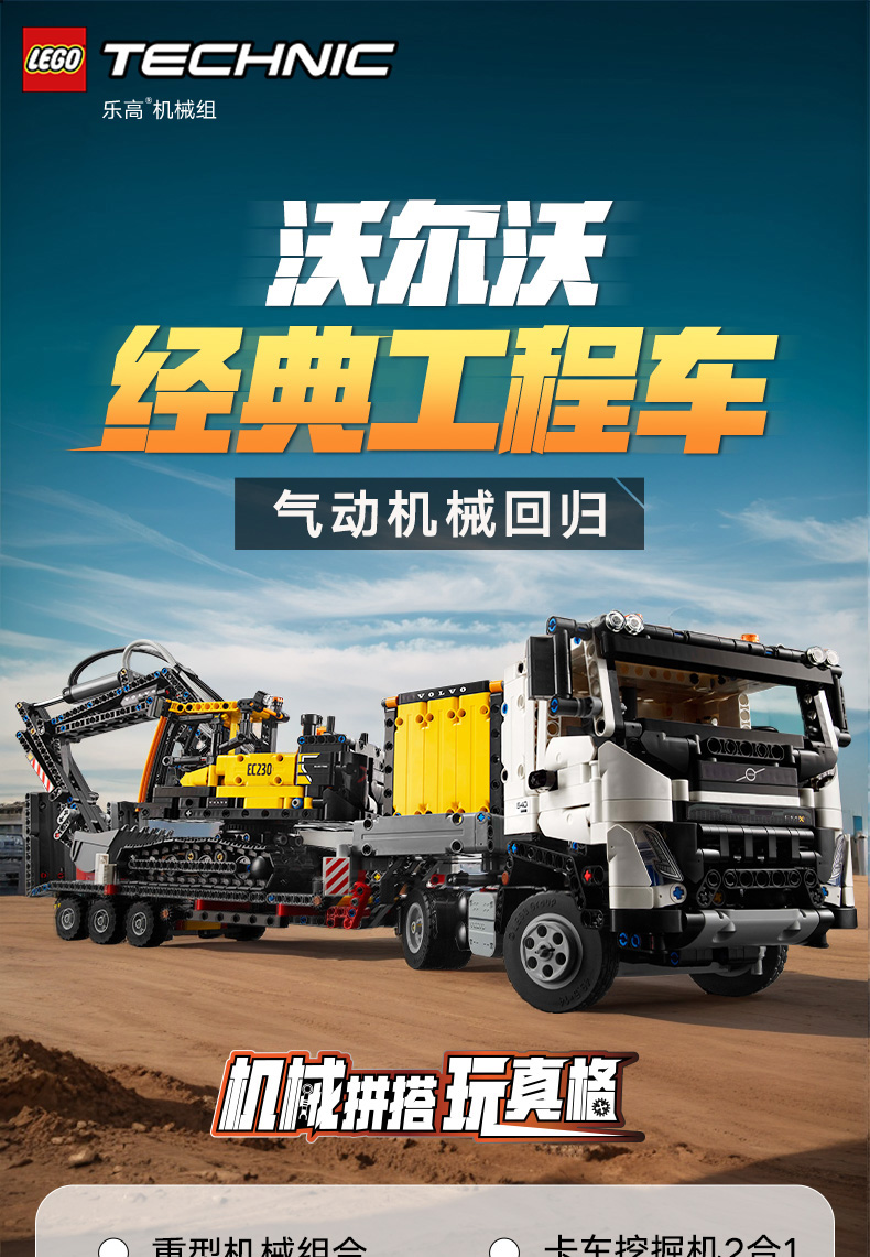 乐高LEGO Volvo FMX卡车和EC230绿色动力挖掘机LEGC42175
