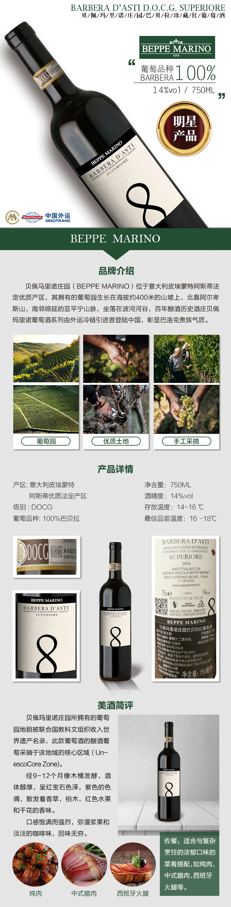 贝佩玛里诺庄园巴贝拉红葡萄酒14%vol 750ml/6瓶/箱