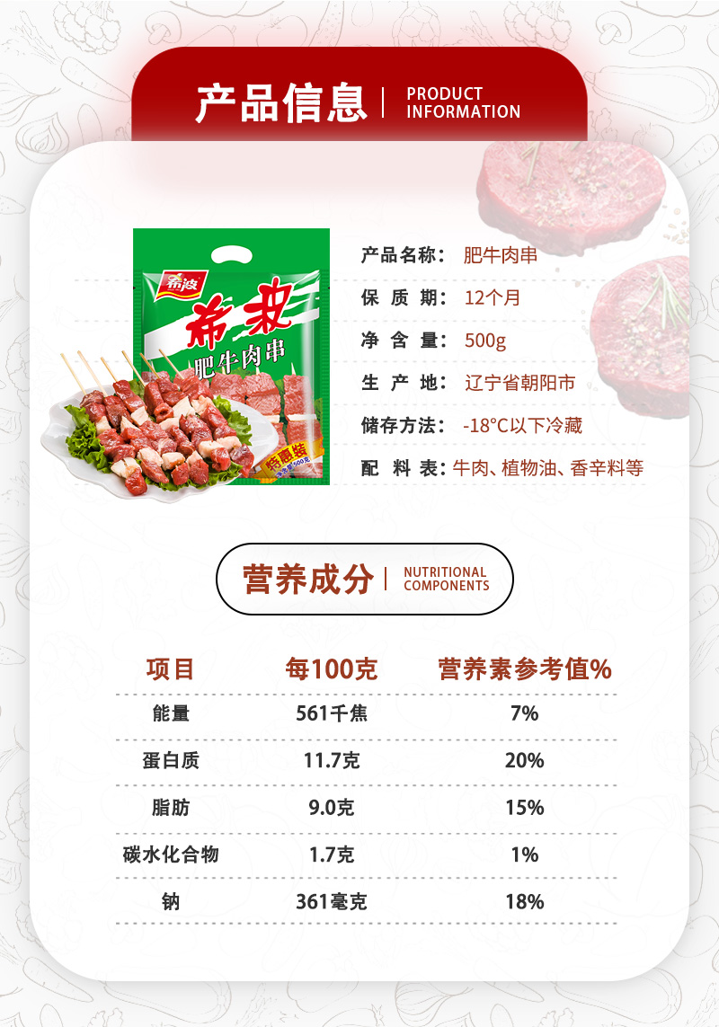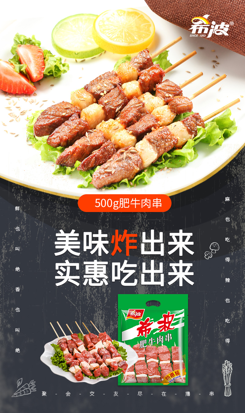 【东北外运】希波肥牛炸串500g/袋 半成品健康美味小吃肉串烤箱空气炸锅适配