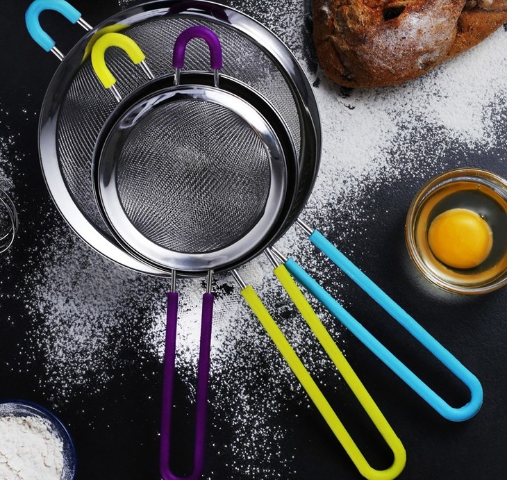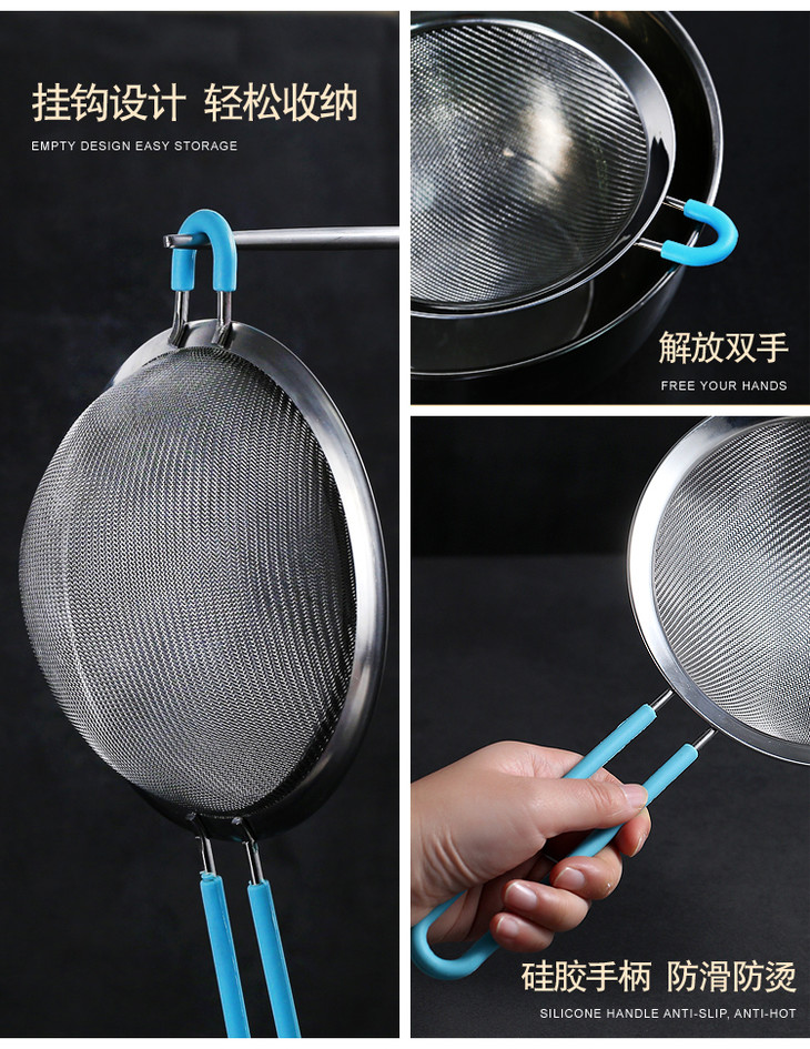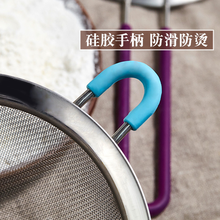 硅胶长柄手持面粉筛 筛网 粉筛直径:8/10/12/14/16/18cm (颜色随机,不指定))