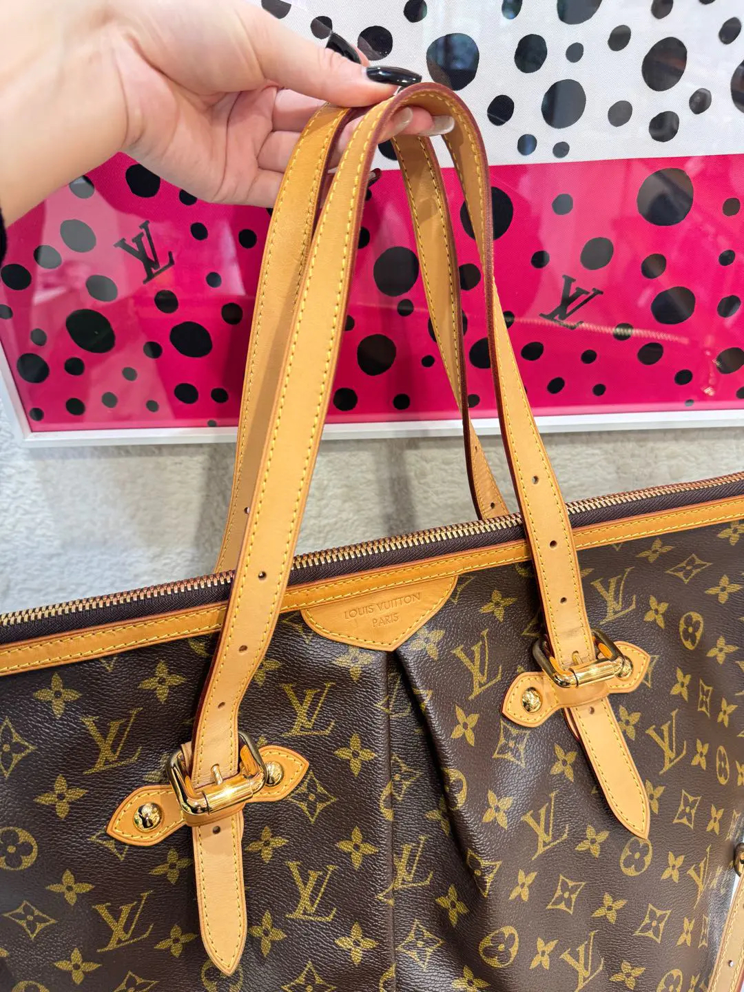 【商品详情】正品二手 Lv 中古 派拉蒙 老花 大号 单肩包🍟 97新 35*35 配件:肩带 票 防尘袋。容量大有个性