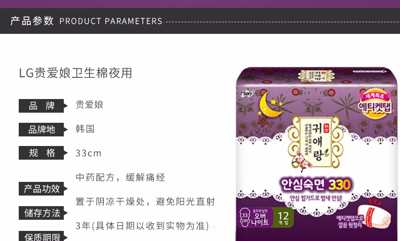 闺艾朗 中草药无荧光剂卫生巾 33CM*12片JPY带授权招加盟代理