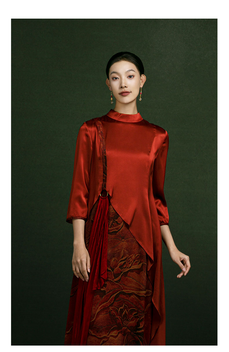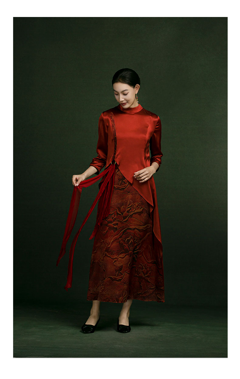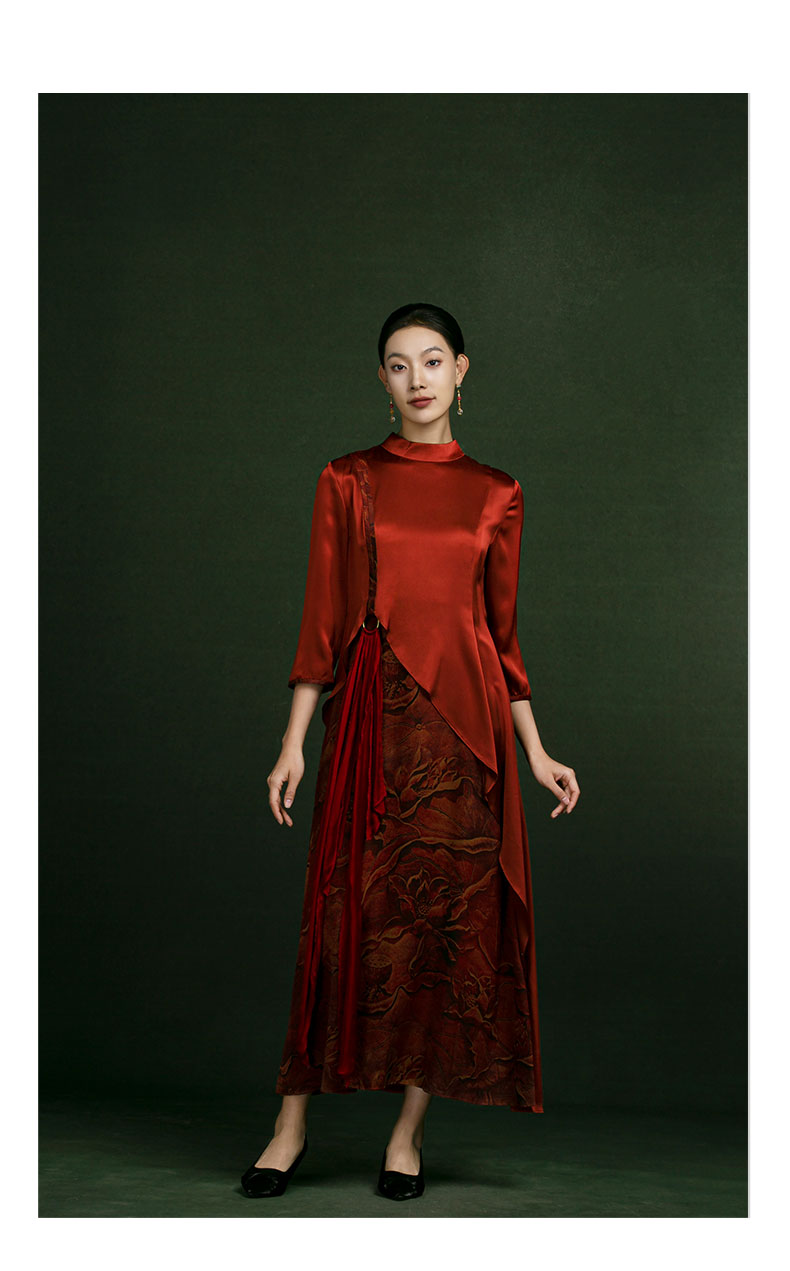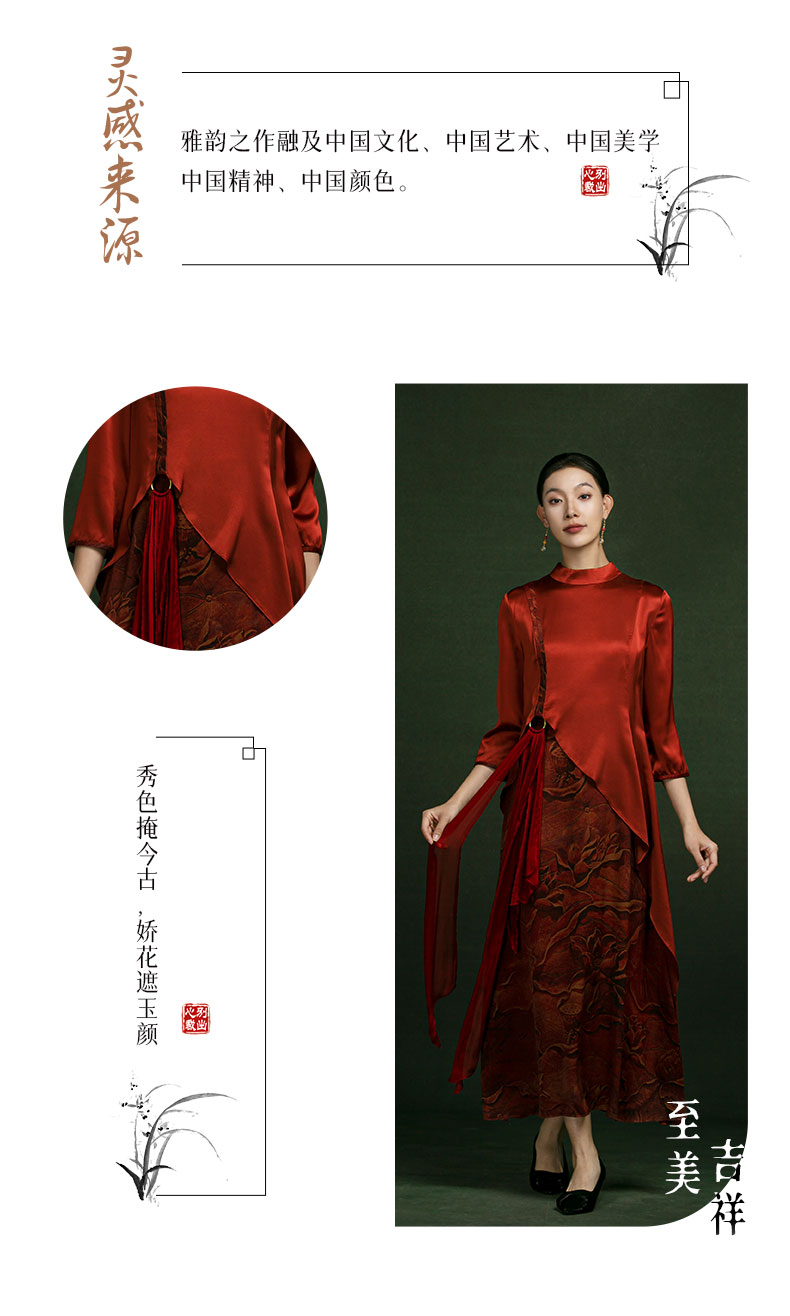 吉祥衣家新中式国风蚕桑丝裙子气质修身女装金络城曲连衣裙