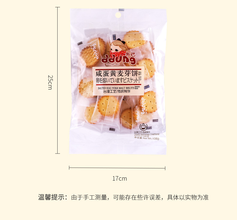 冬己早餐饼干 咸蛋黄/黑糖麦芽5袋装 网红零食口味可选