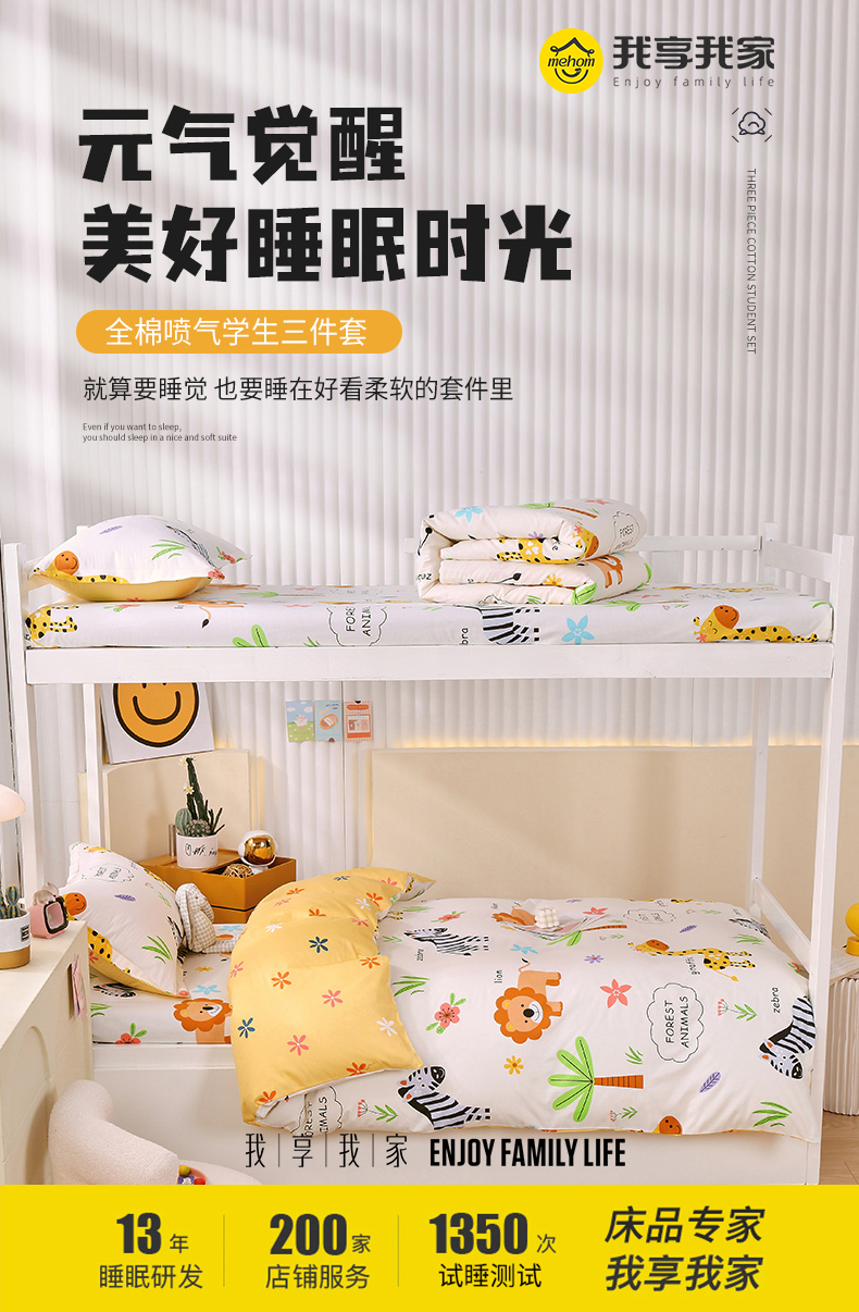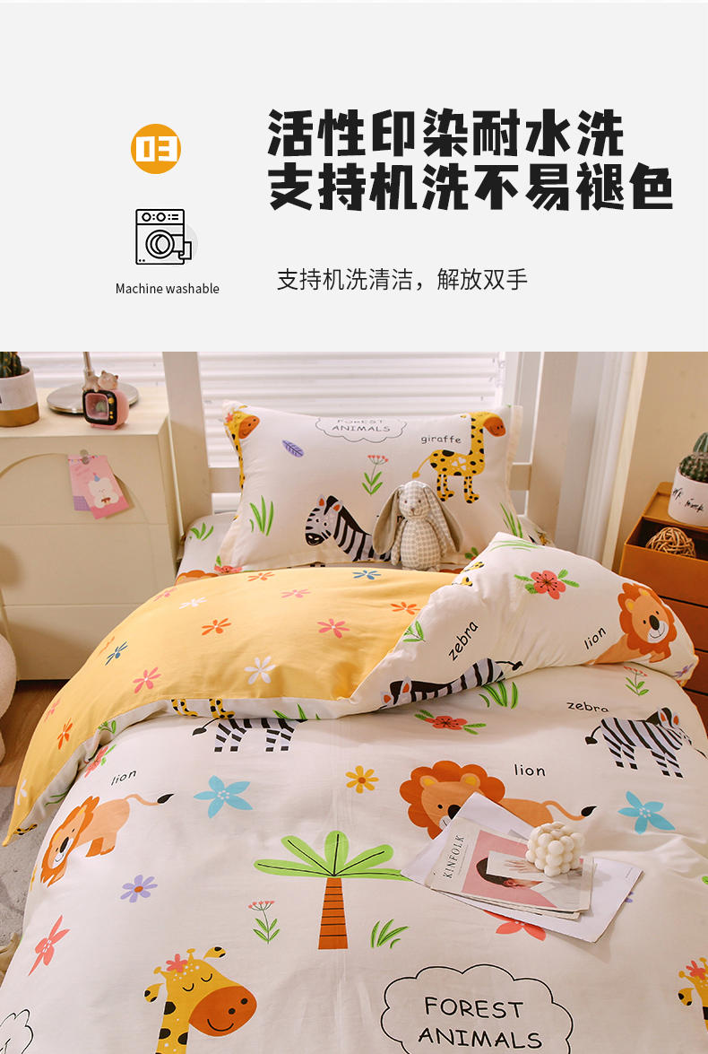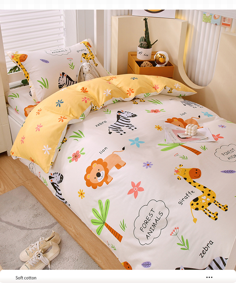 学生宿舍纯棉卡通被套三件套单人床上用品被罩床单全棉小清新春夏