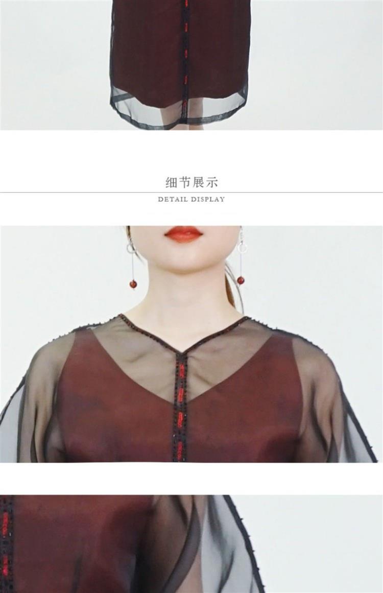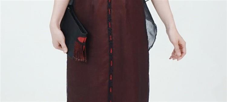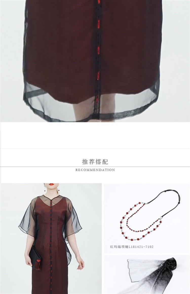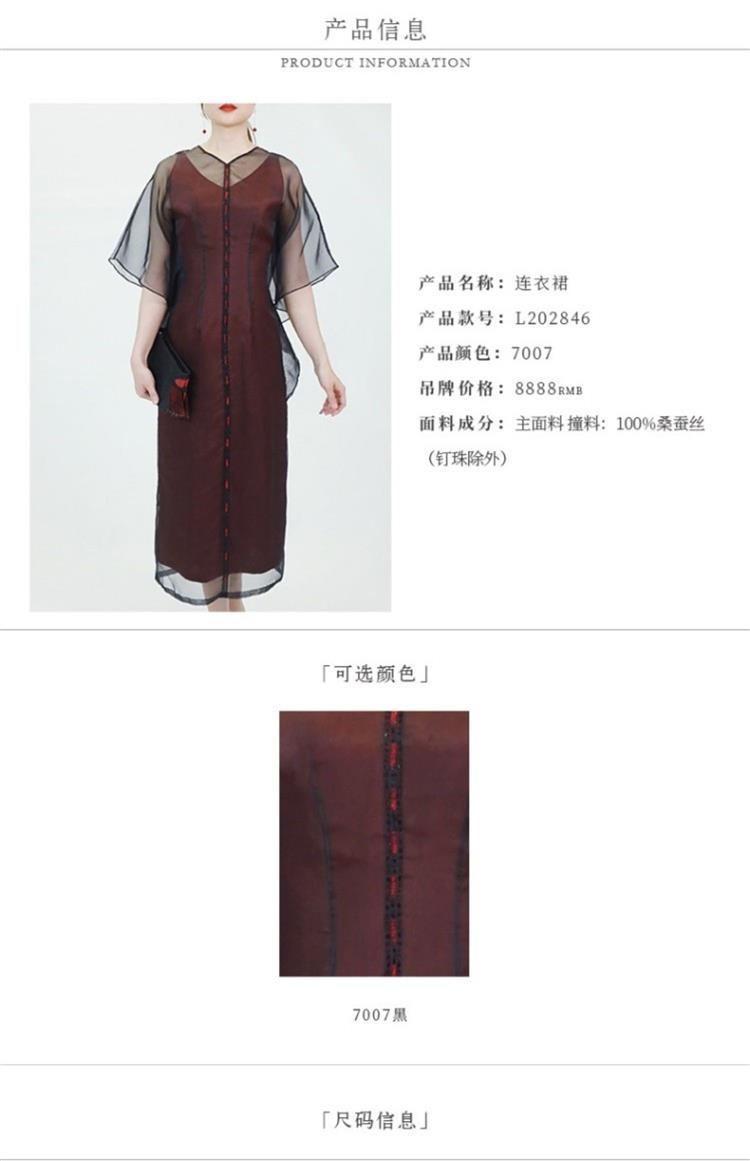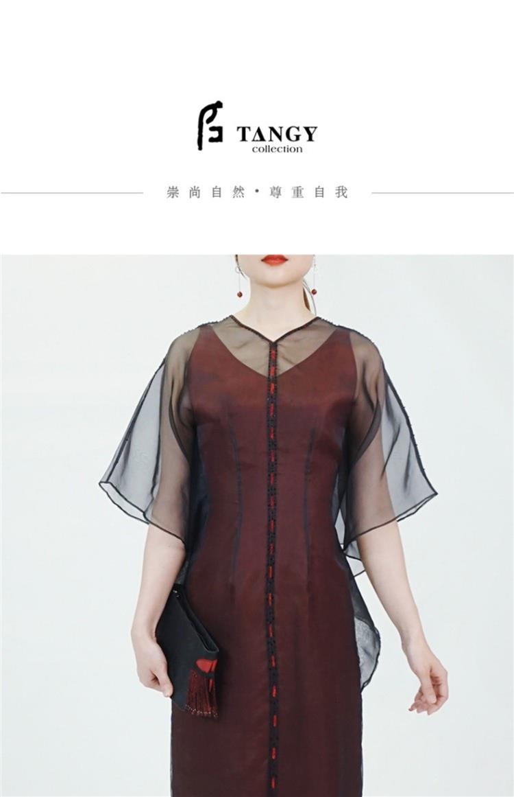 TANGY Collection/天意精品春夏新品柯纱线迹真丝莨绸连衣裙