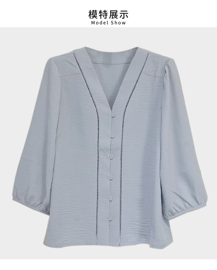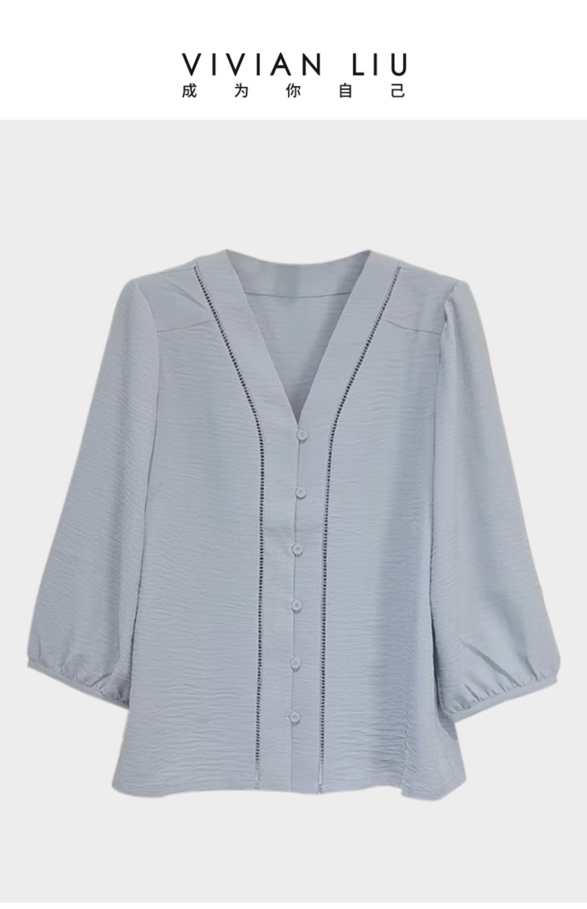 VIVIAN LIU薇薇安刘R2423006春女装新款时尚V领大袖口上衣
