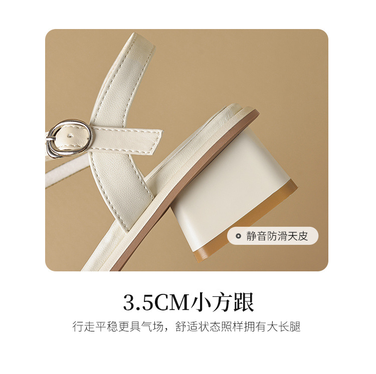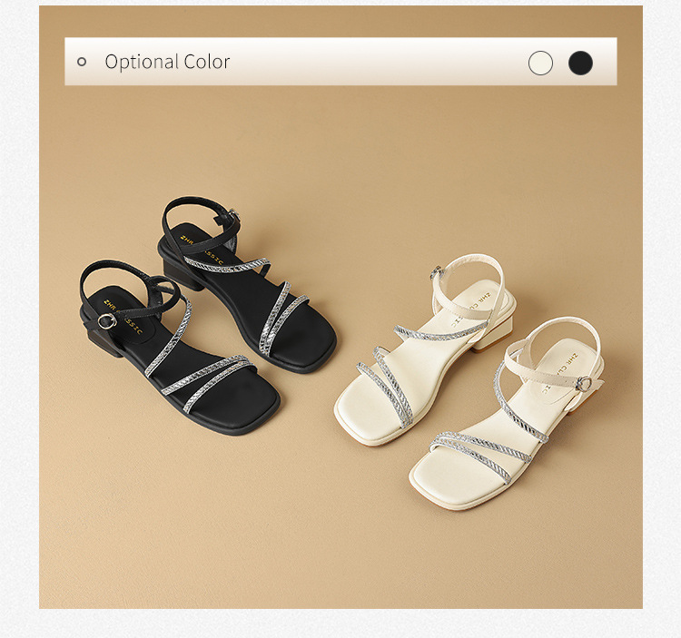 ZHR罗马凉鞋女2024夏季新款外穿水钻粗跟一字带时装女鞋配裙子