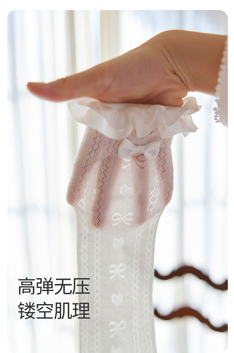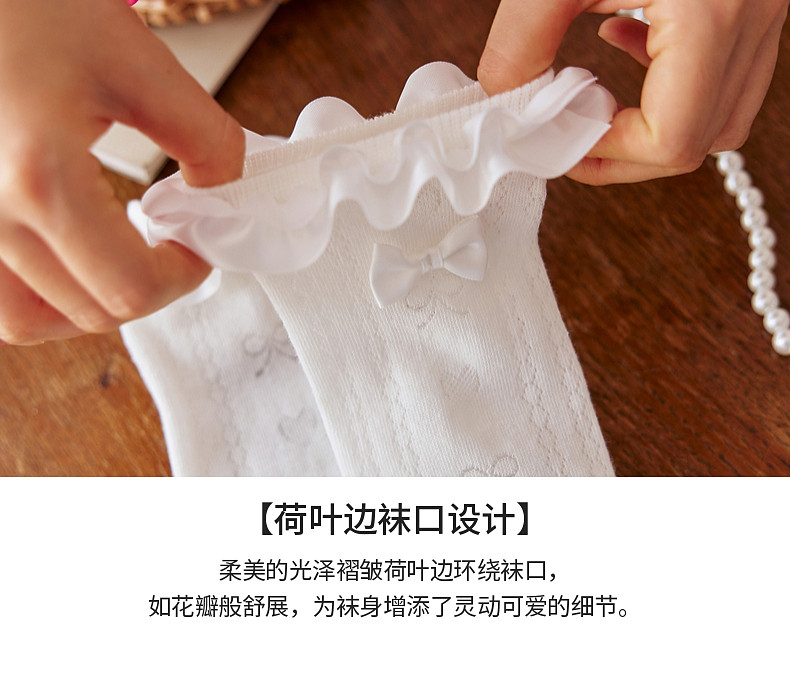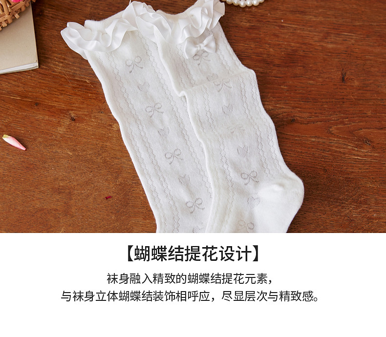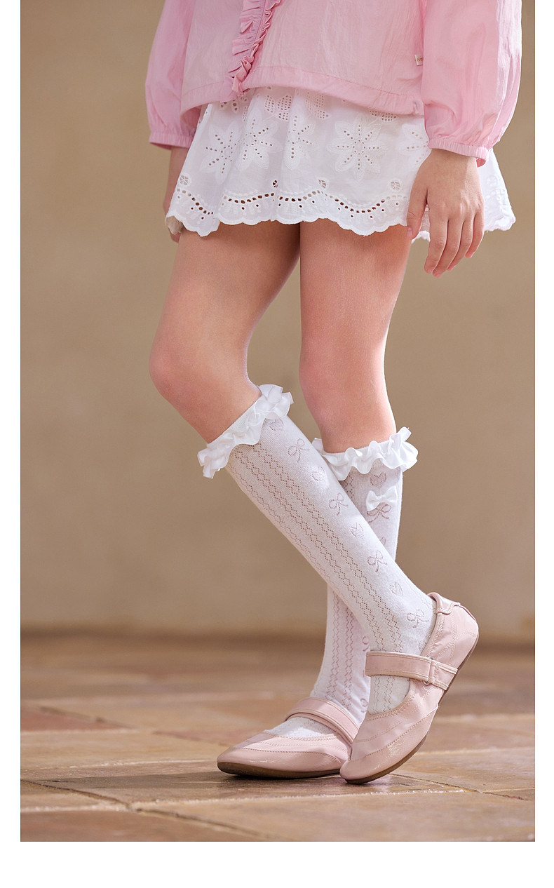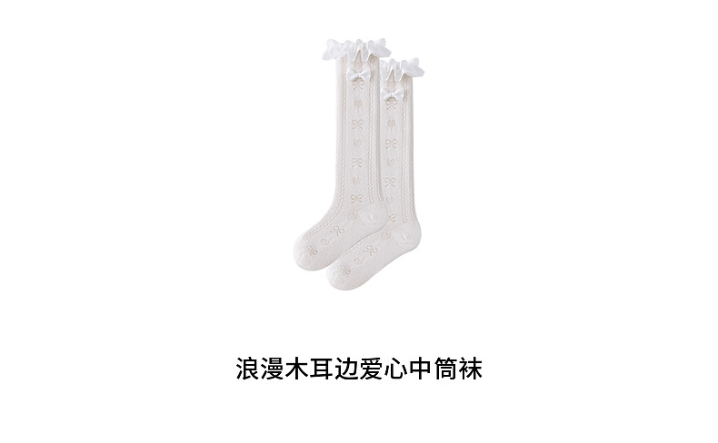 【云优选】Little Naive女童花边半筒袜四季款抗菌袜子儿童木耳边爱心中筒袜