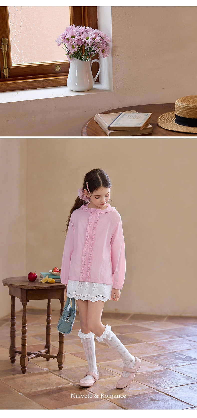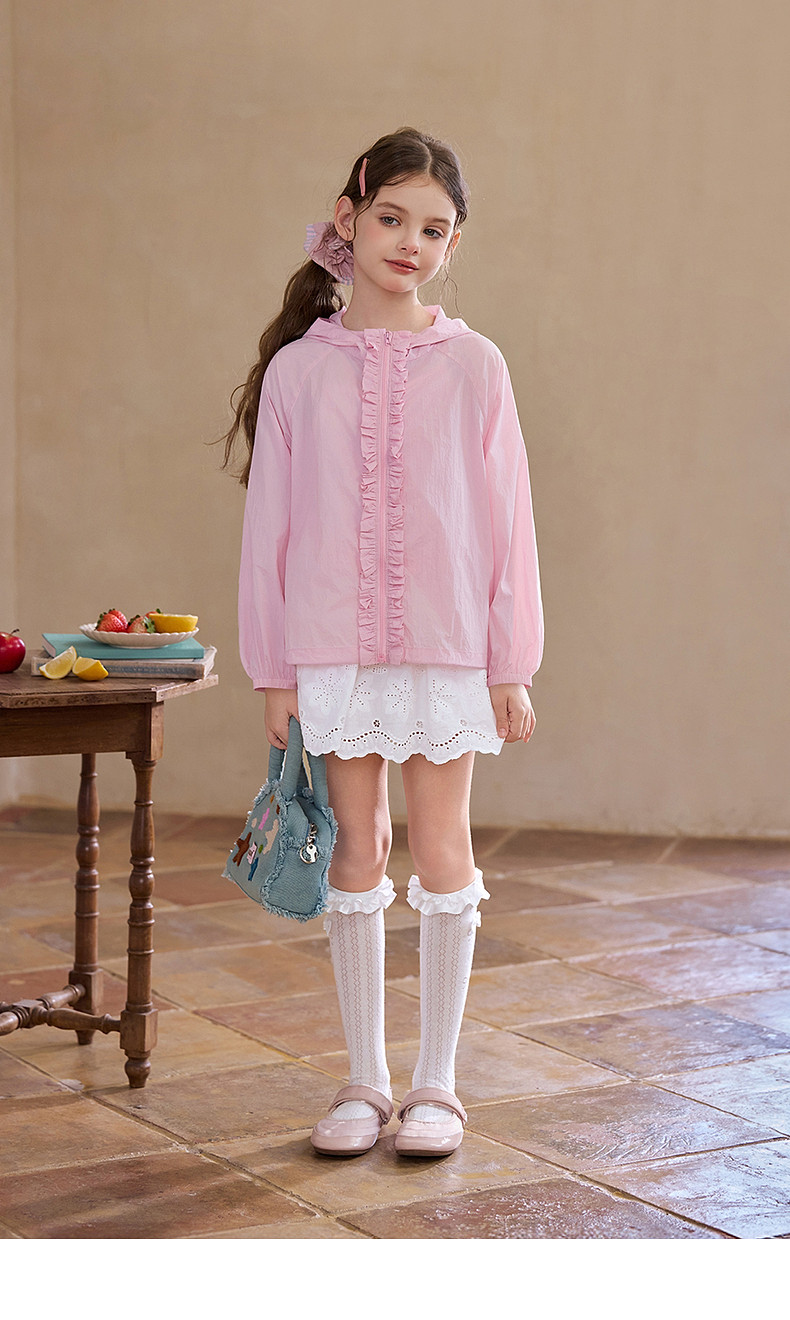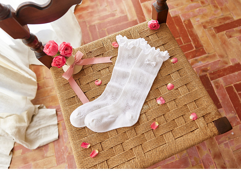 【云优选】Little Naive女童花边半筒袜四季款抗菌袜子儿童木耳边爱心中筒袜