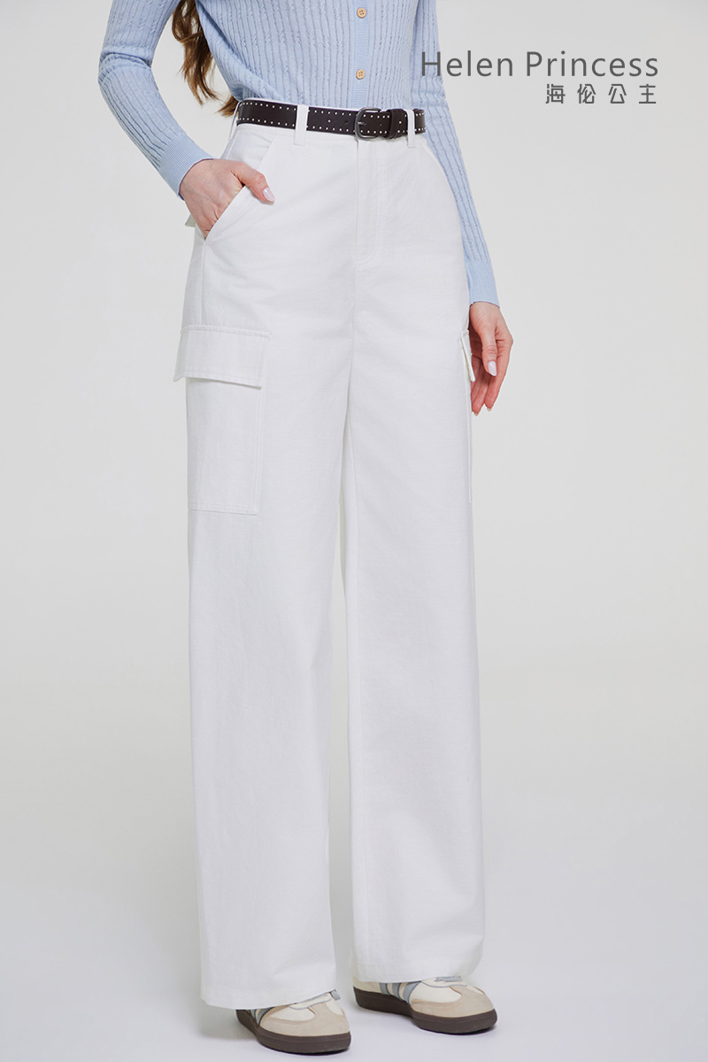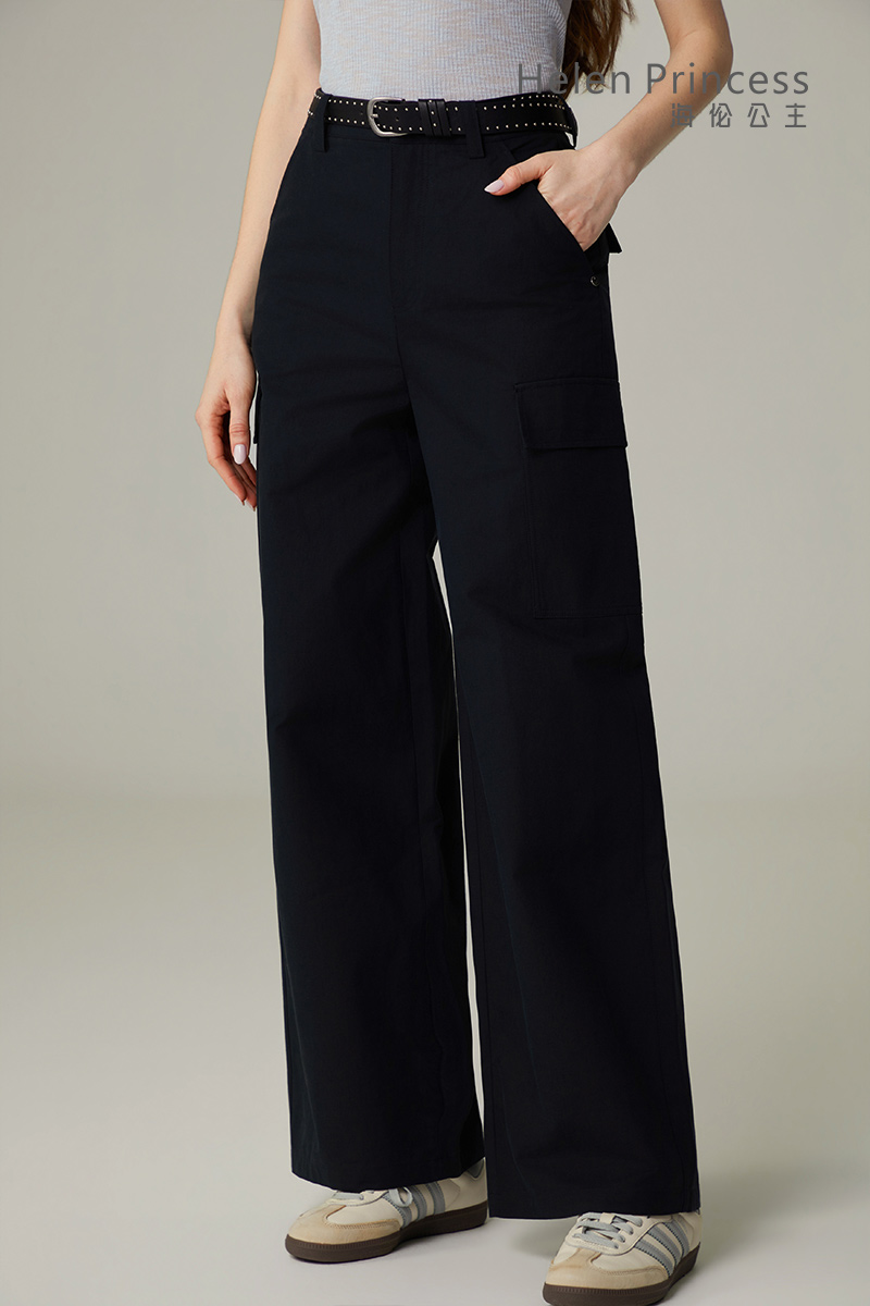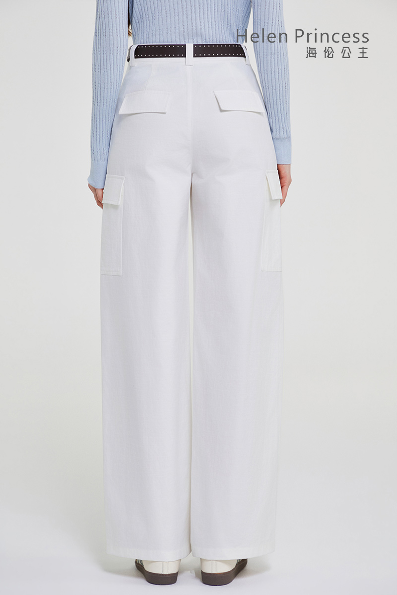 经典高腰阔腿剪裁,修饰胯宽,优化身材比例;搭配柳丁腰带,展现个性不羁的时尚态度。双侧立体大口袋兼具实用性与工装标志性元素,街头感十足。面料舒适透气,穿着无束缚。