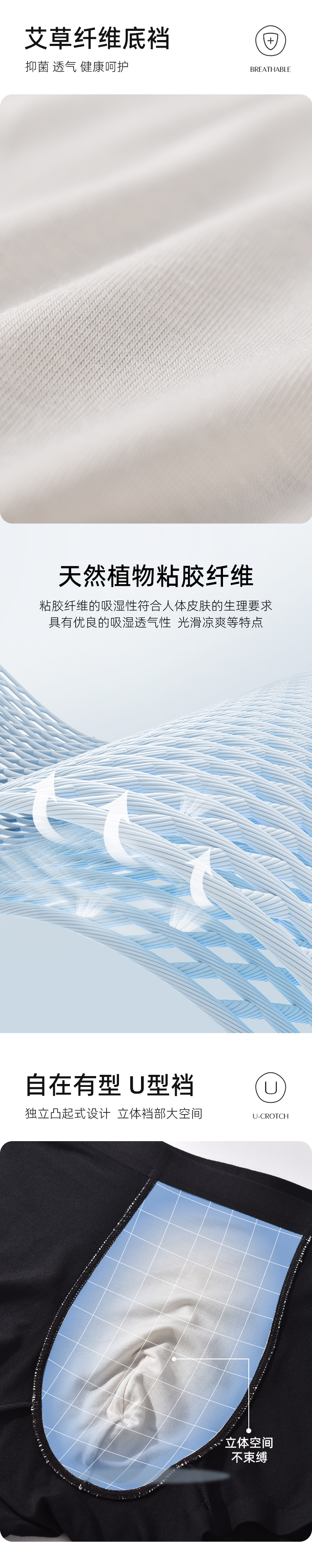 新款天然再生纤维莫代尔男士内裤艾草抗菌裆男款裤头裸感无痕裤衩平角裤DKN1165