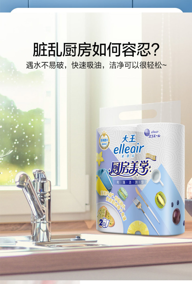大王elleair厨房纸巾美学系列利落洁冽型70节2大卷吸水吸油