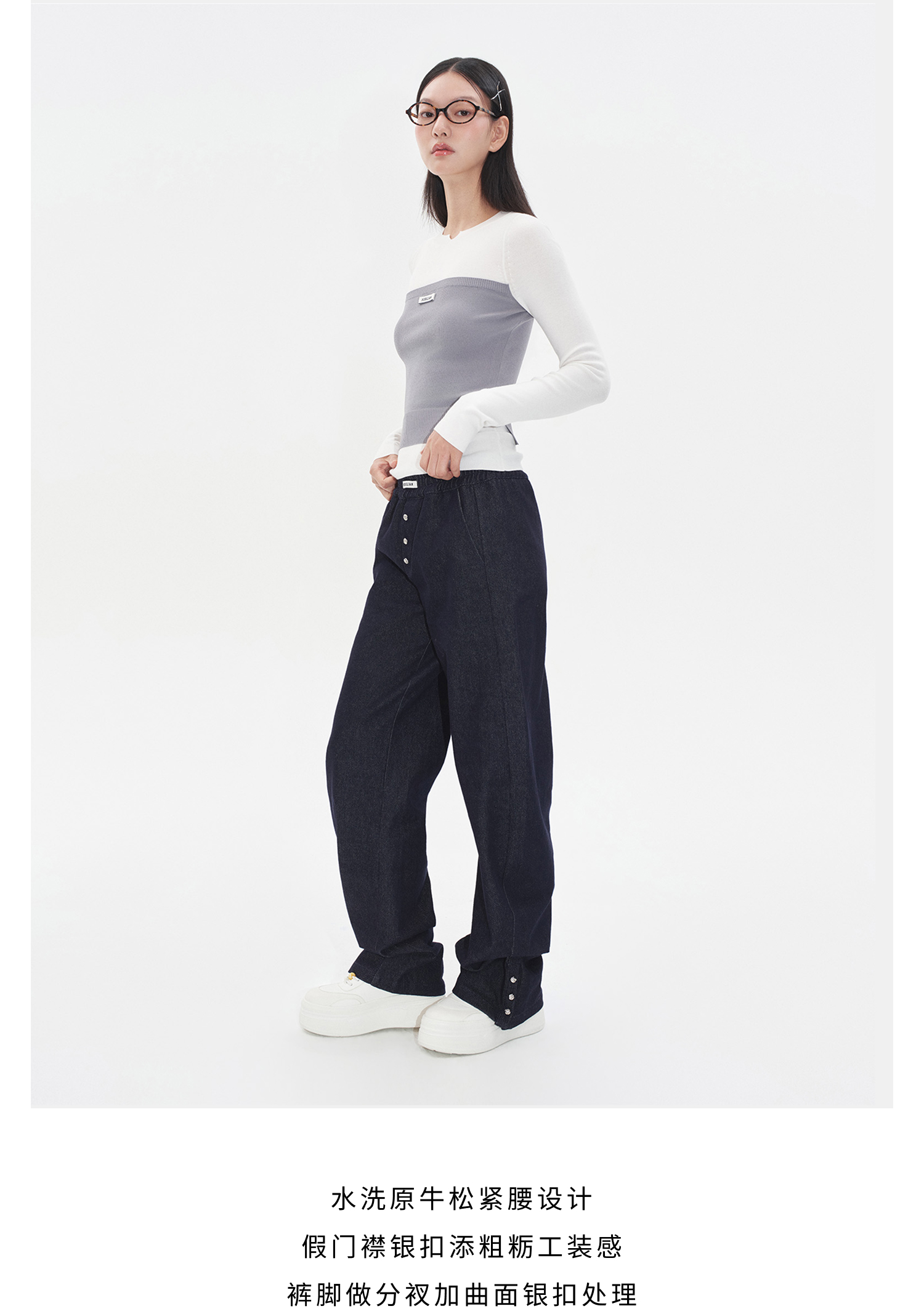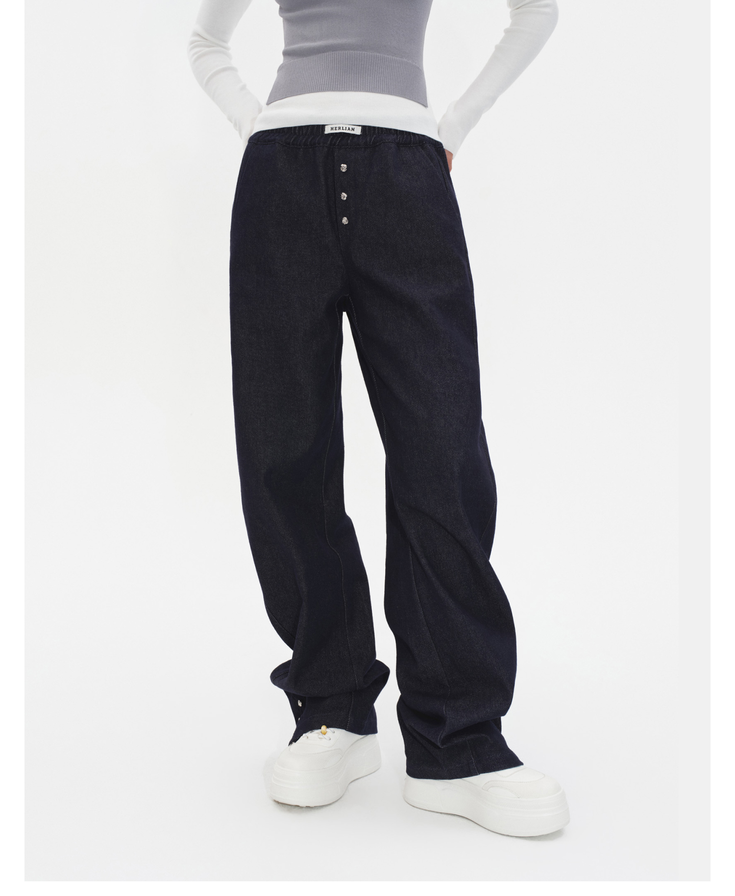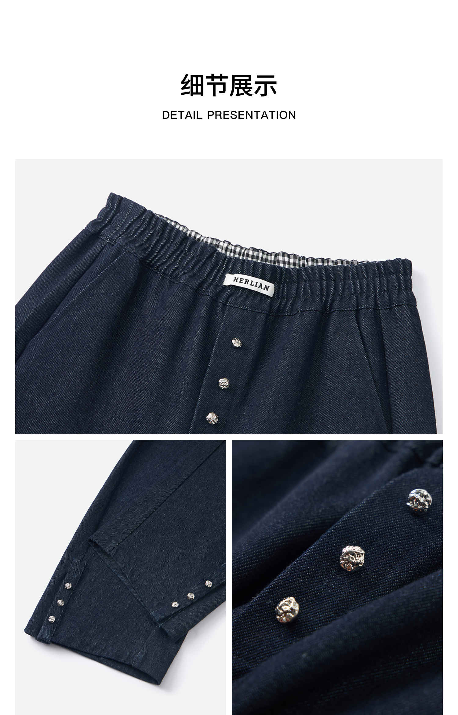 HERLIAN 2025秋季新品女士松紧腰头弯刀牛仔裤