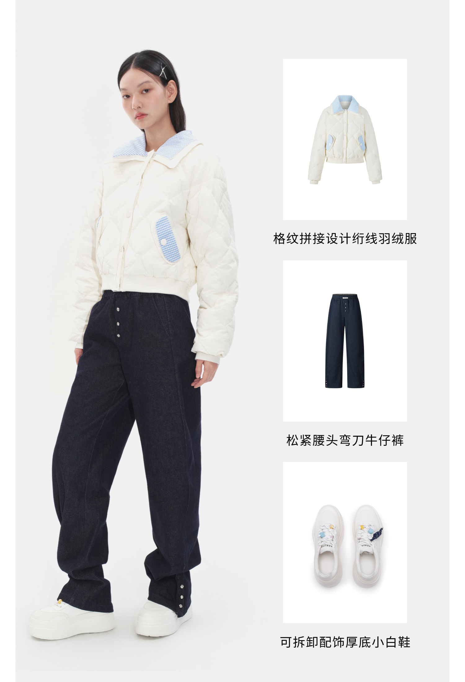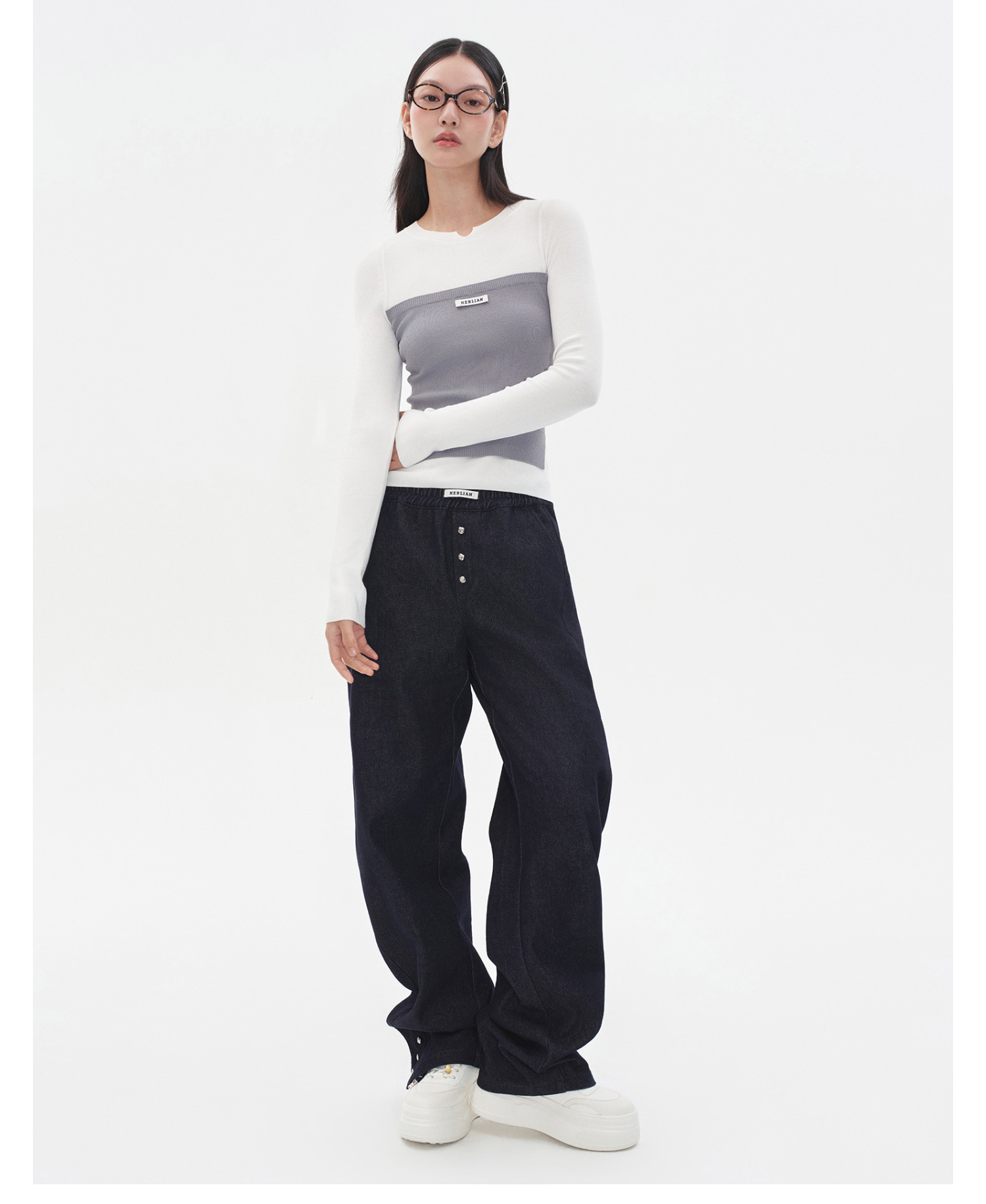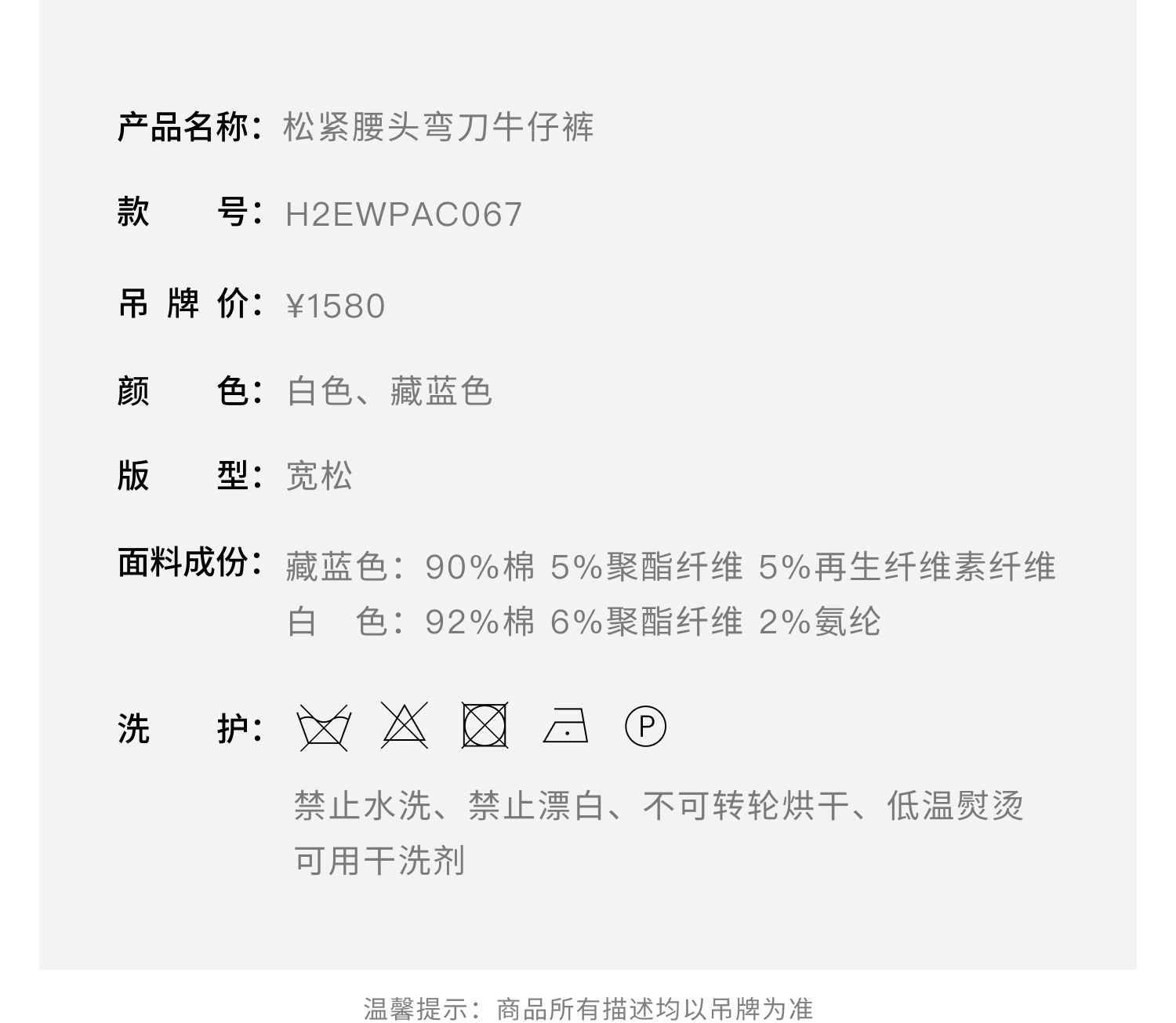 HERLIAN 2025秋季新品女士松紧腰头弯刀牛仔裤