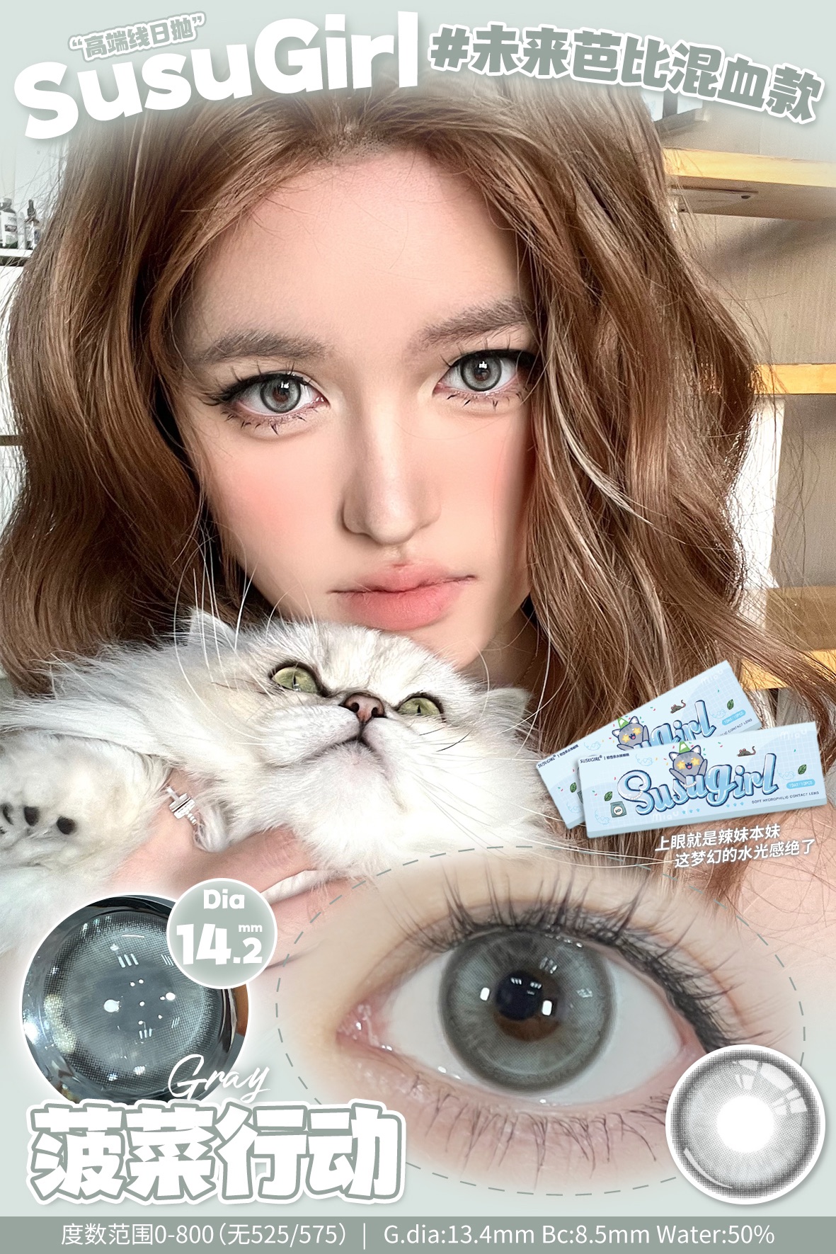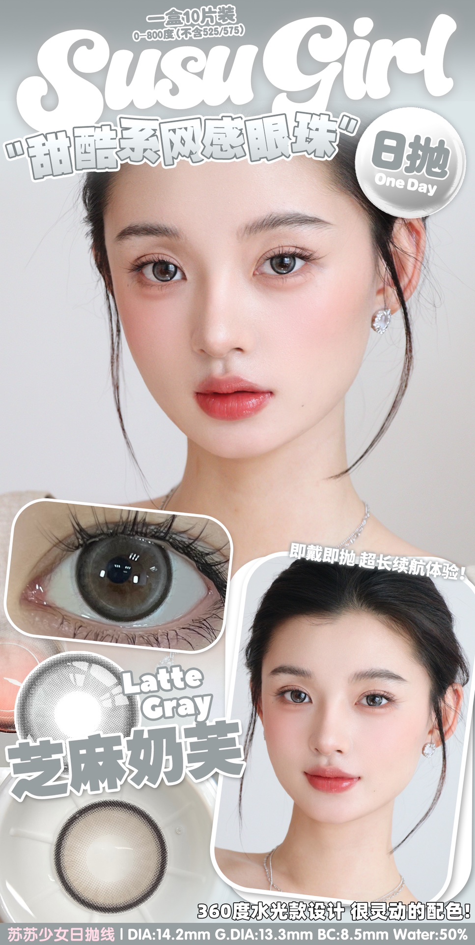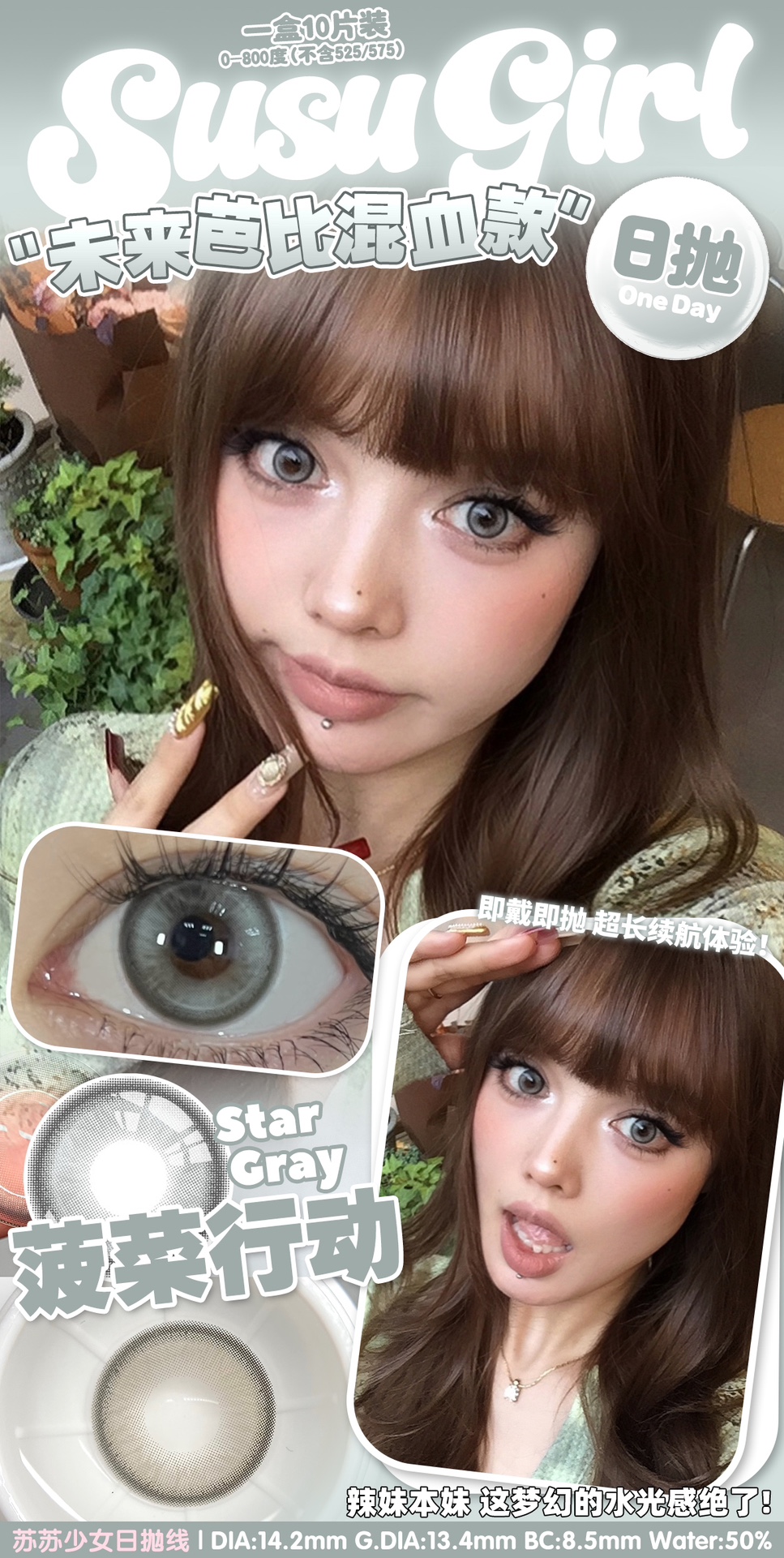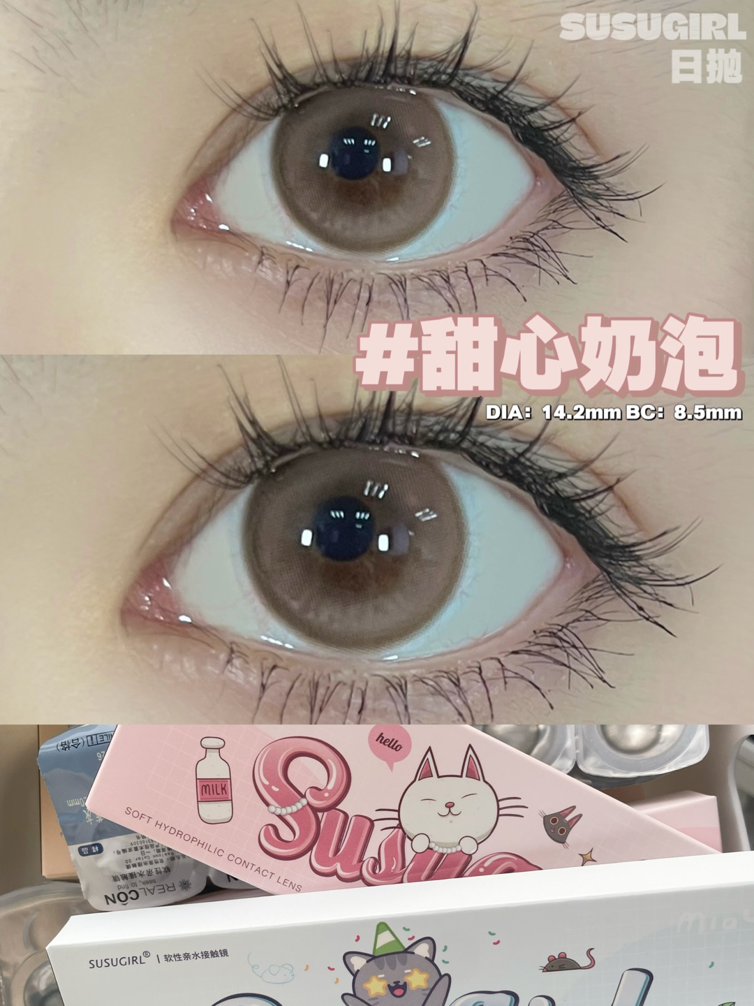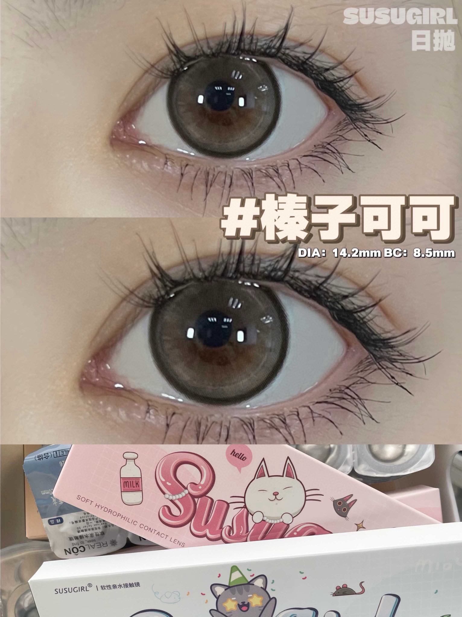 susugirl日抛 芝麻奶芙/榛子可可/甜心奶泡/胆小乌云/暴躁蓝莓/菠菜行动 14.2mm 日抛无售后!!灰棕蓝