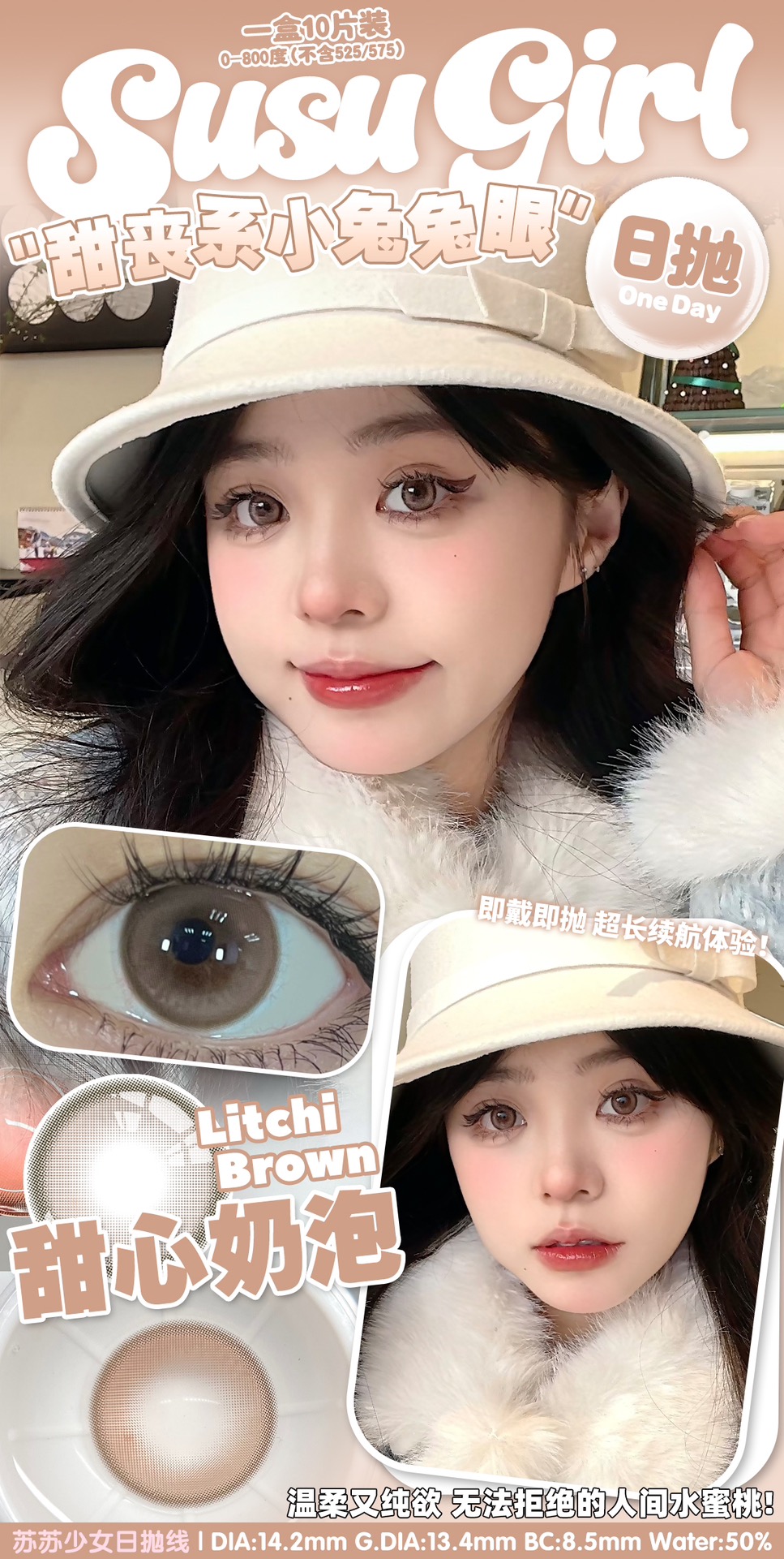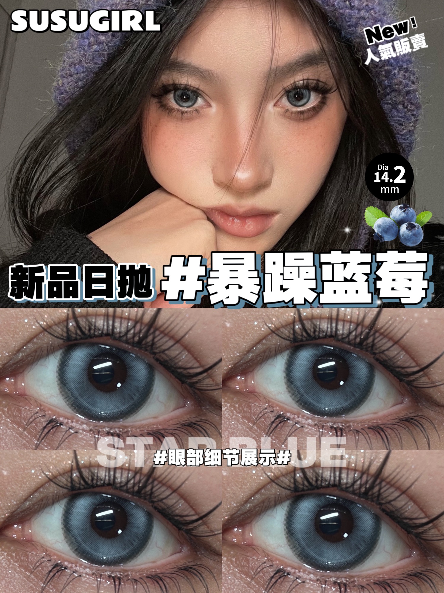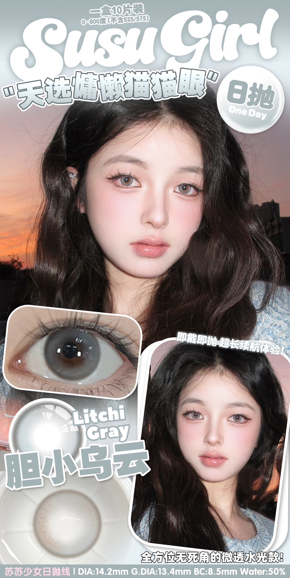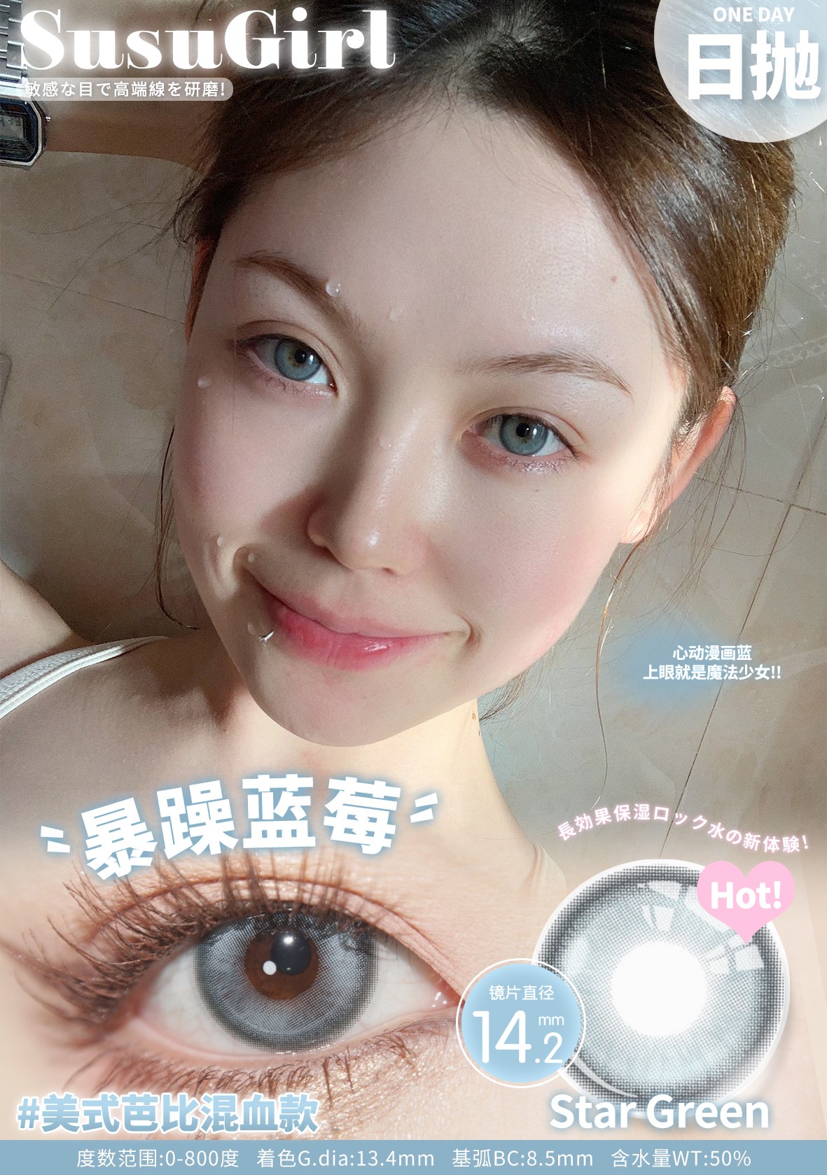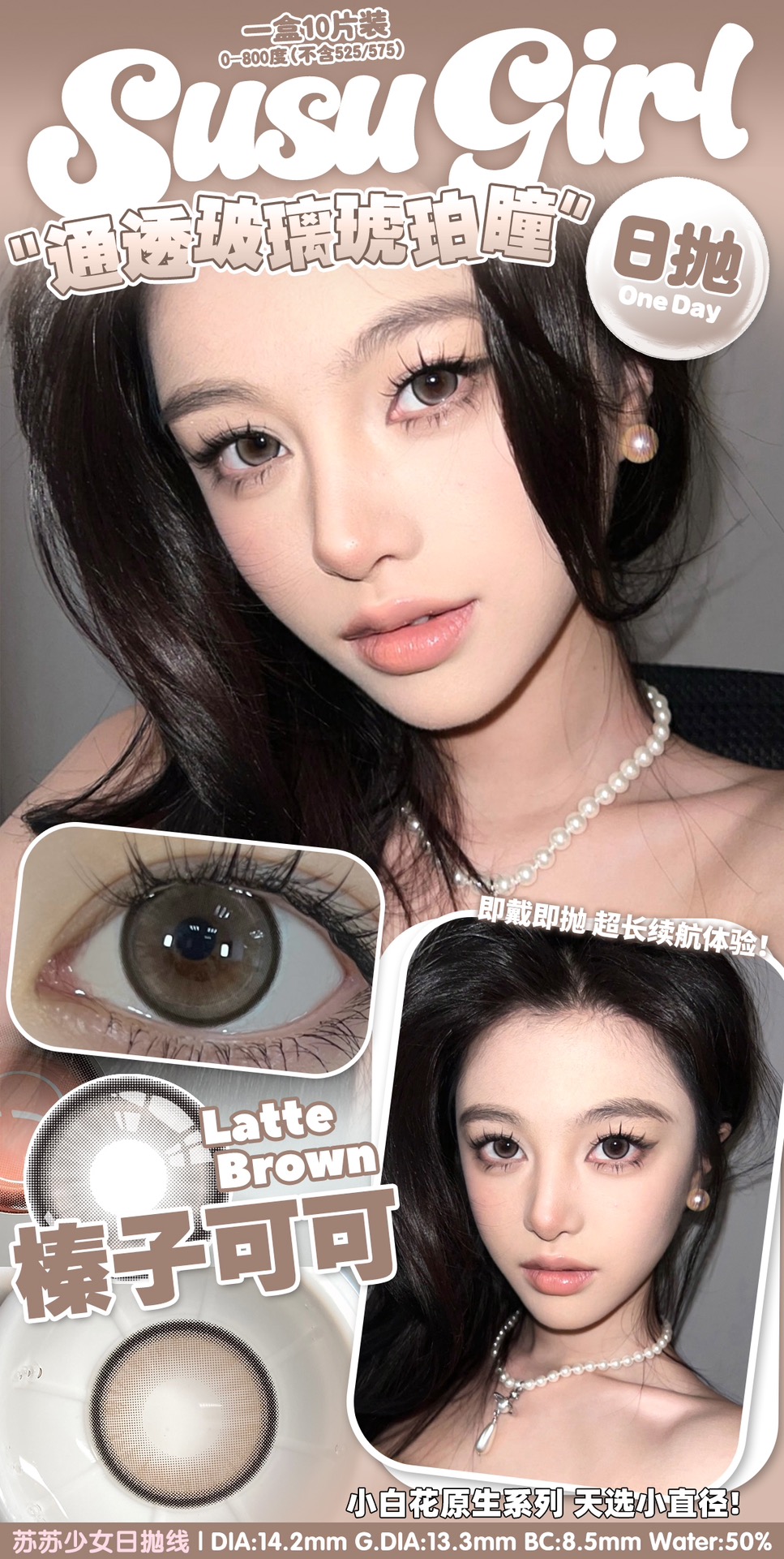 susugirl日抛 芝麻奶芙/榛子可可/甜心奶泡/胆小乌云/暴躁蓝莓/菠菜行动 14.2mm 日抛无售后!!灰棕蓝