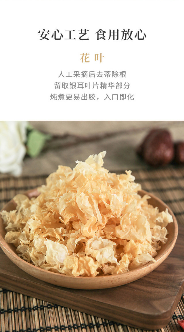 有机银耳白木耳雪耳花叶85g/瓶(中国有机认证)