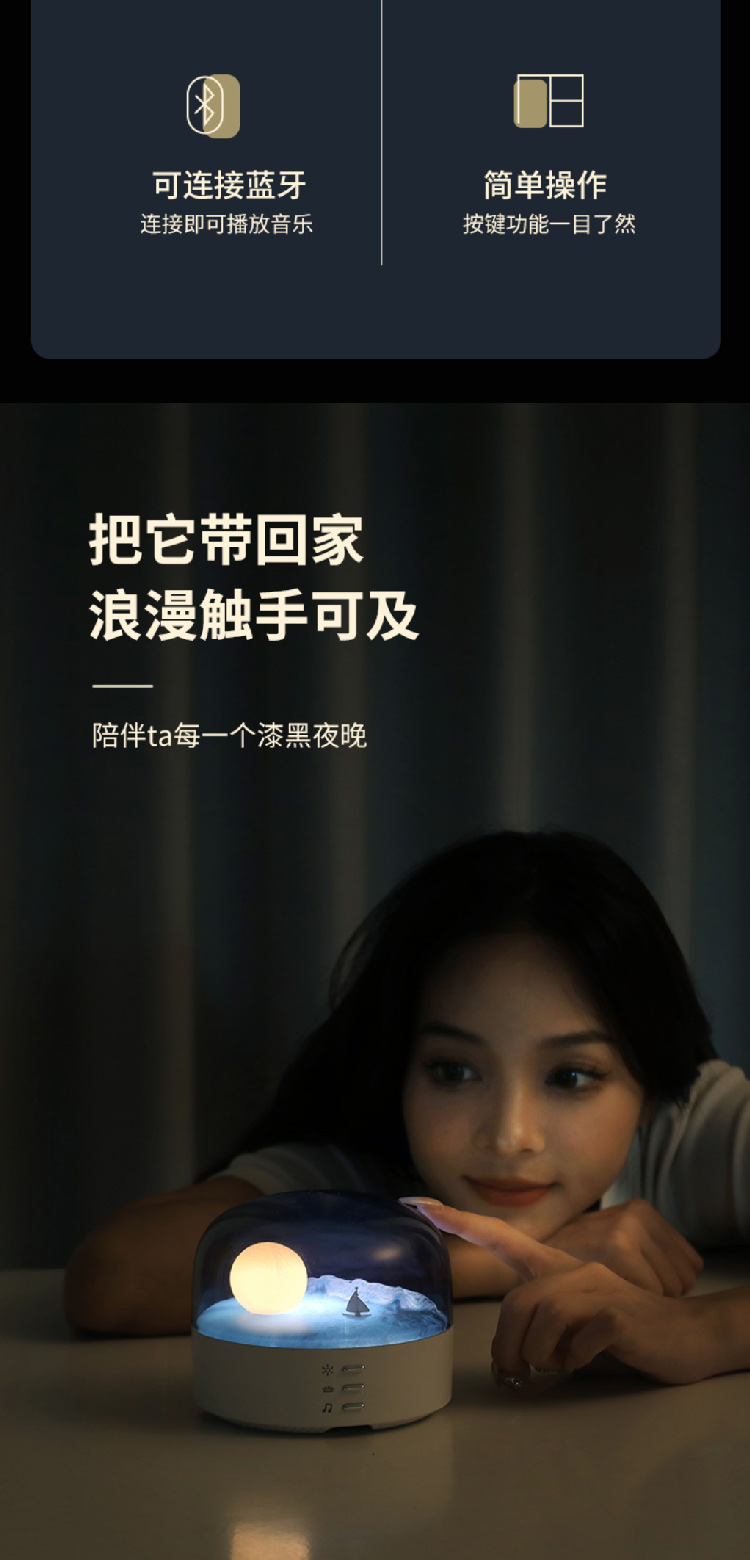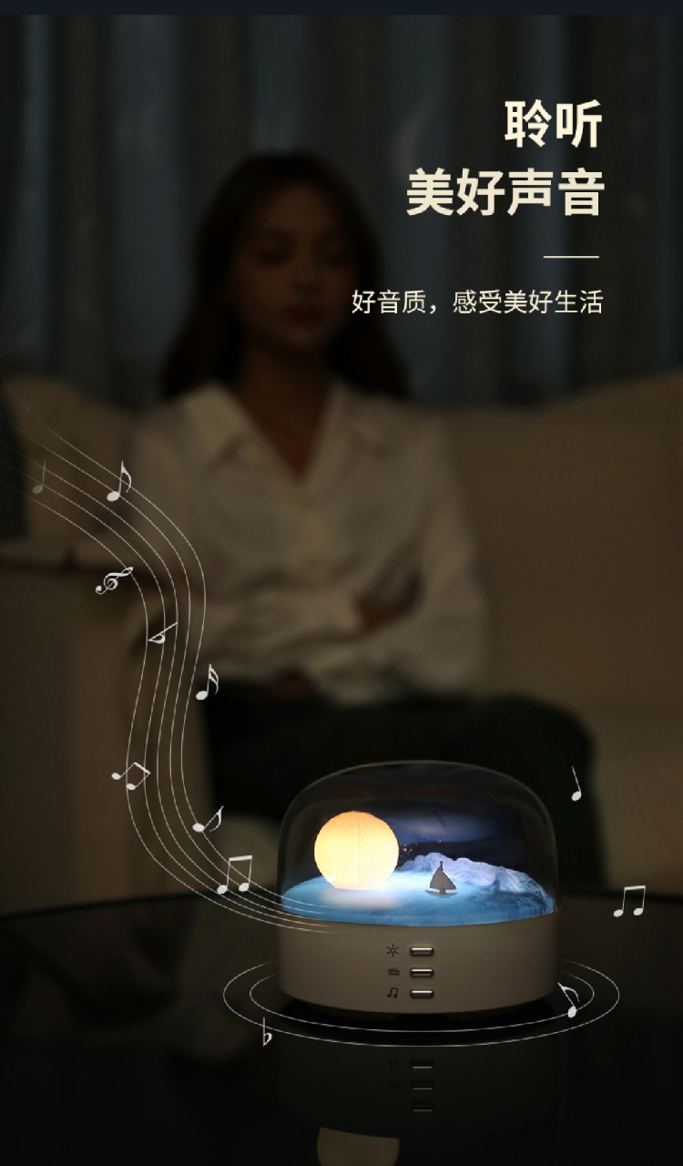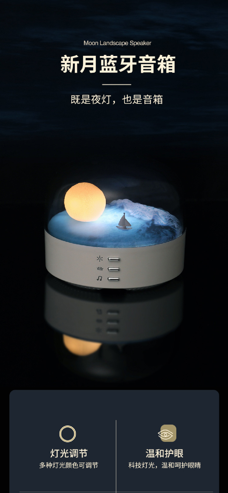 创意新款新月蓝牙音箱氛围小夜灯书房卧室氛围灯具
