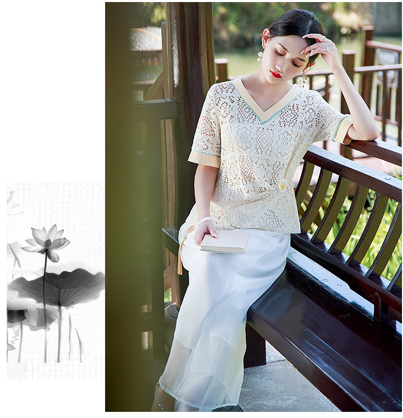 气质显瘦,V领蕾丝双层复古改良版民国风唐装旗袍GSJ-137