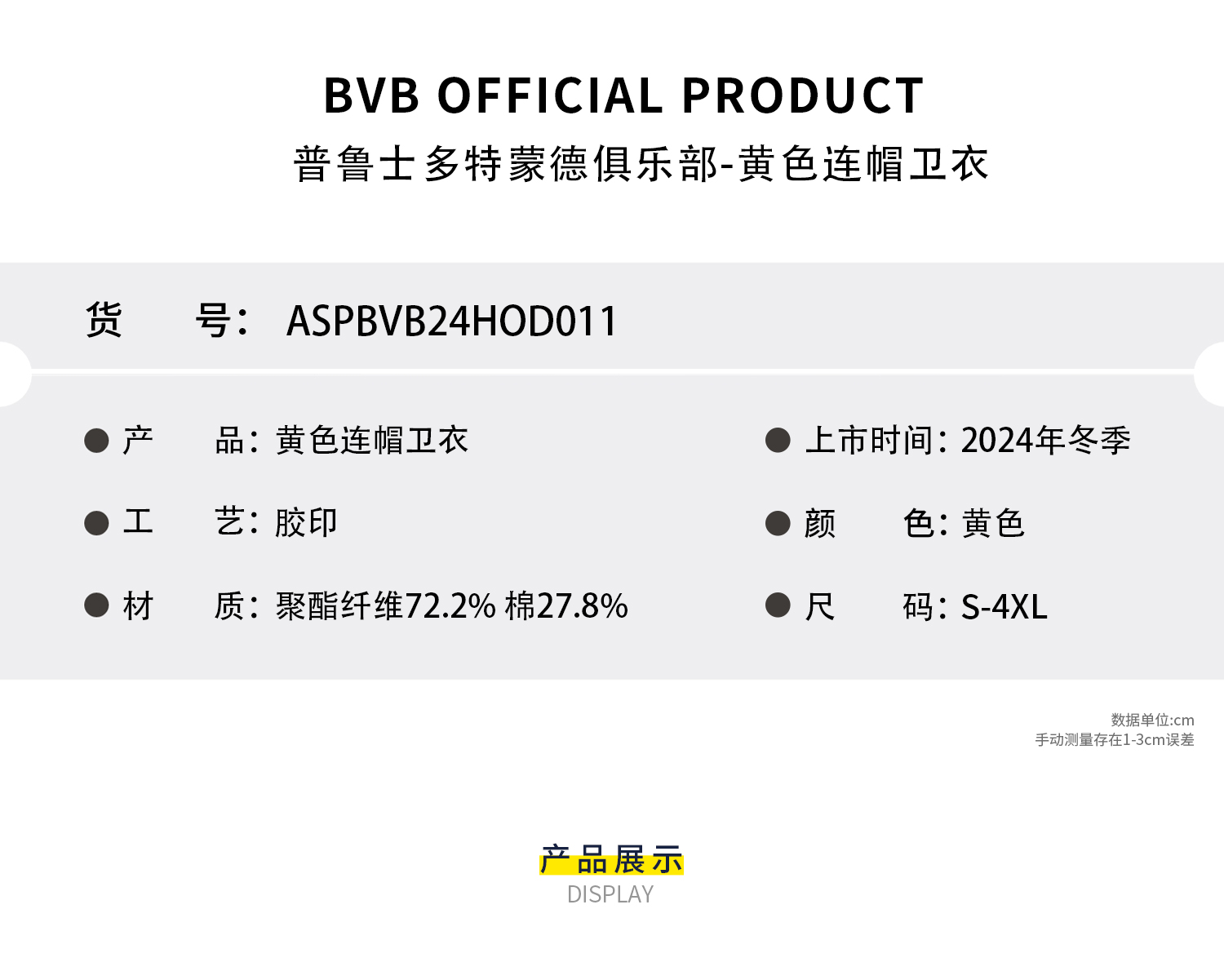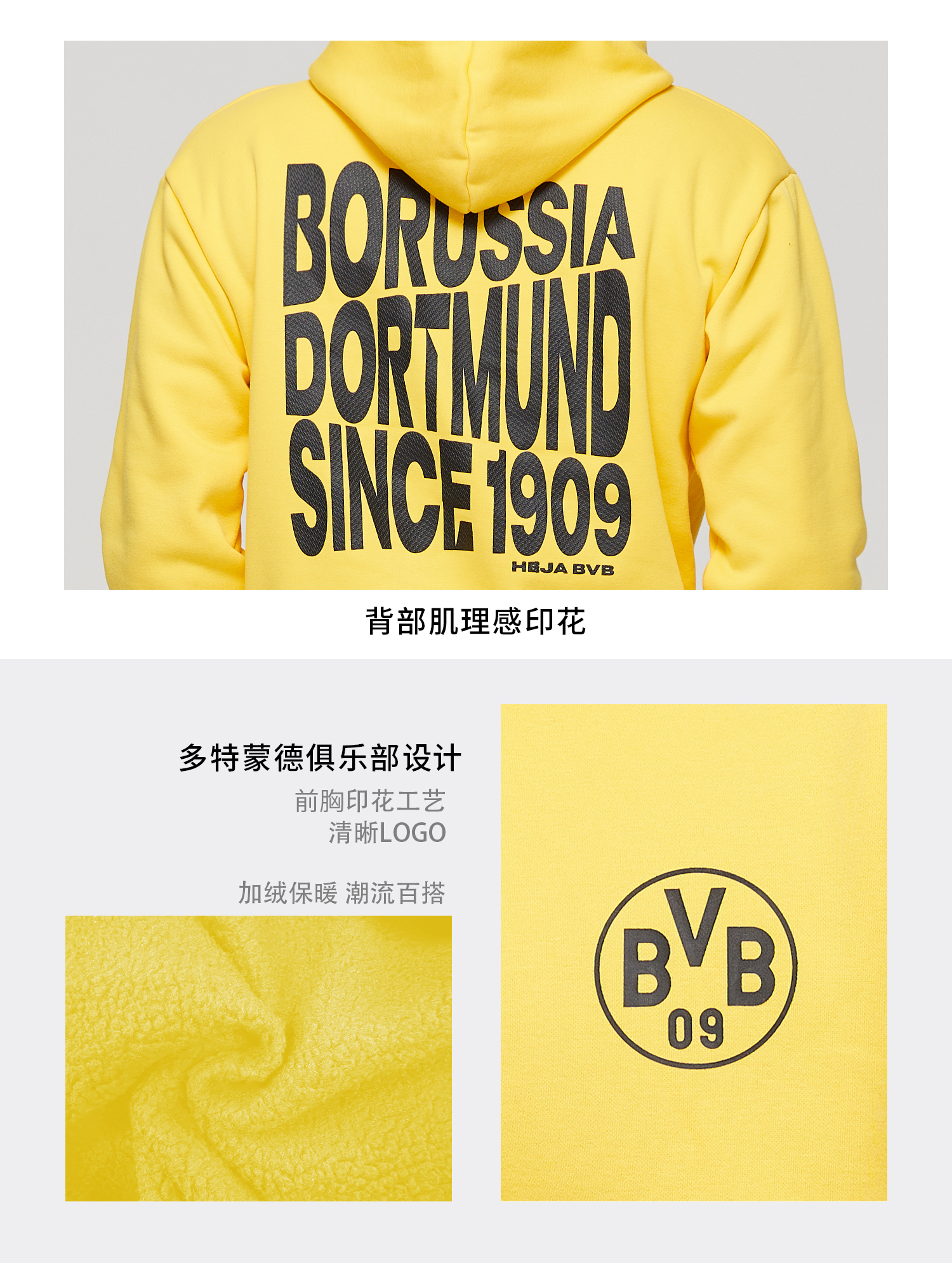 【官方正版】多特蒙德足球俱乐部|BVB黄色口号连帽卫衣秋冬保暖加厚男士