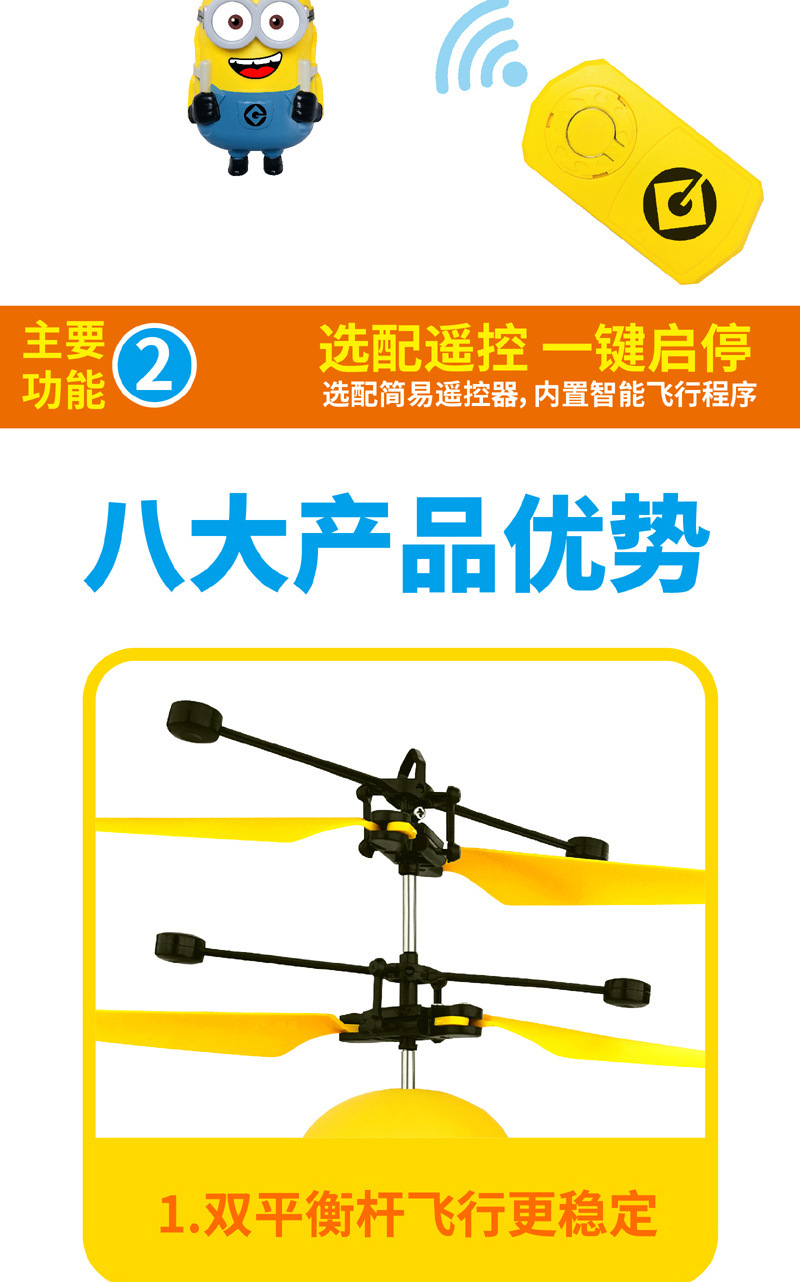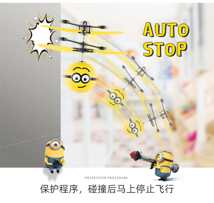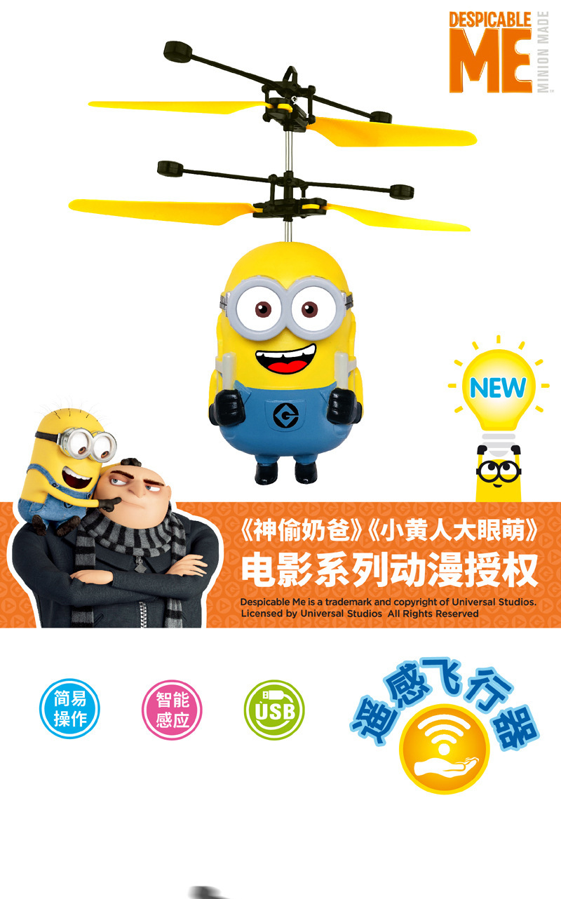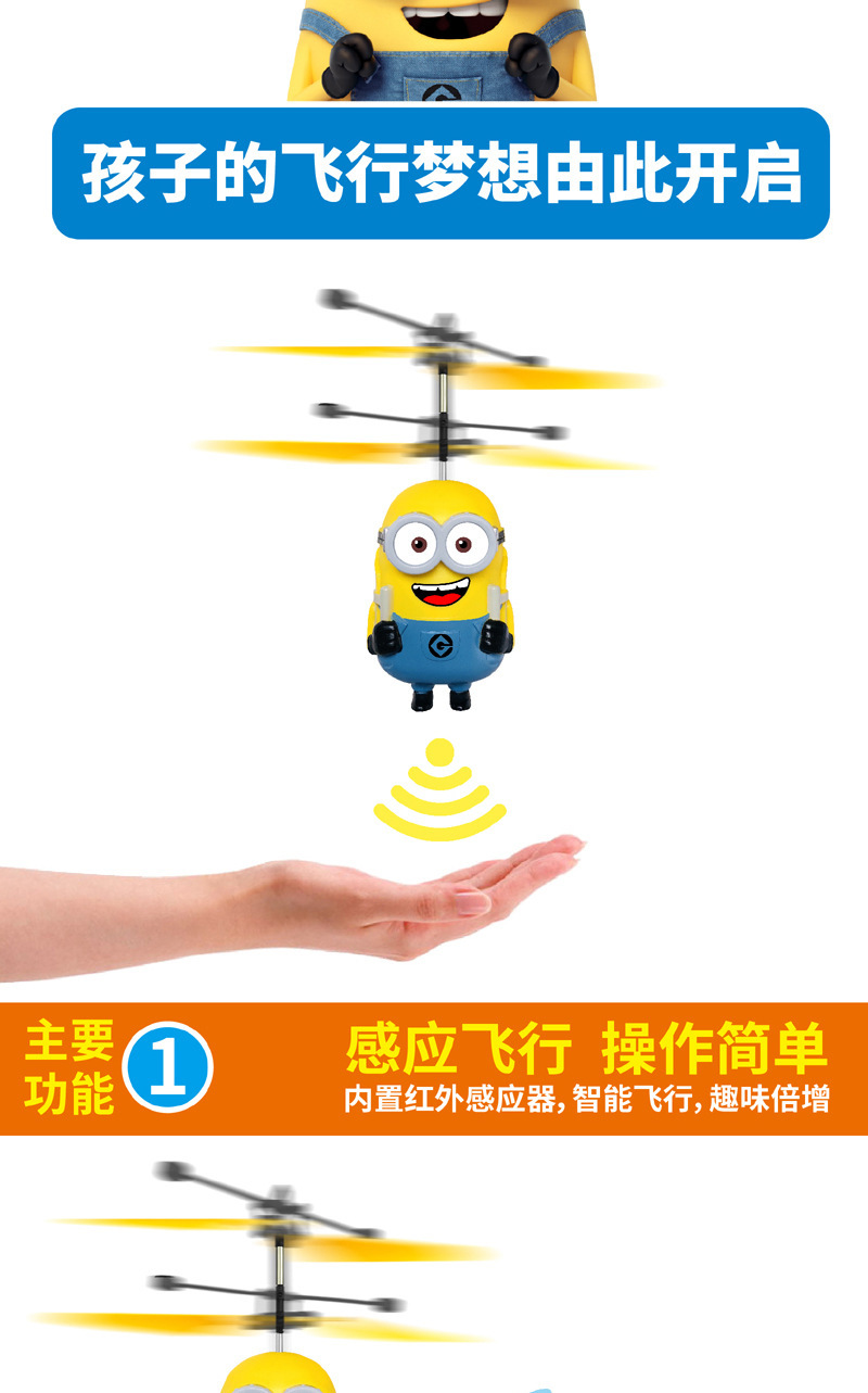 【感应飞行 操作简单】神偷奶爸 小黄人大眼萌感应悬浮飞机 儿童玩具感应飞行器