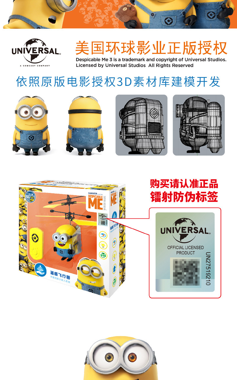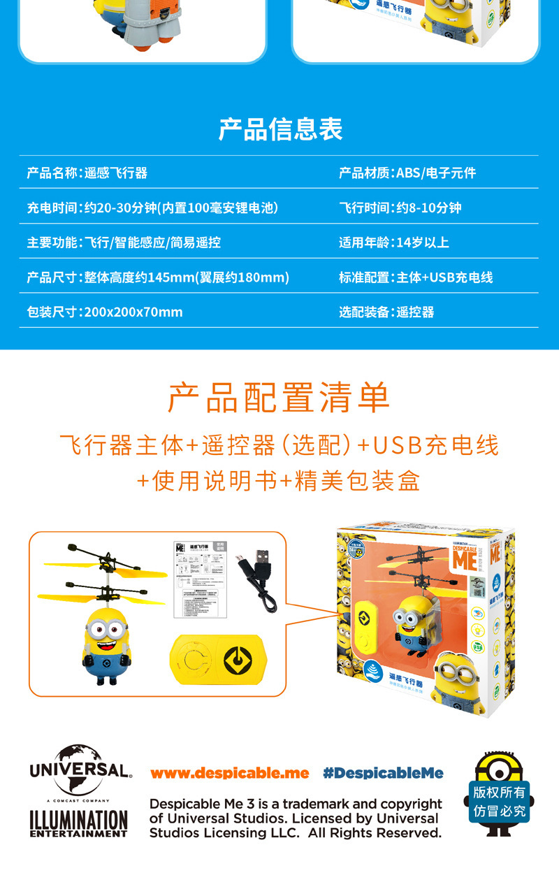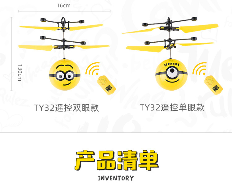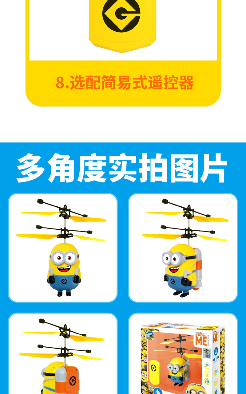 【感应飞行 操作简单】神偷奶爸 小黄人大眼萌感应悬浮飞机 儿童玩具感应飞行器