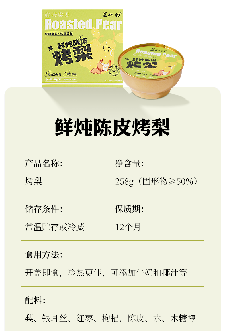 鲜炖陈皮烤梨 258克/碗*6碗【散装】