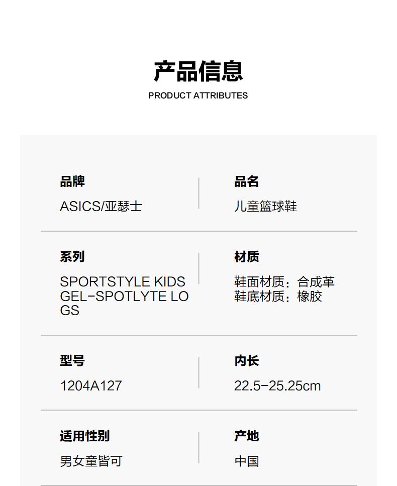 Asics/亚瑟士童鞋新品复古休闲板鞋低帮虎爪纹SPOTLYTE系列