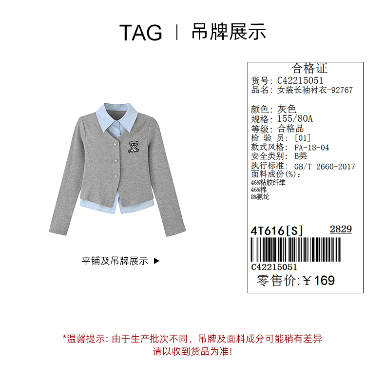 假两件拼接衬衫-92767C4221505