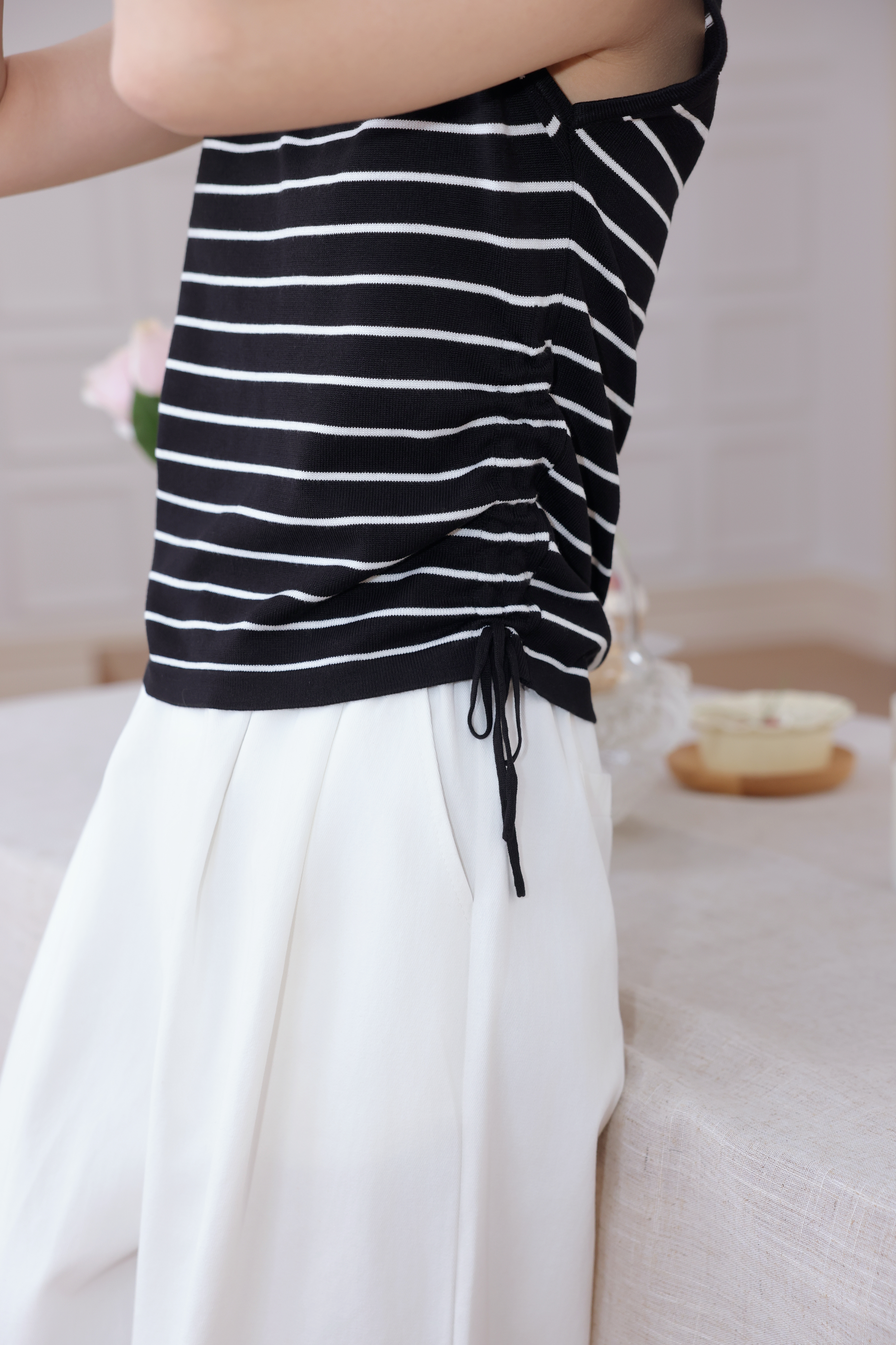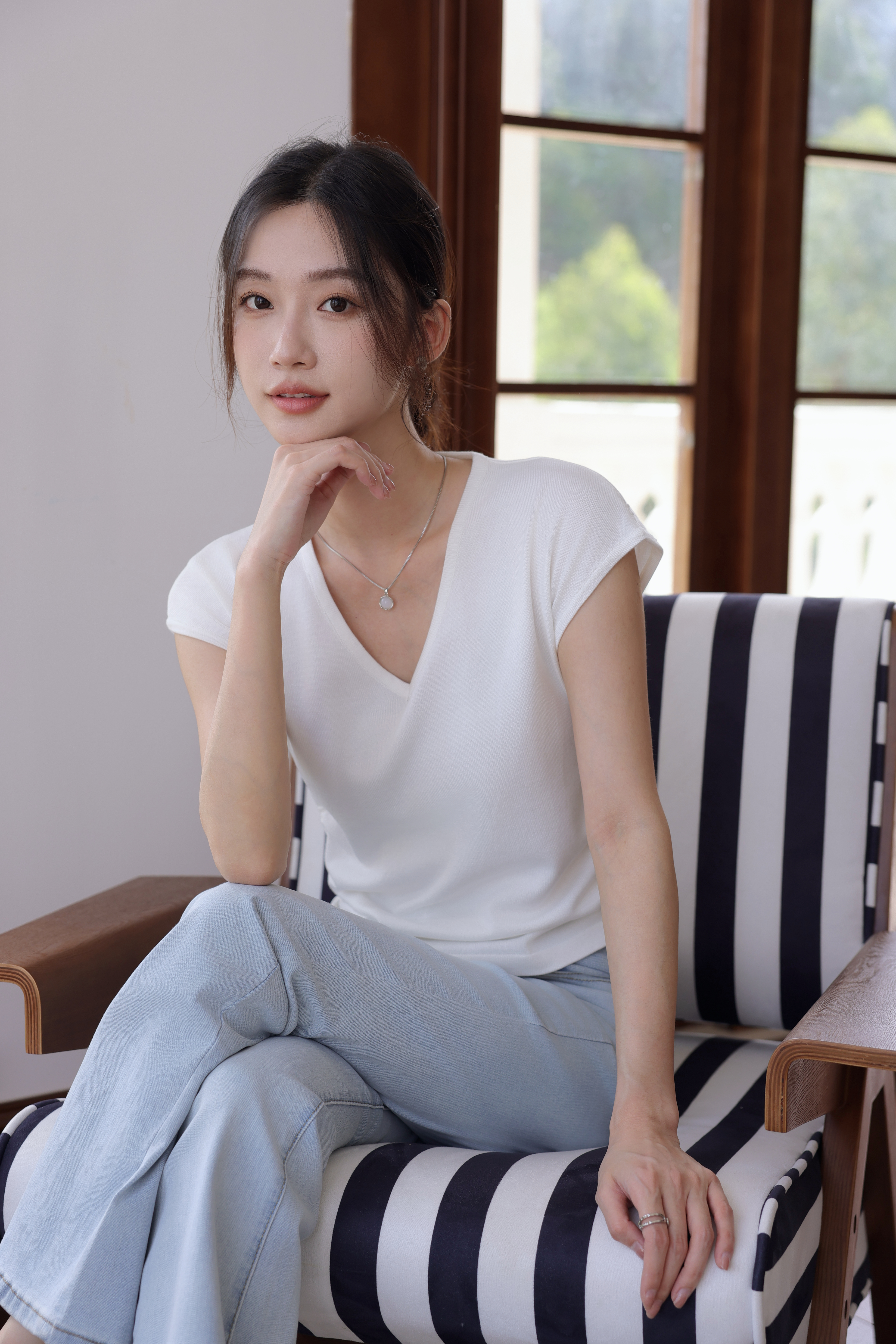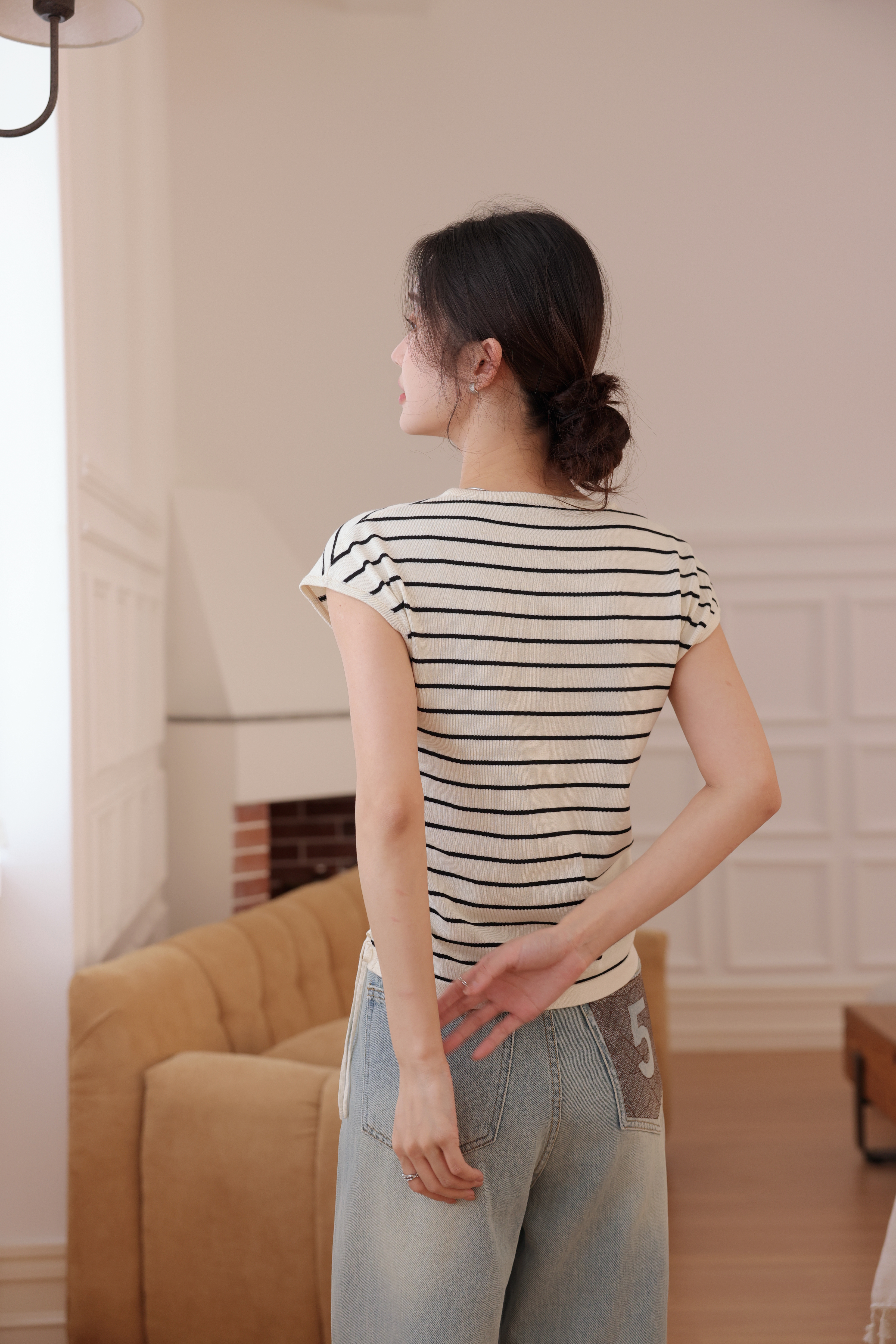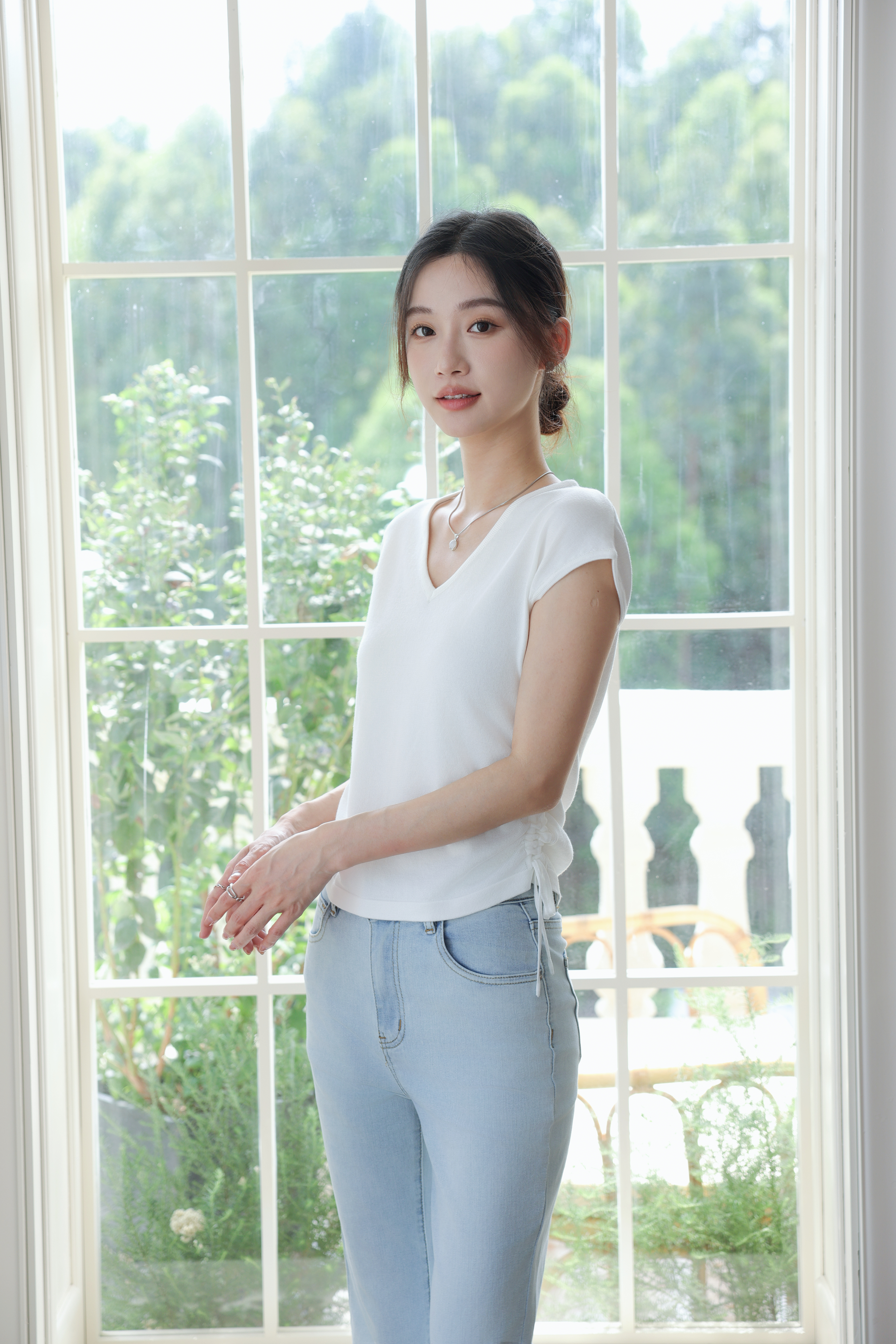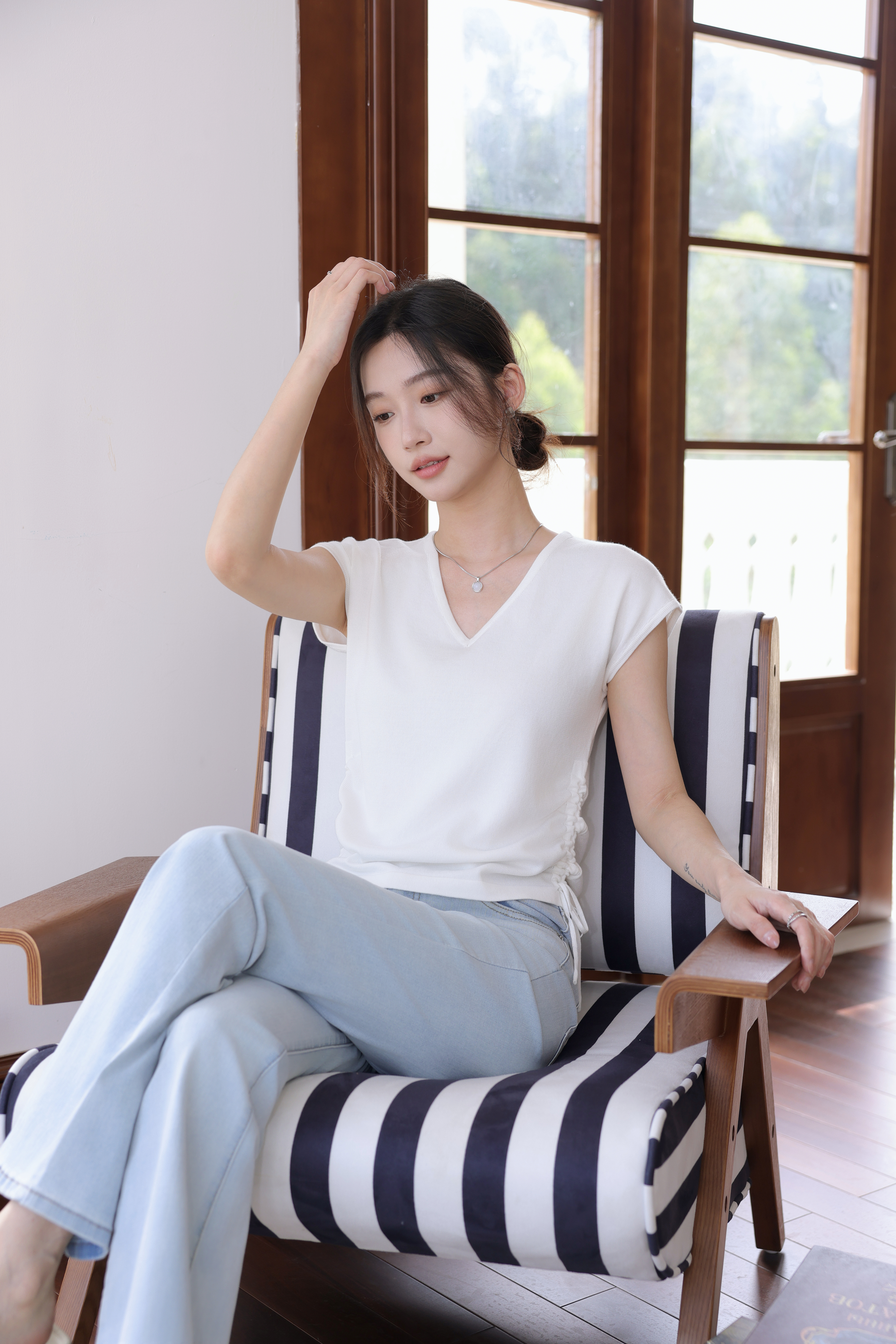 【L MVIG赫本冰丝T恤】2024夏季流行百搭款❗V领抽绳,遮肚子拉长腰线~~穿出天鹅颈!凉感冰丝面料🍃🍃这个夏天再也不热了!!!